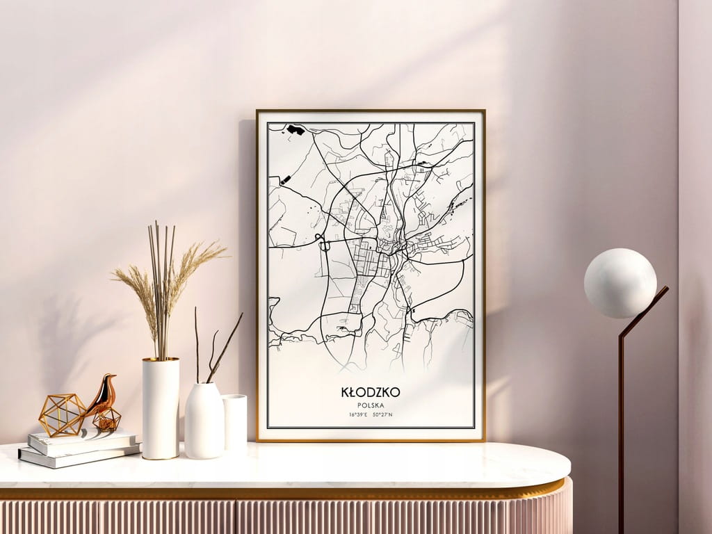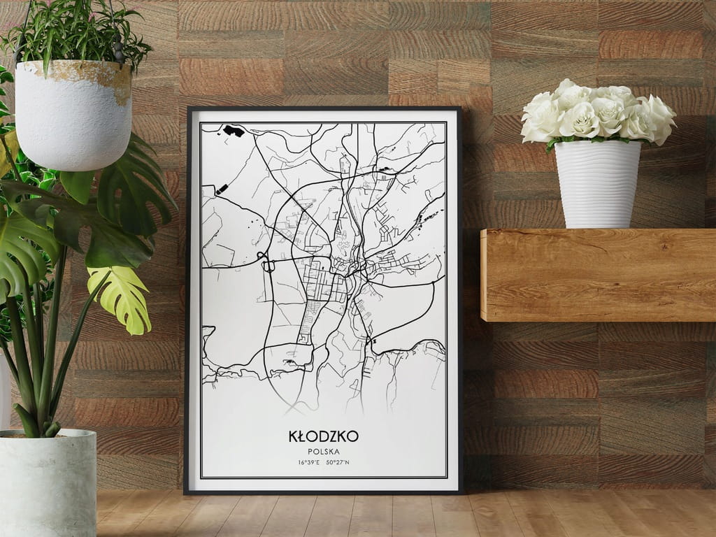Czarno-biały plakat mapa. Nasze plakaty drukujemy na profesjonalnym papierze firmy Tecco o grubości 230g. Plakat NIE zawiera ramy.