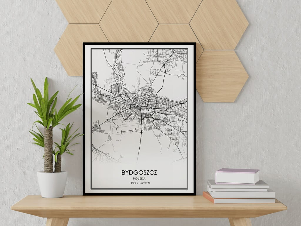 Mapa czarno biała plakat Bydgoszcz
