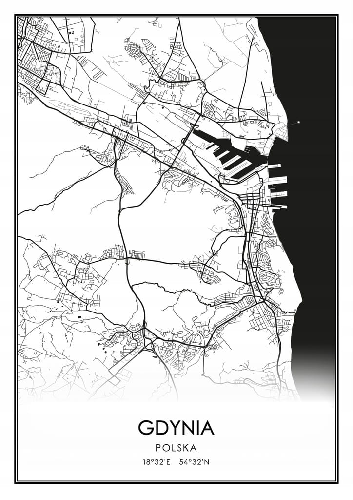 Na tej aukcji kupują Państwo czarno biały plakat z mapą miasta.