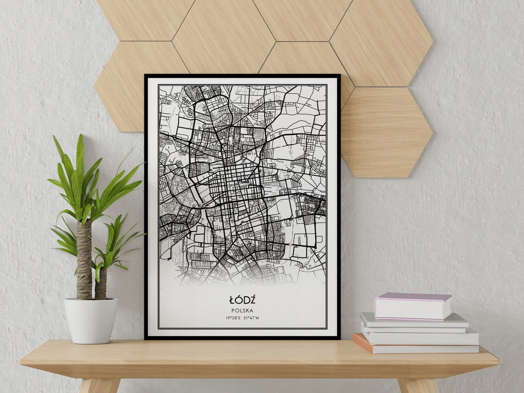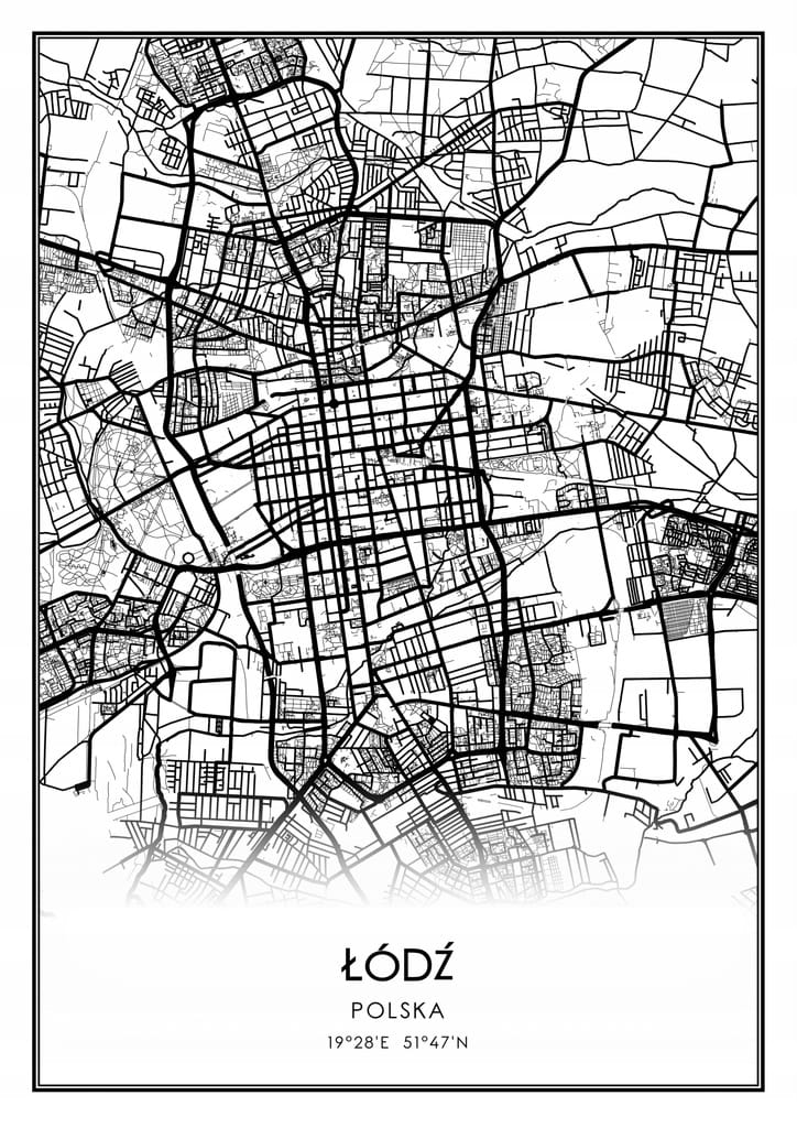 Na tej aukcji kupują Państwo czarno biały plakat z mapą miasta.