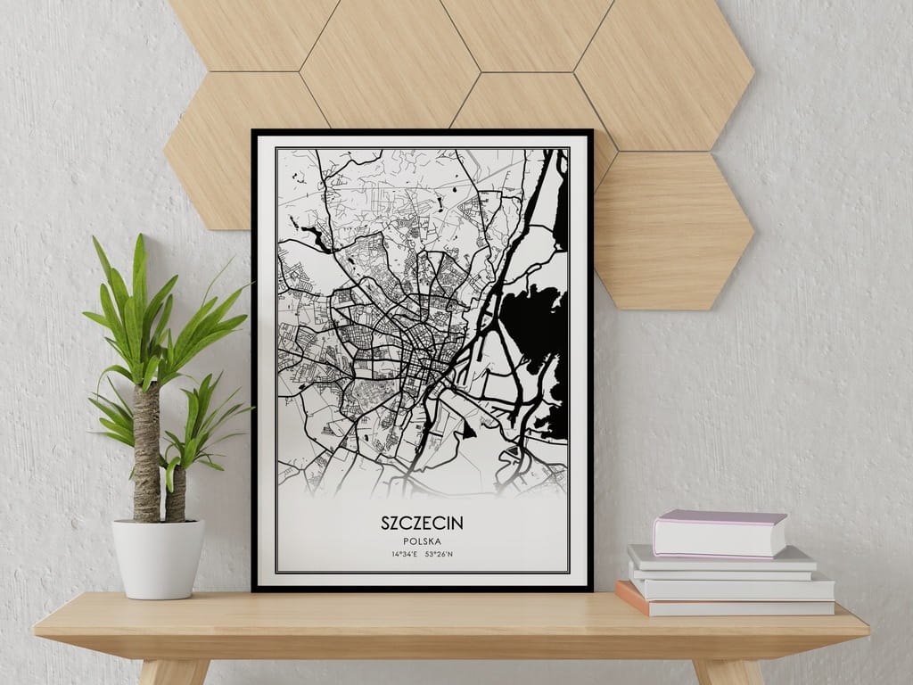Mapa czarno biała plakat Szczecin