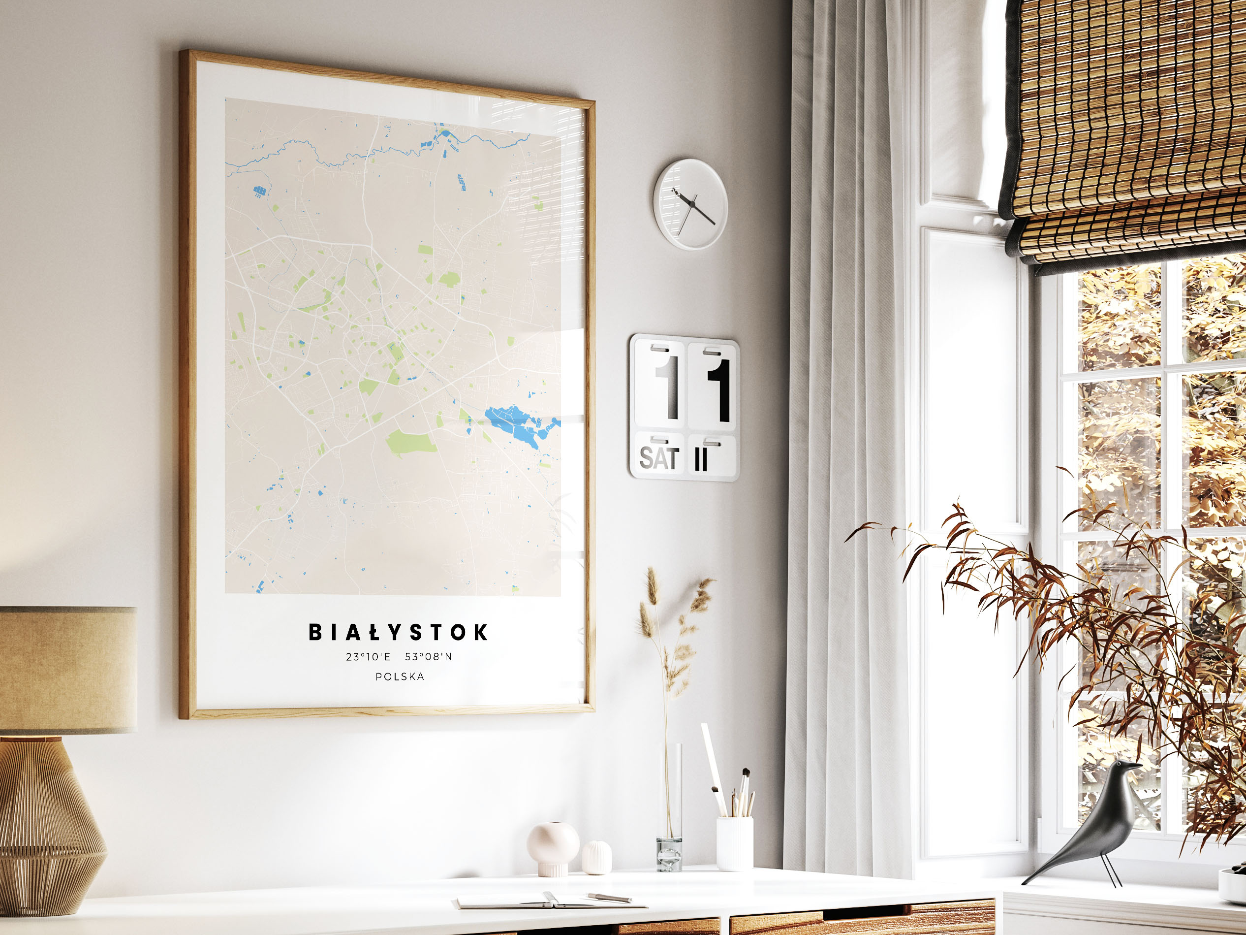 Minimalistyczny Plakat Mapa Białystok – Nowoczesna Mapa w Skandynawskim Stylu