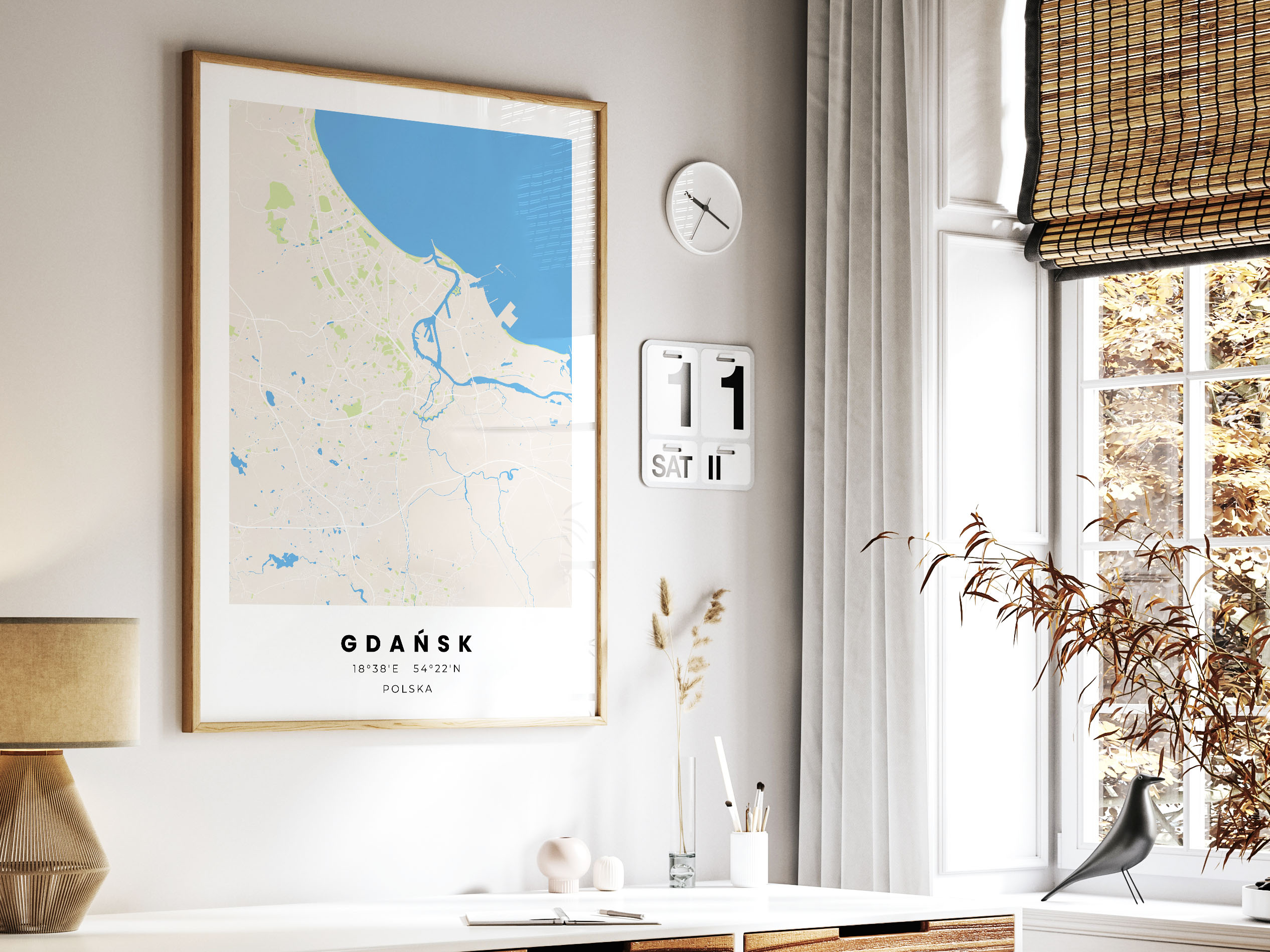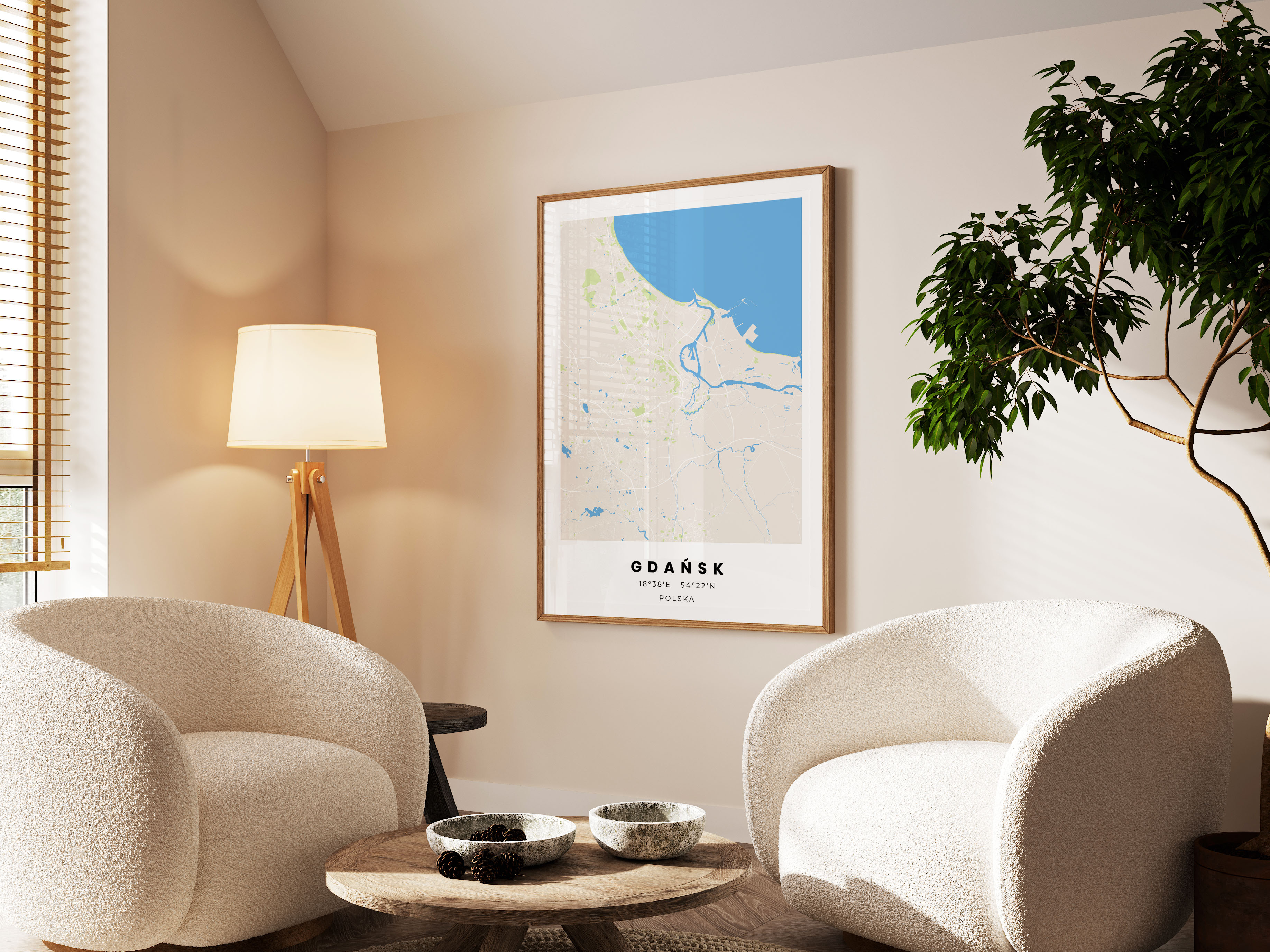 Minimalistyczny Plakat Mapa Gdańsk – Nowoczesna Mapa w Skandynawskim Stylu