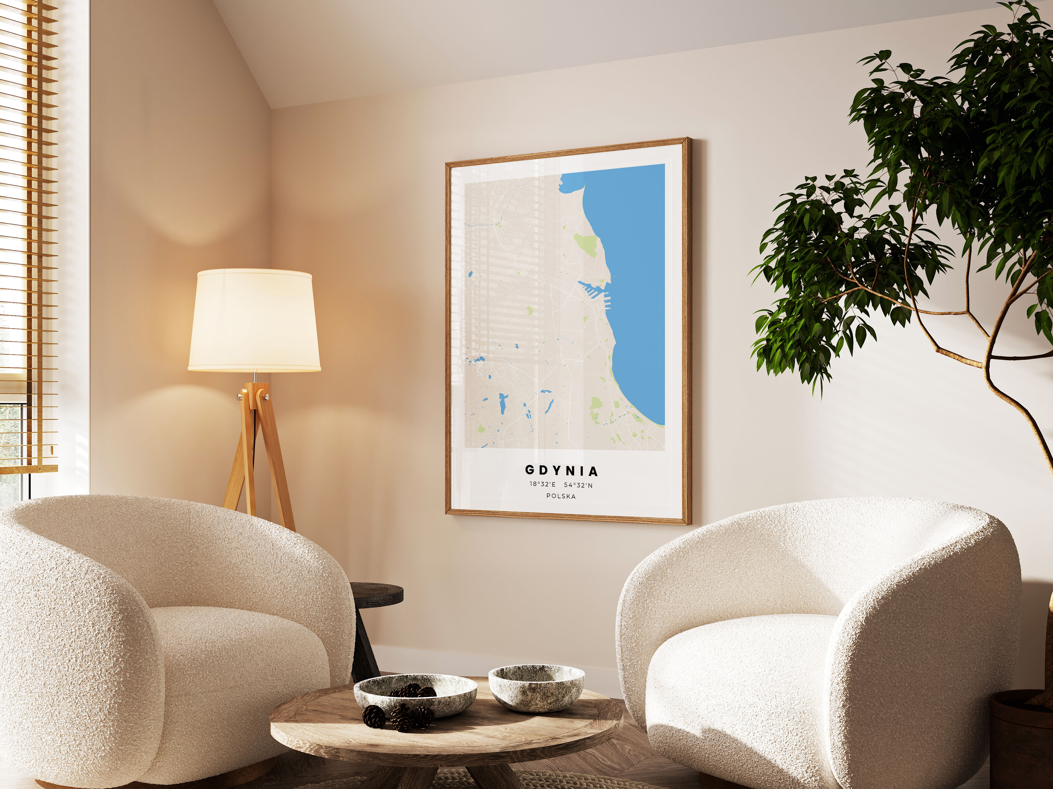 Minimalistyczny Plakat Mapa Gdynia – Nowoczesna Mapa w Skandynawskim Stylu