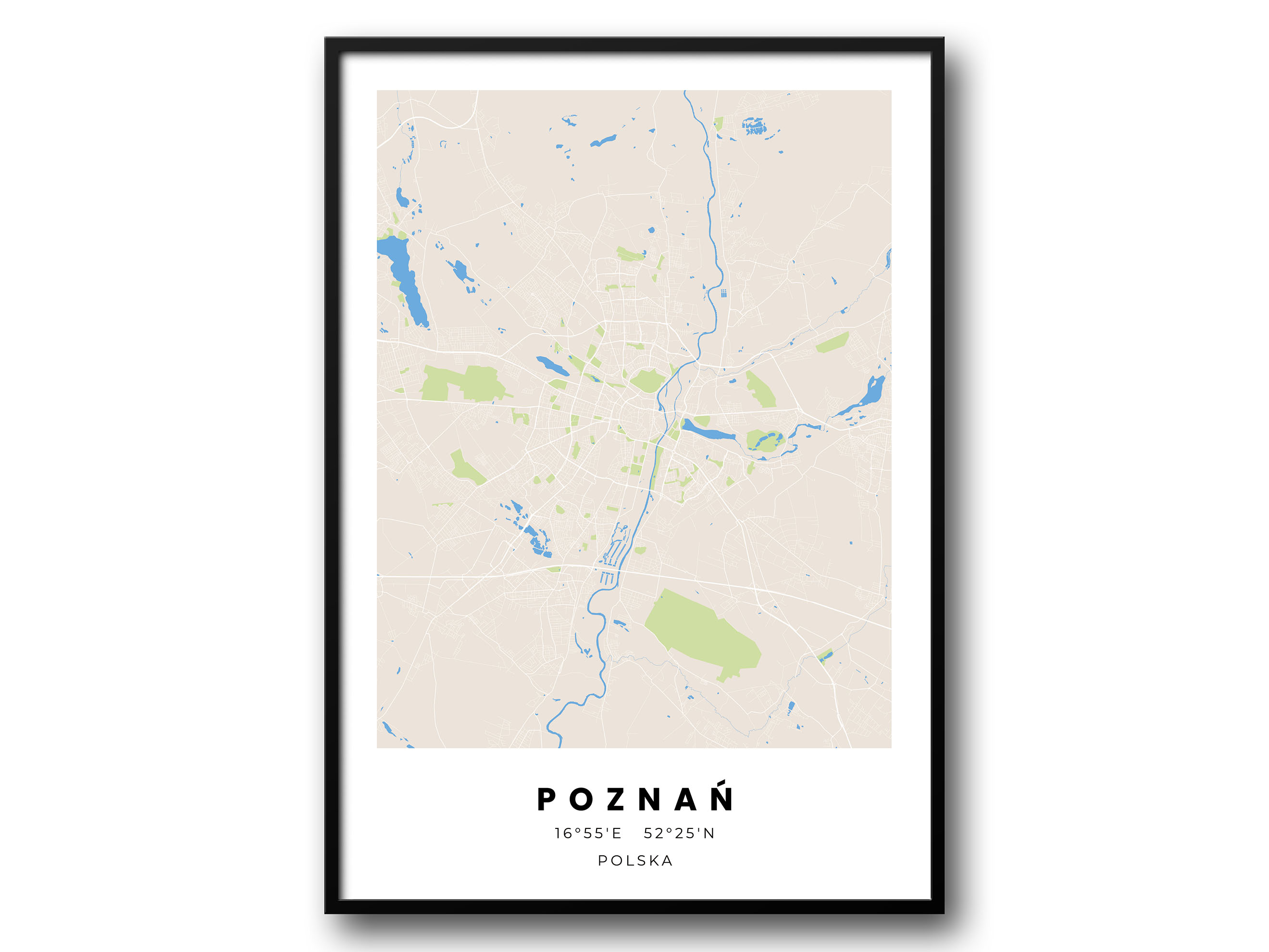 Minimalistyczny Plakat Mapa Poznań – Nowoczesna Mapa w Skandynawskim Stylu