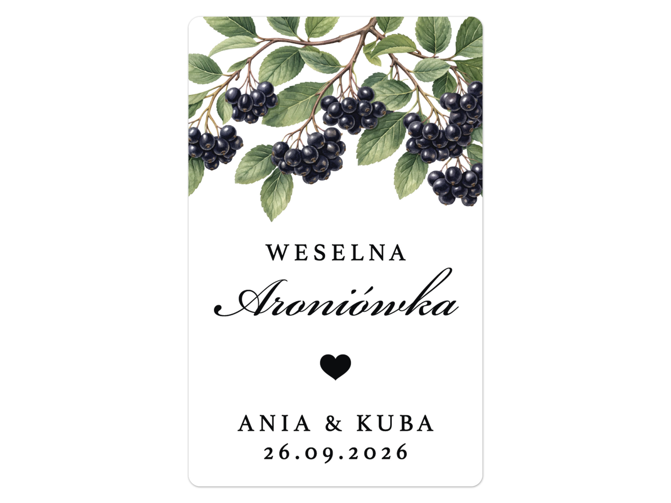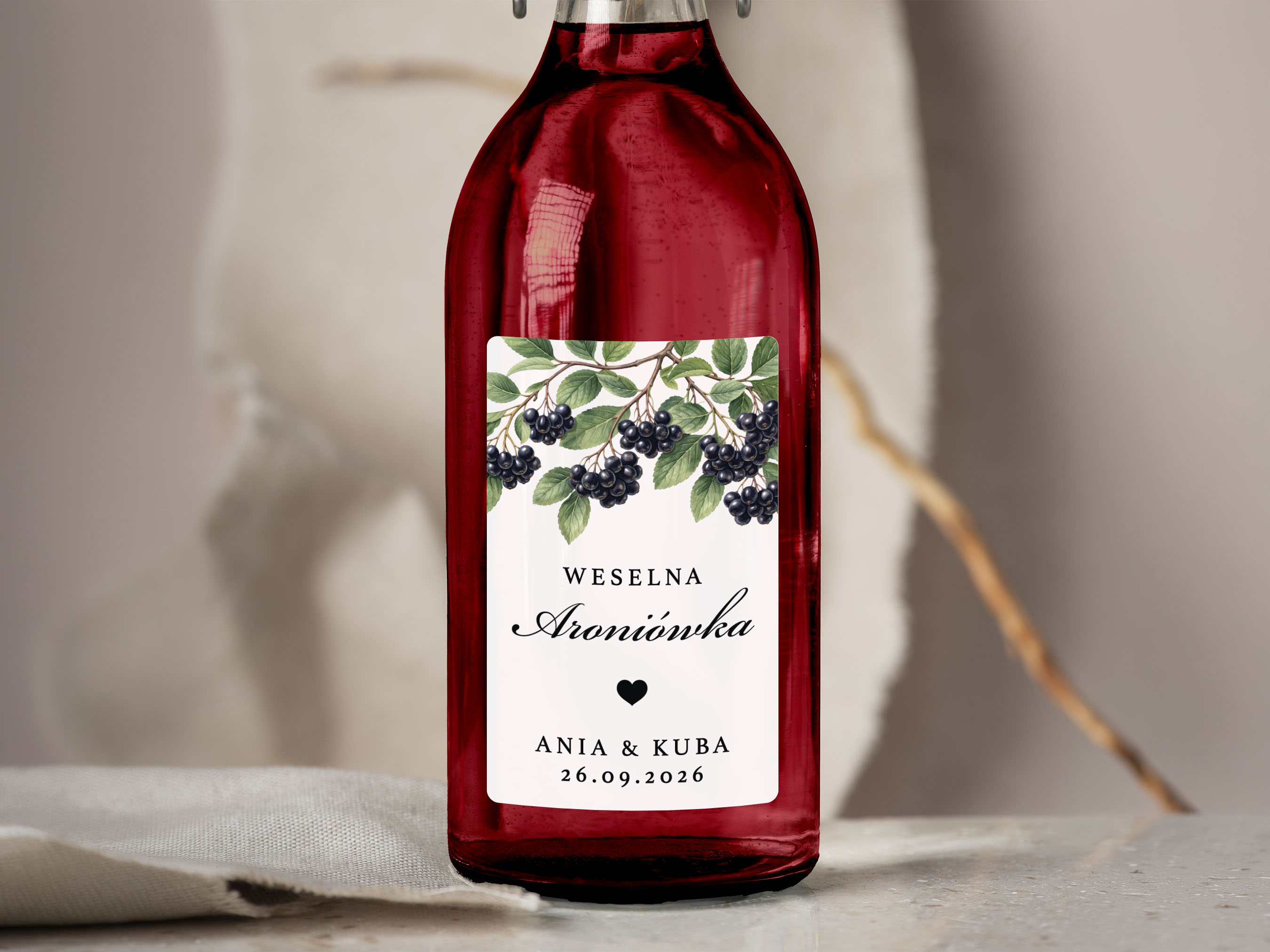 Naklejki na Aroniówkę, prostokątne etykiety Aroniówka weselna, personalizowane