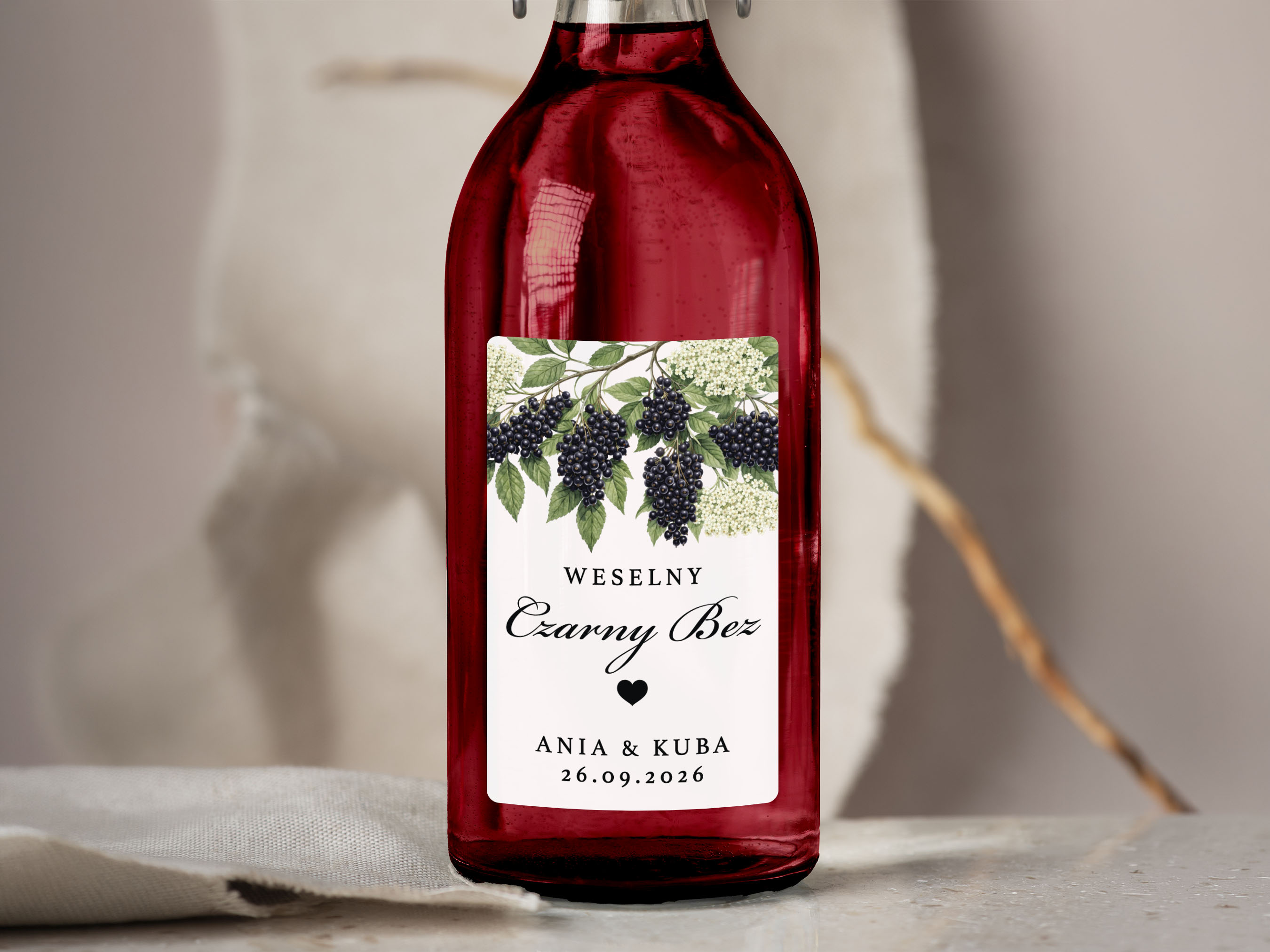 Naklejki na Czarny Bez, prostokątne etykiety Czarny Bez weselny, personalizowane