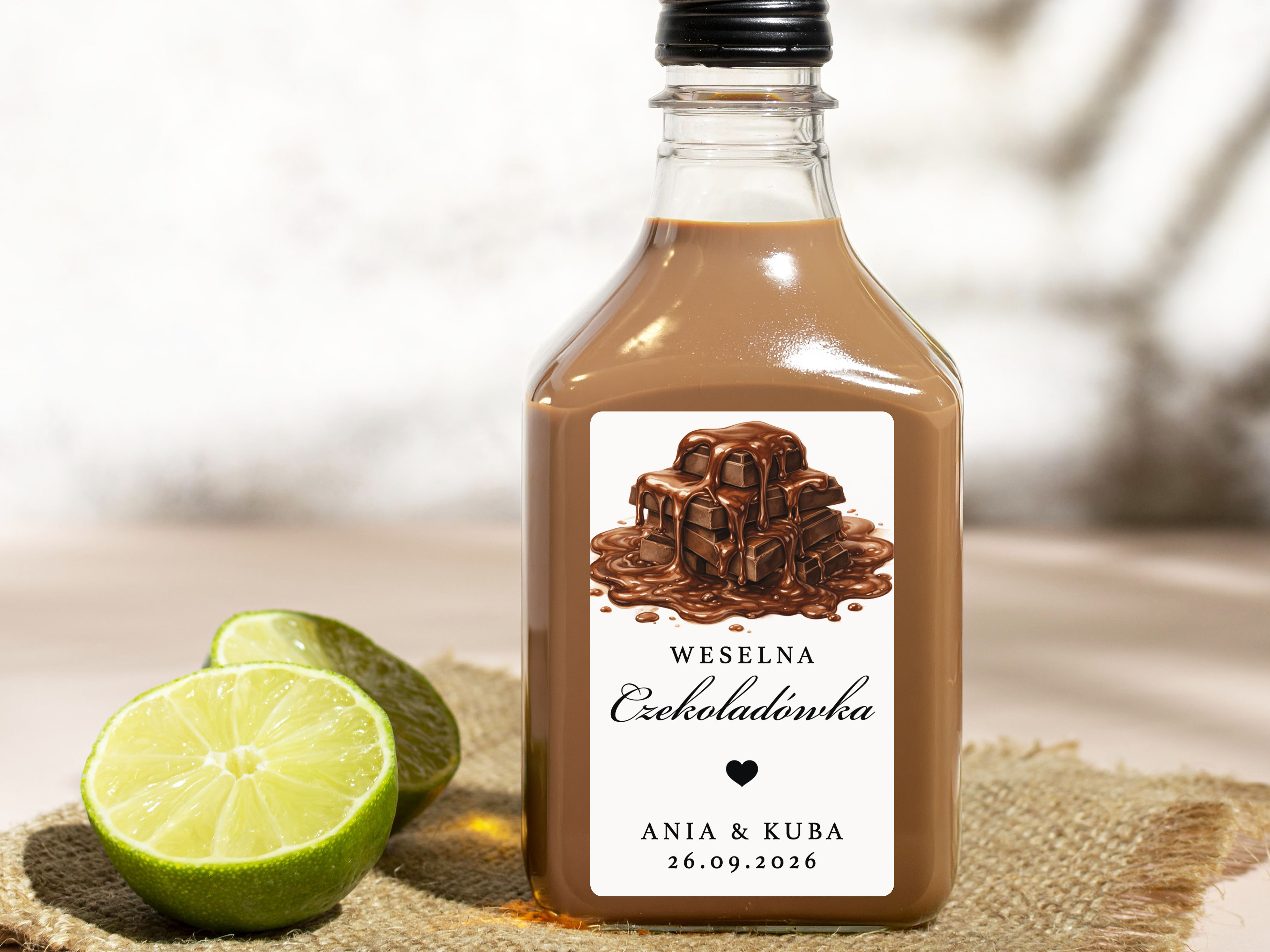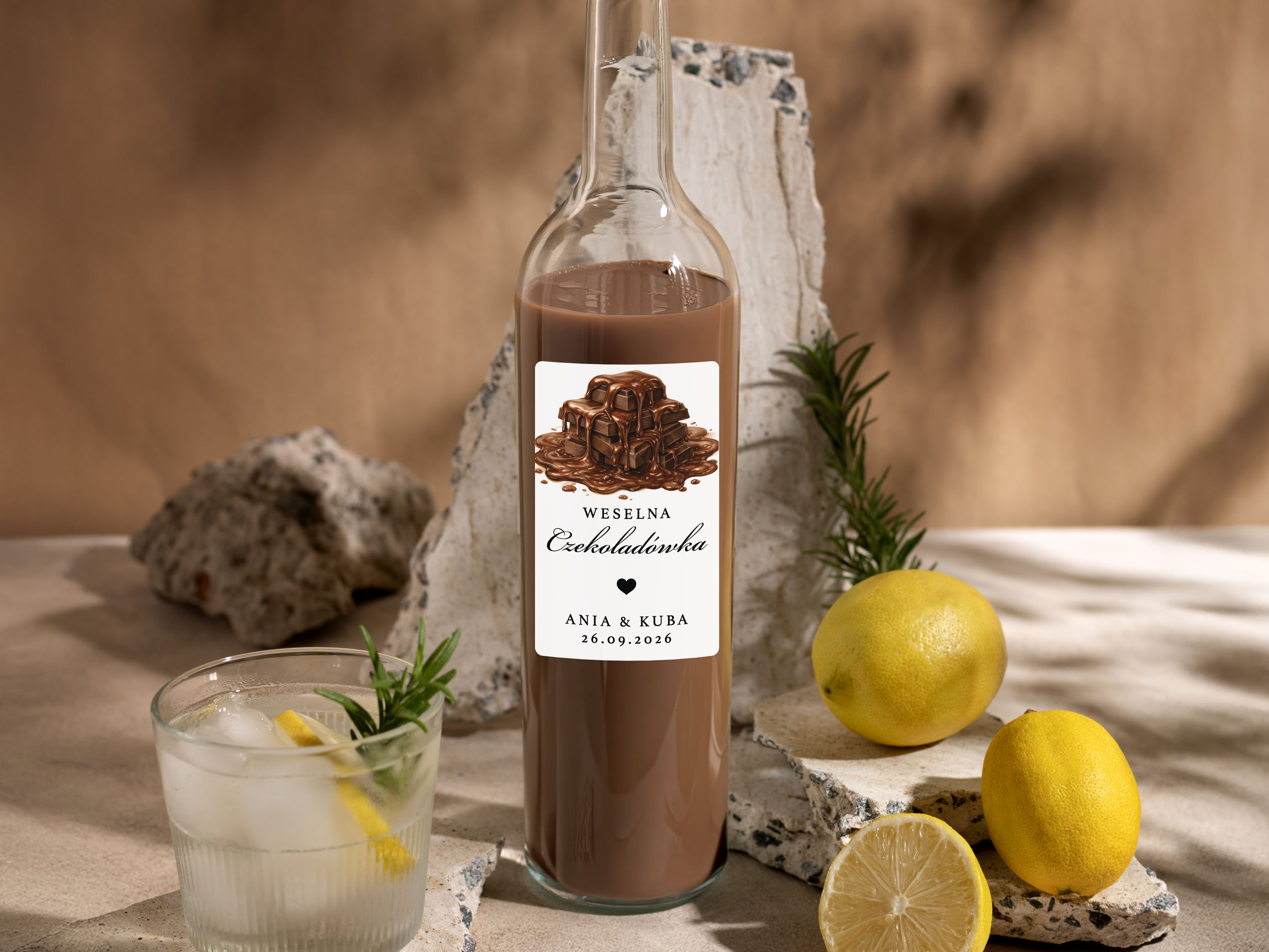 To propozycja dla osób, które chcą zadbać o spójne detale podczas wesela, poprawin lub innej uroczystości. Naklejki można dopasować do własnej koncepcji, dodając imiona, datę oraz nazwę trunku lub inny wybrany tekst.