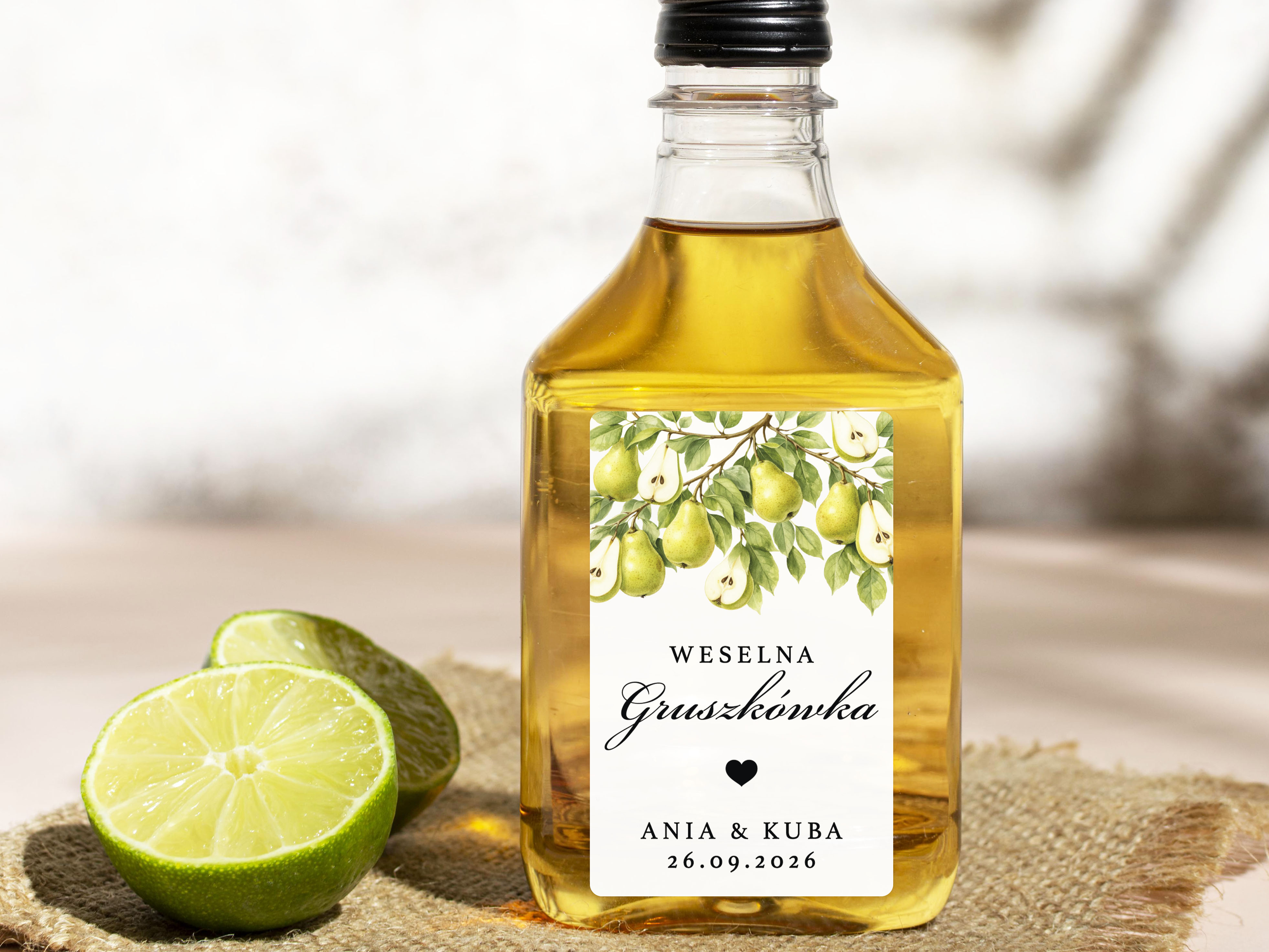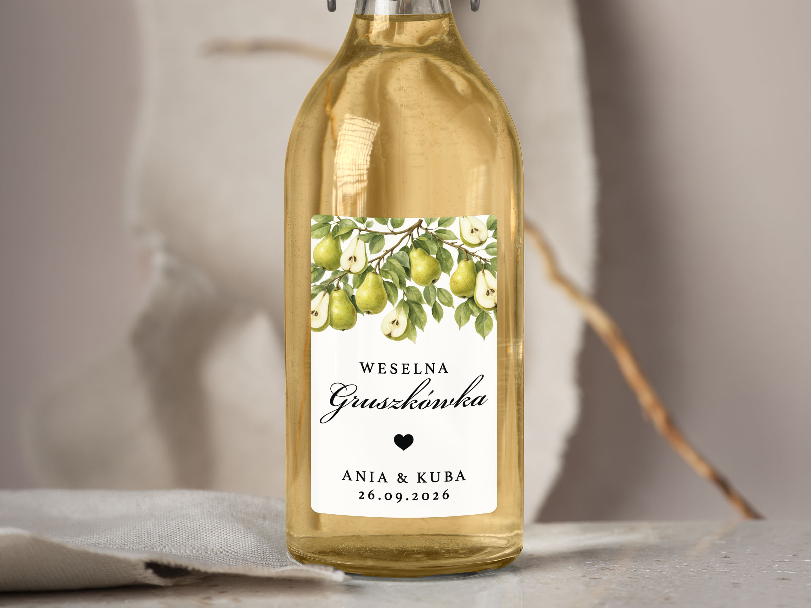 Naklejki na Gruszkówkę, prostokątne etykiety Gruszkówka weselna, personalizowane