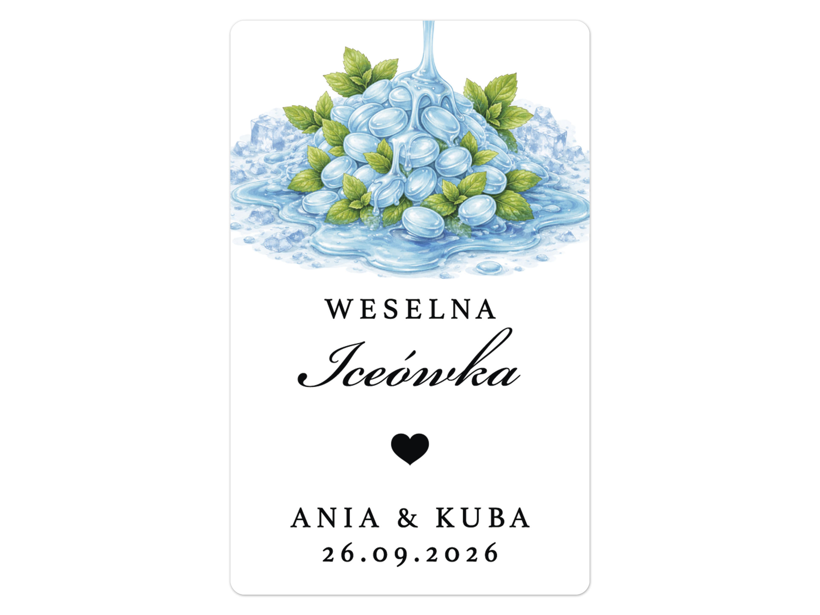 Naklejki na Iceówkę, prostokątne etykiety Iceówka weselna, personalizowane