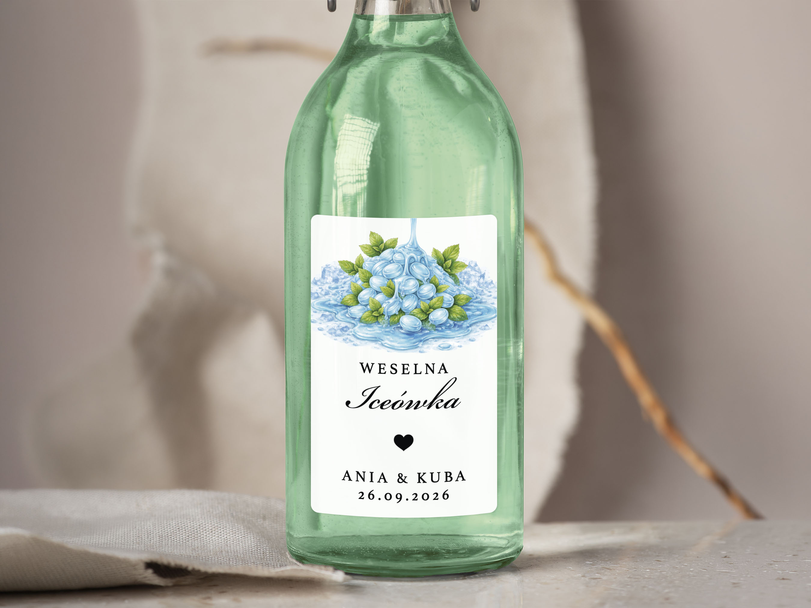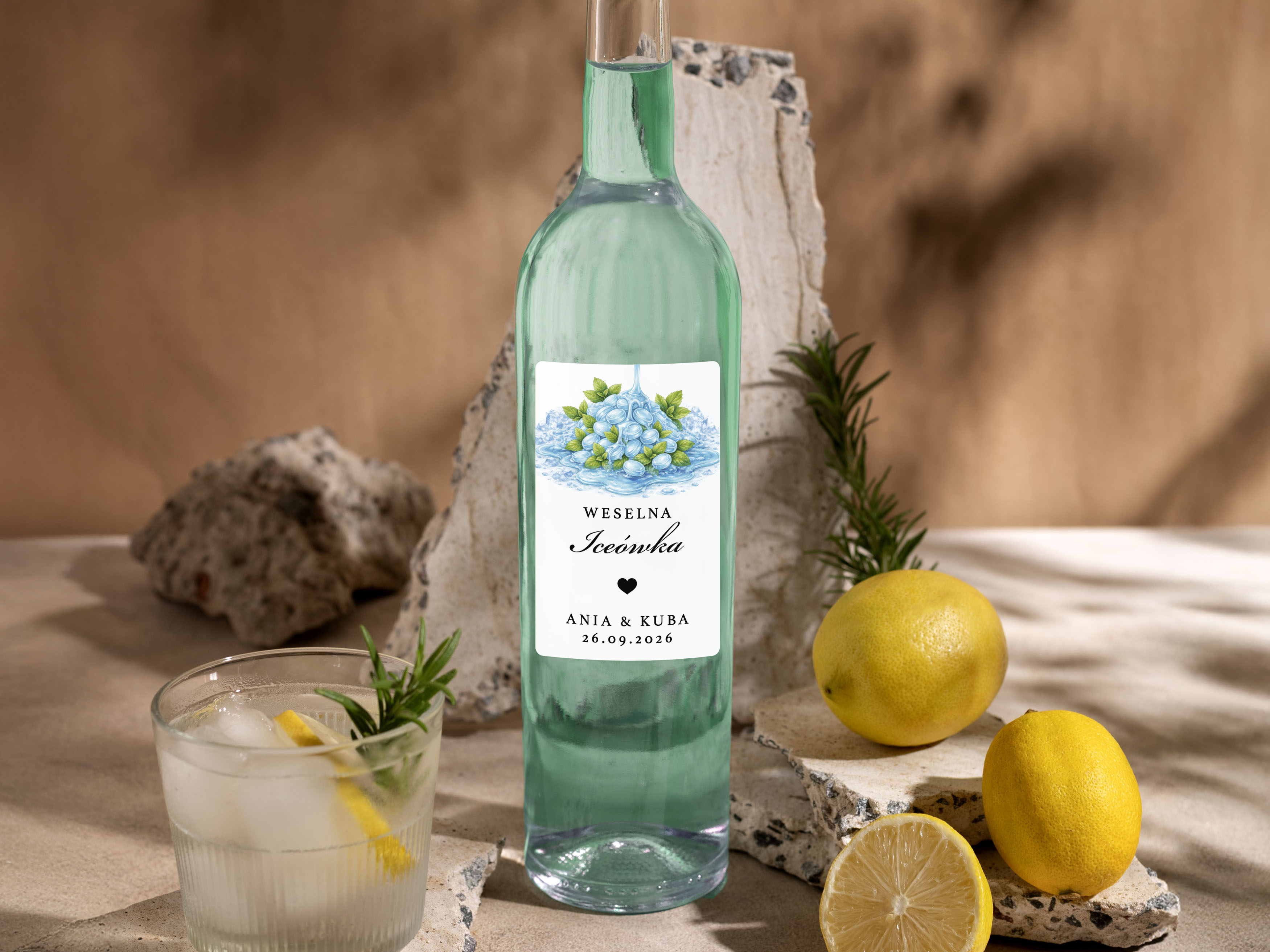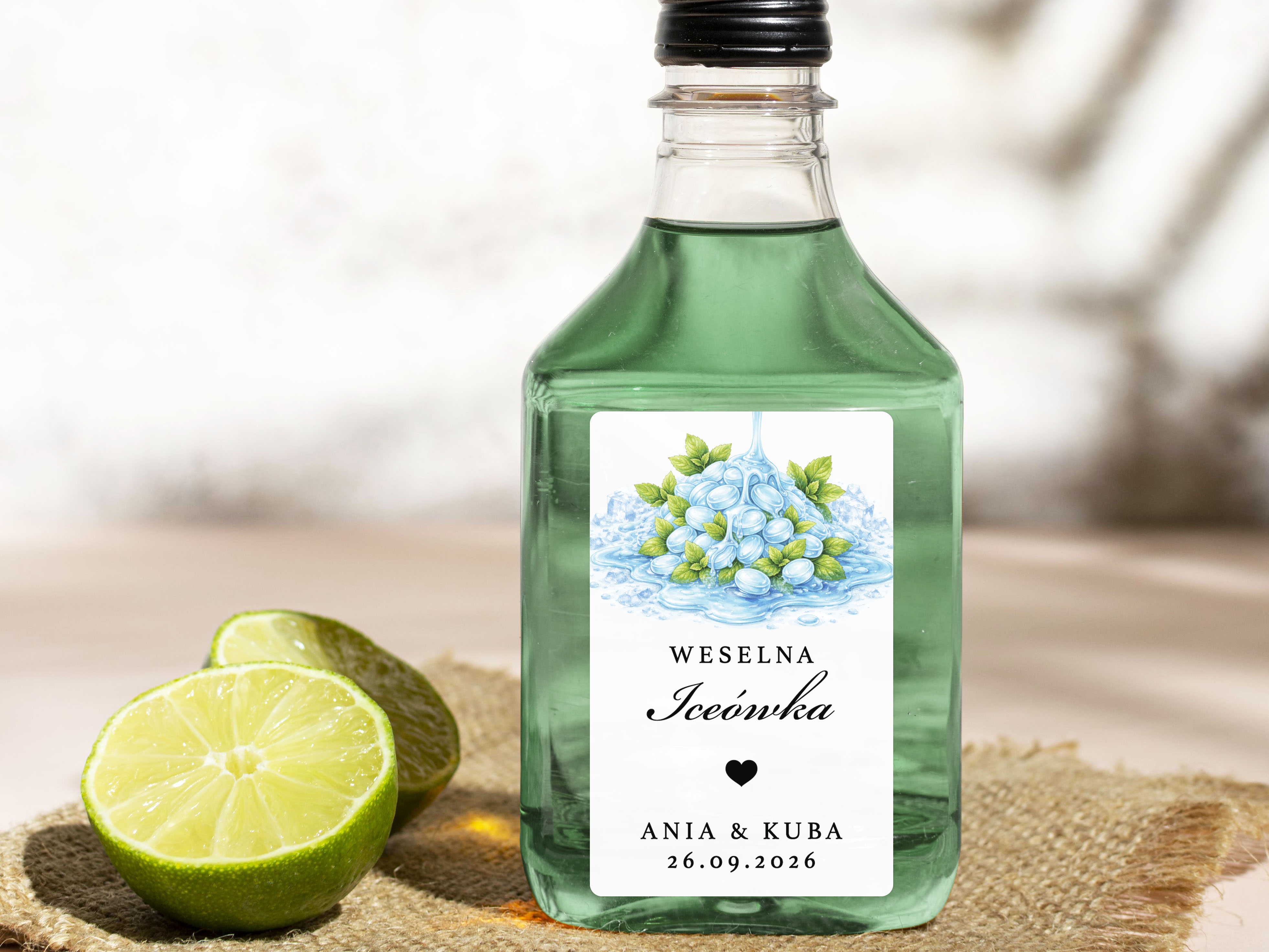 To propozycja dla osób, które chcą zadbać o spójne detale podczas wesela, poprawin lub innej uroczystości. Naklejki można dopasować do własnej koncepcji, dodając imiona, datę oraz nazwę trunku lub inny wybrany tekst.
