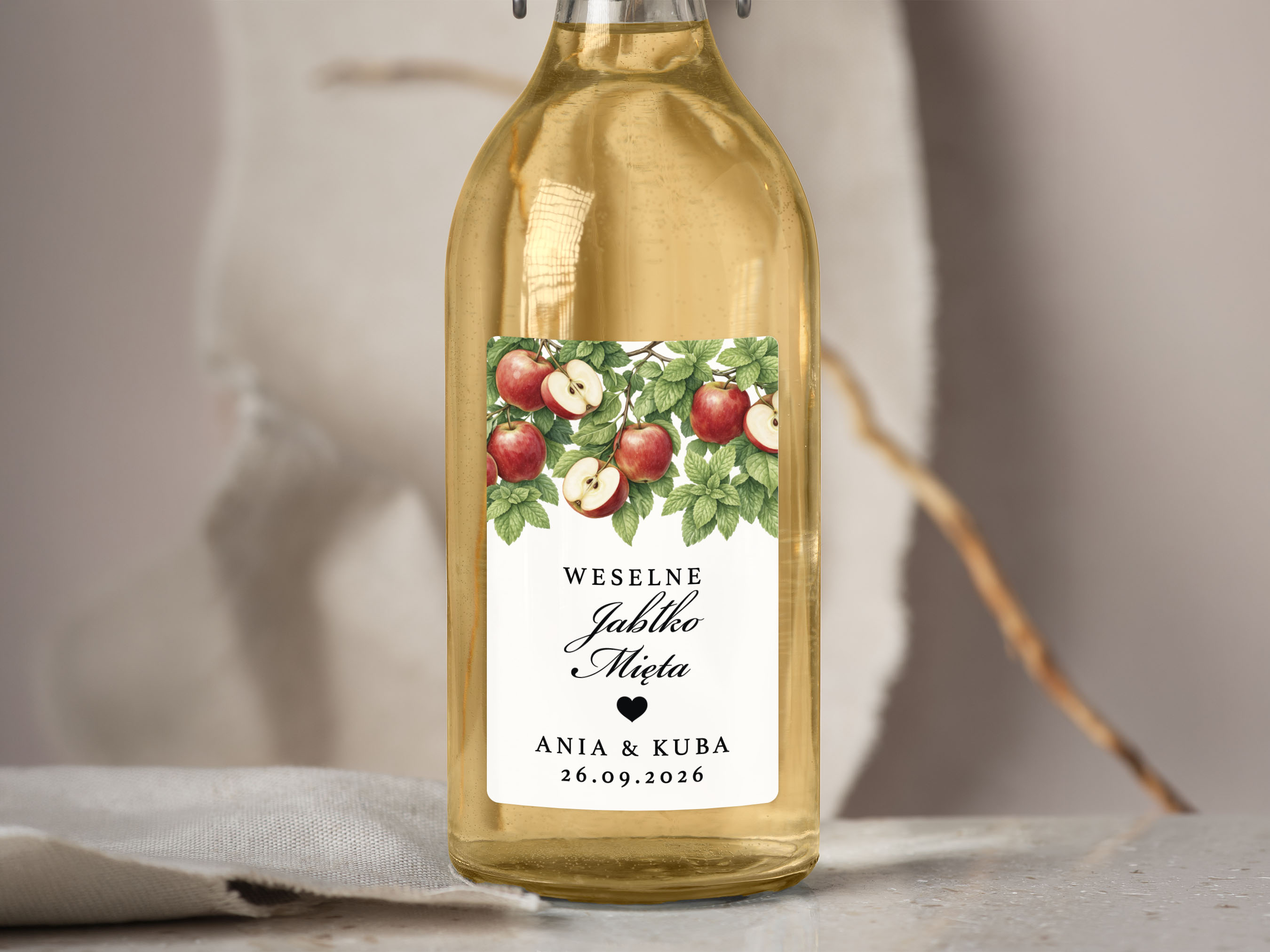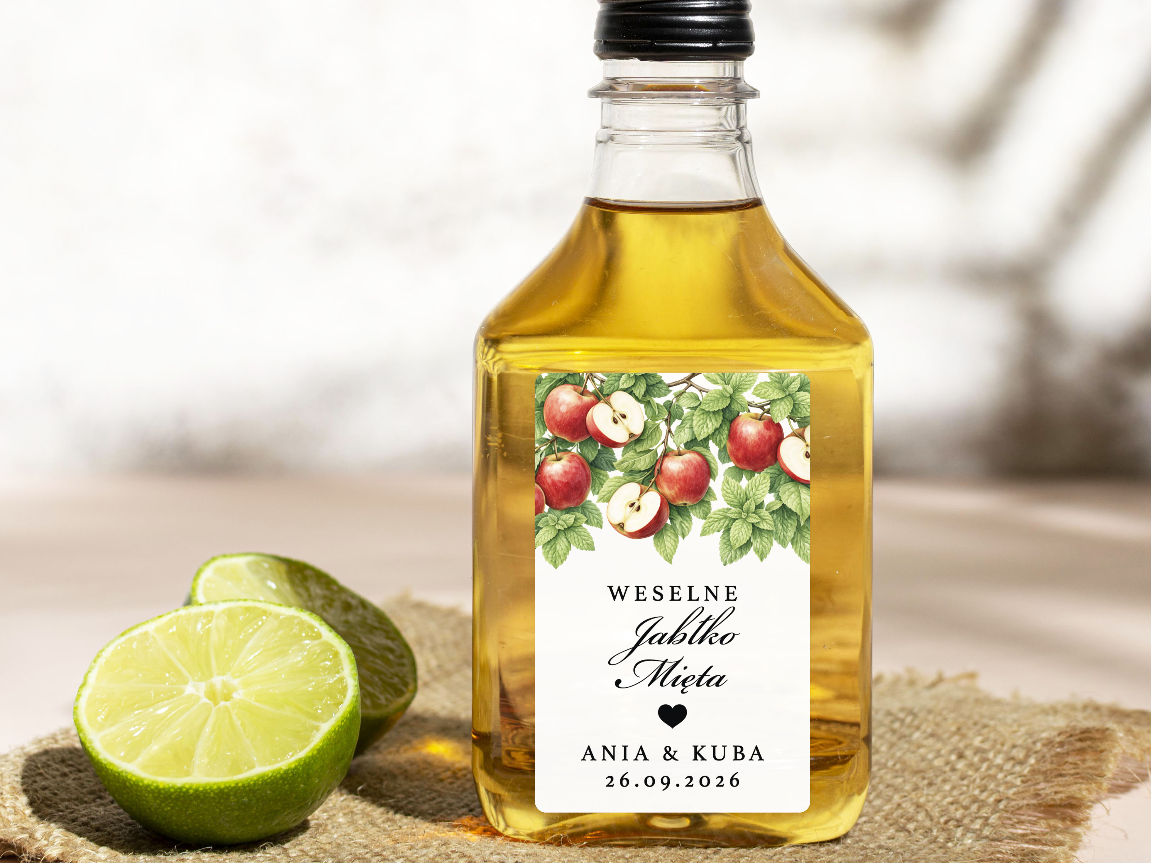 Naklejki na Jabłko Miętę, prostokątne etykiety Jabłko Mięta weselne, personalizowane