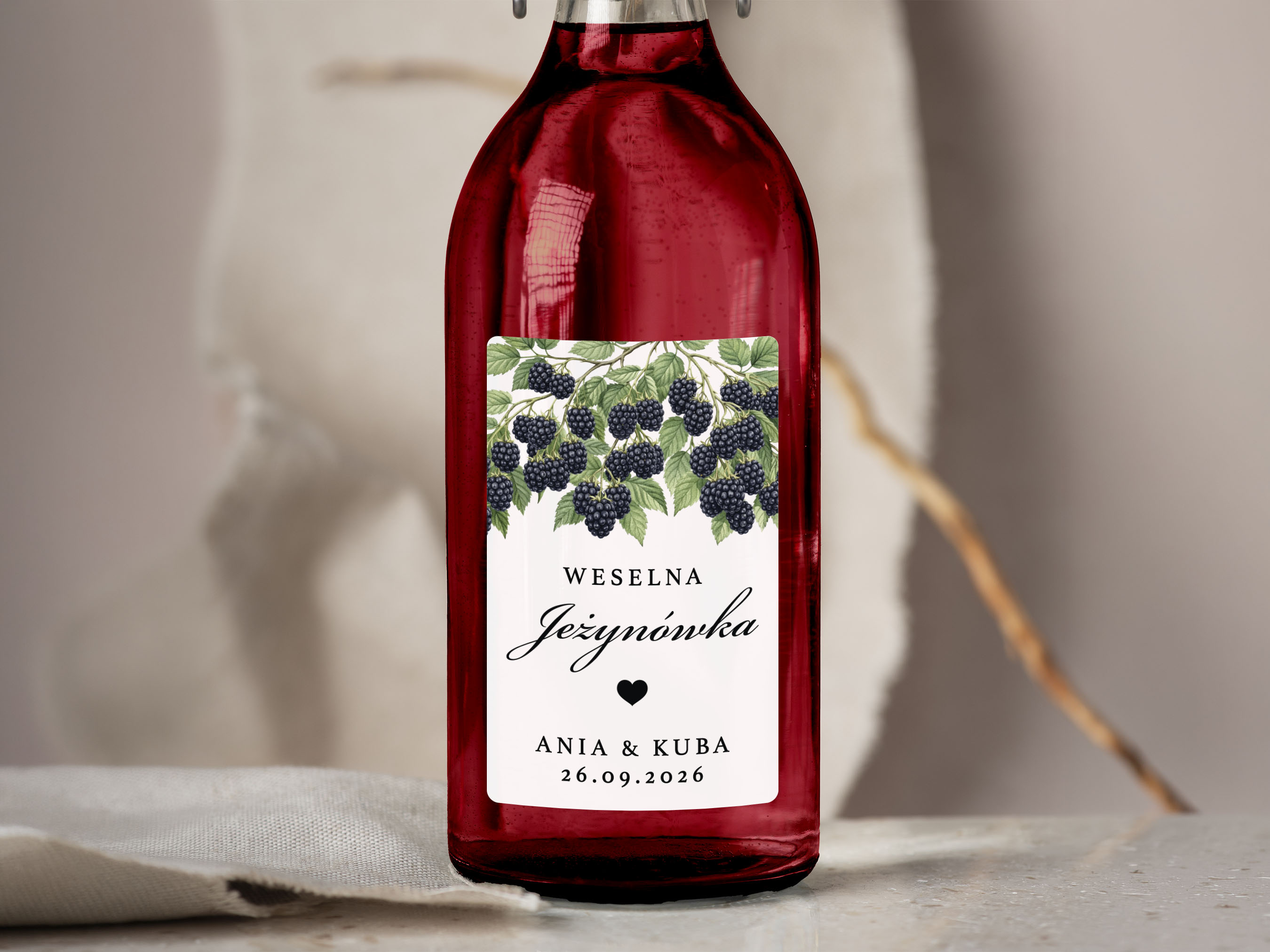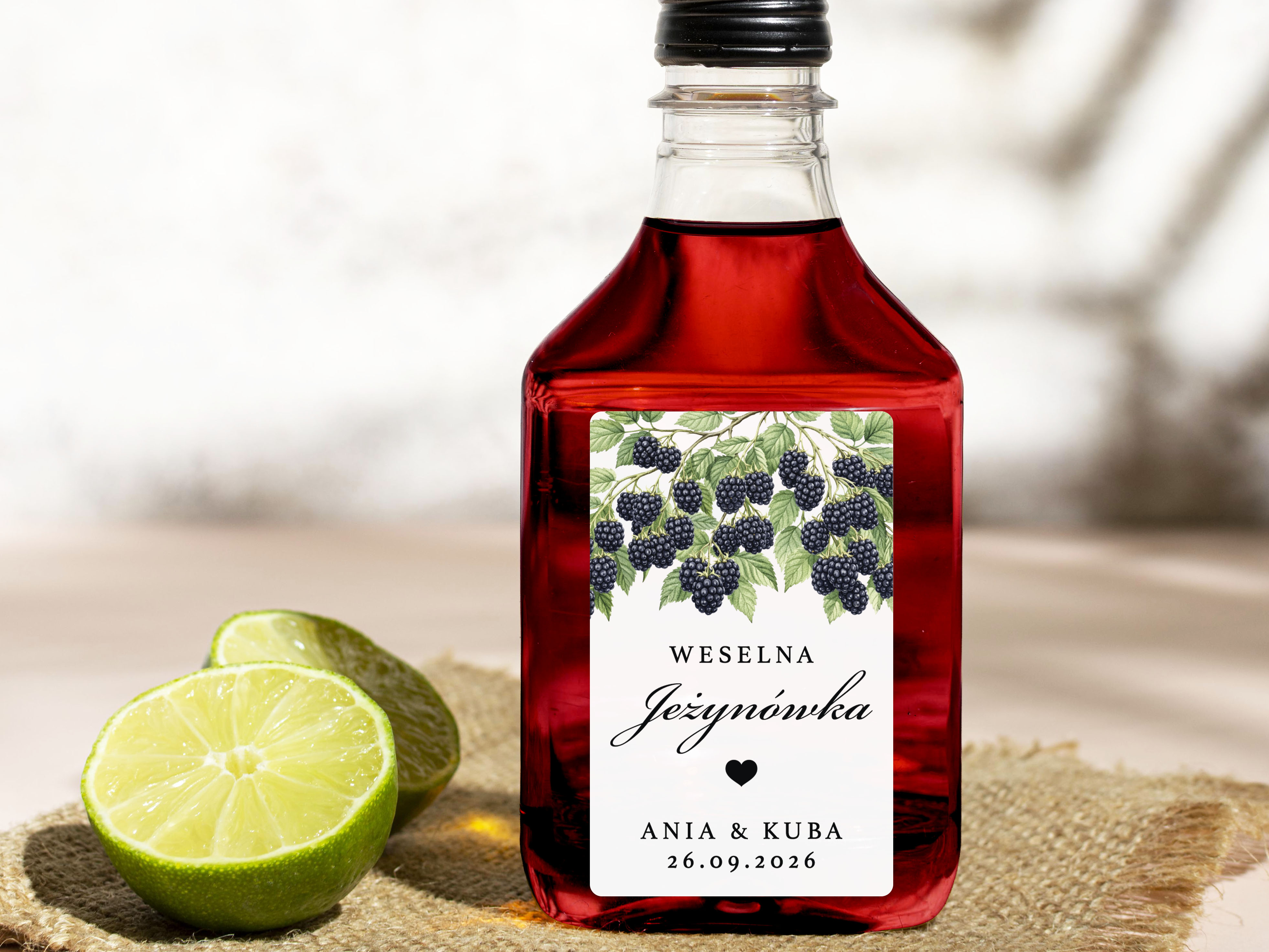 Naklejki na Jeżynówkę, prostokątne etykiety Jeżynówka weselna, personalizowane