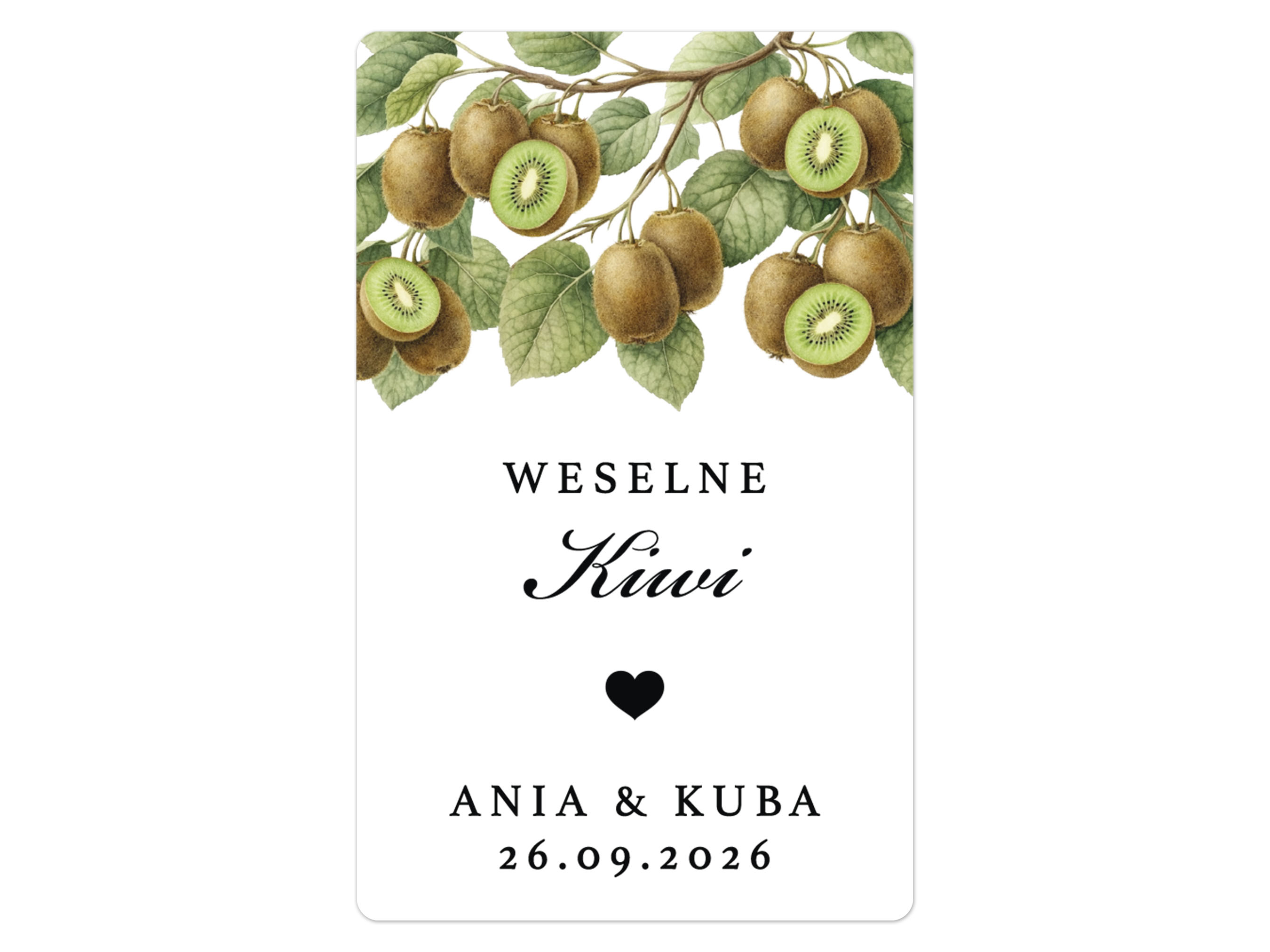 Naklejki na Kiwi, prostokątne etykiety Kiwi weselne, personalizowane