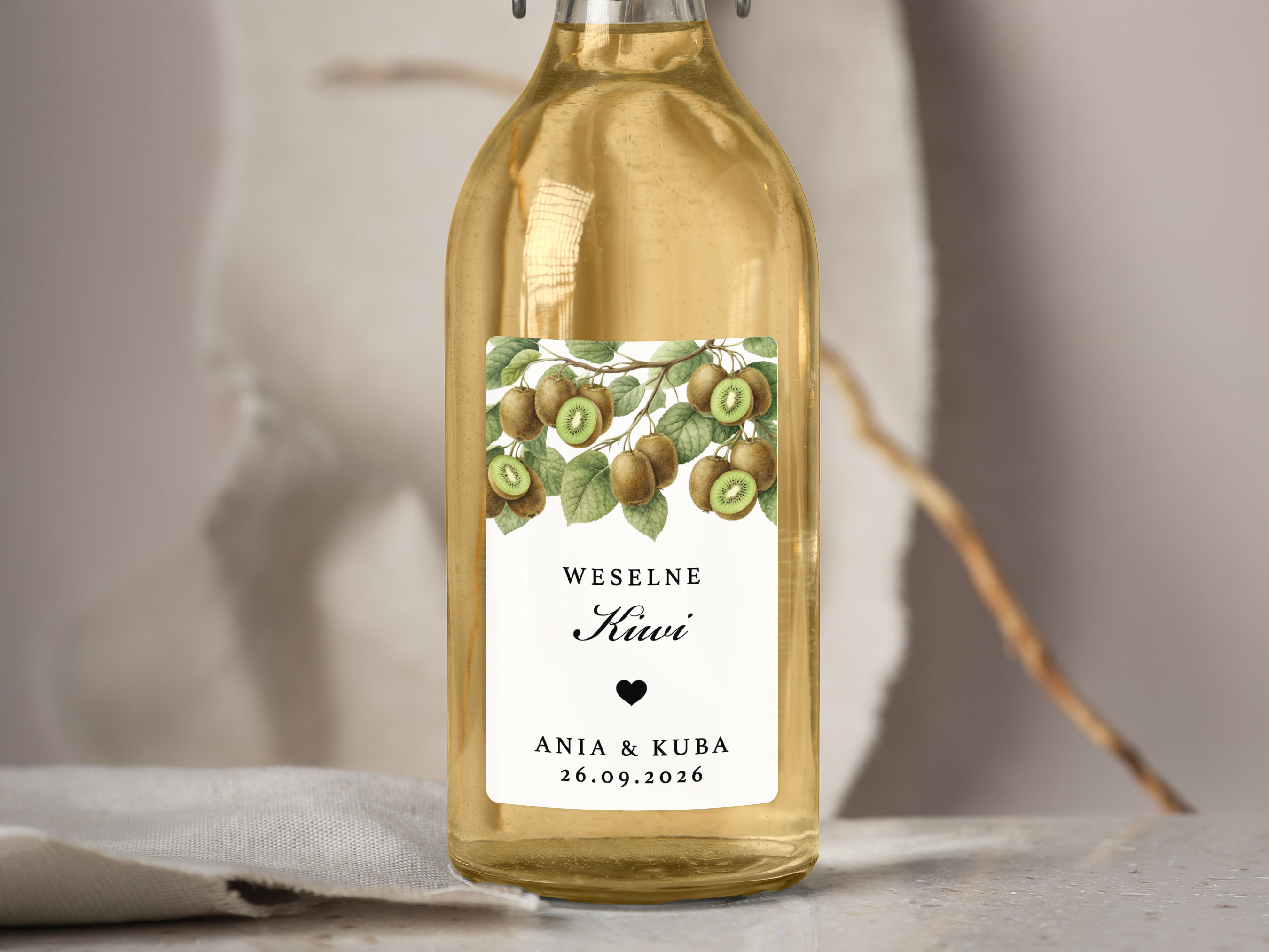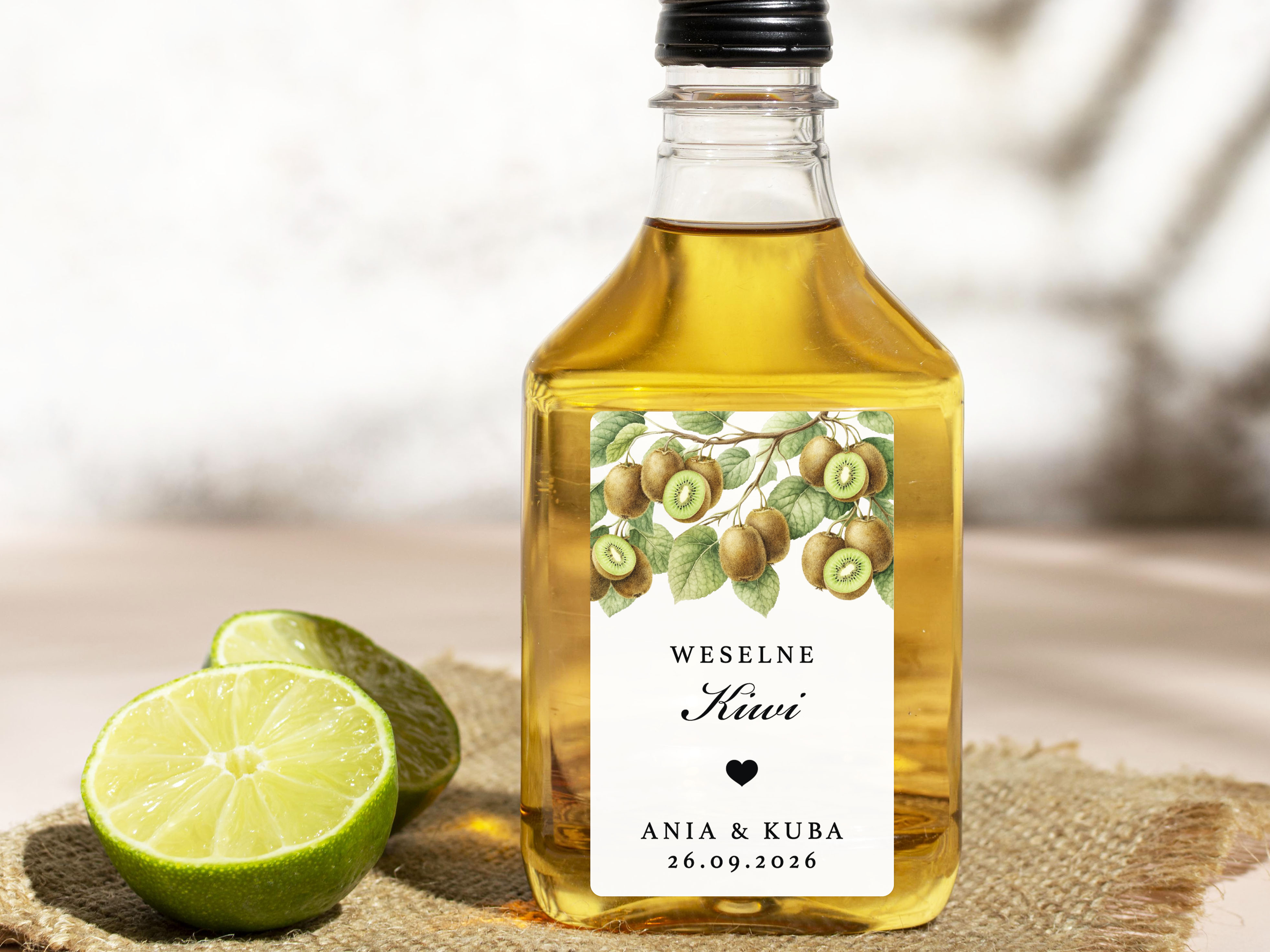 To propozycja dla osób, które chcą zadbać o spójne detale podczas wesela, poprawin lub innej uroczystości. Naklejki można dopasować do własnej koncepcji, dodając imiona, datę oraz nazwę trunku lub inny wybrany tekst.