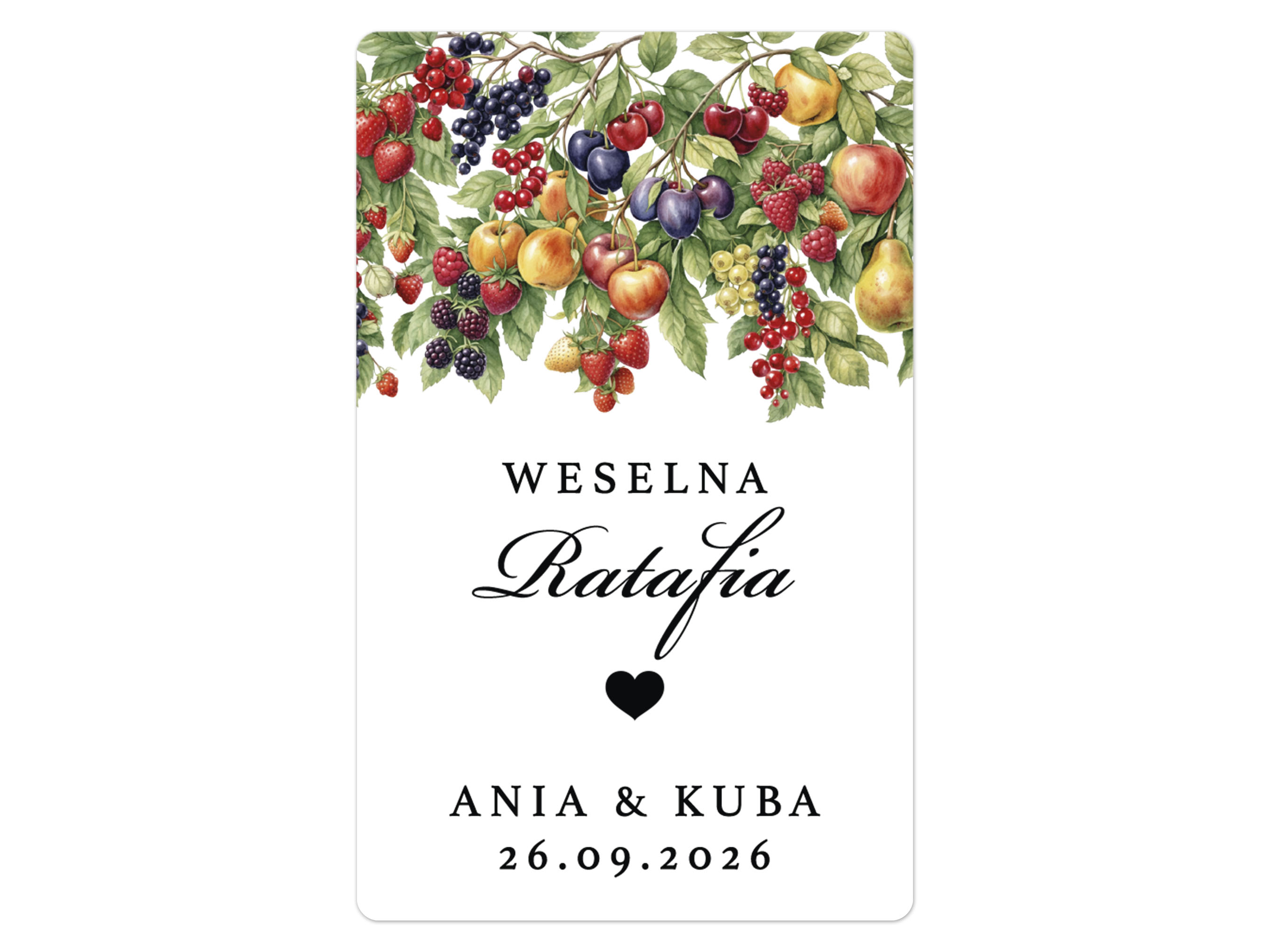 Naklejki na Ratafię, prostokątne etykiety Ratafia weselna, personalizowane