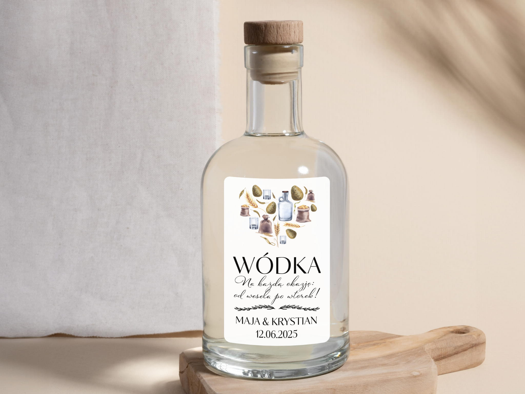 Personalizowane Naklejki na Alkohol Weselny – Etykiety na Wódkę, Nalewki i Bimber