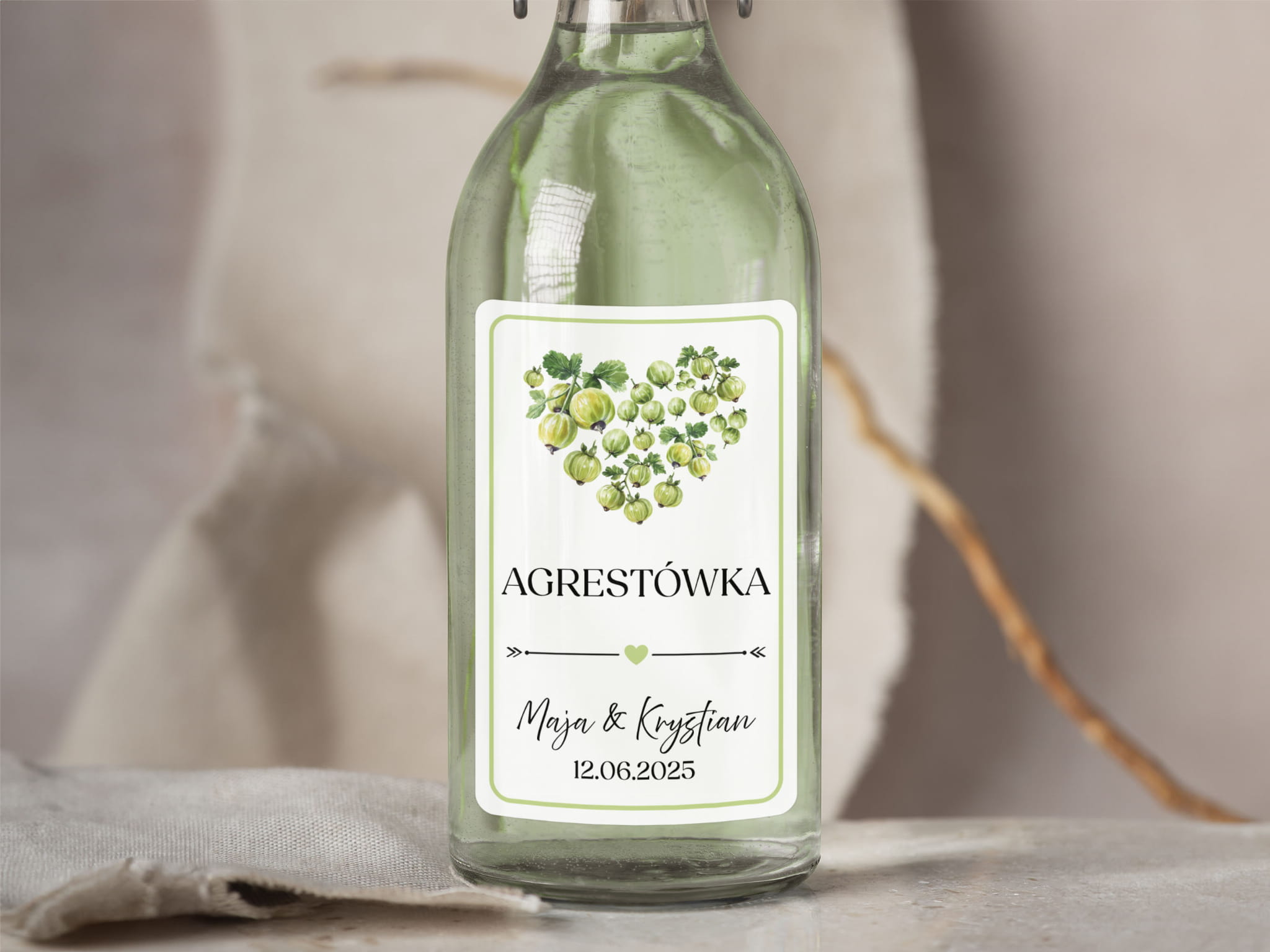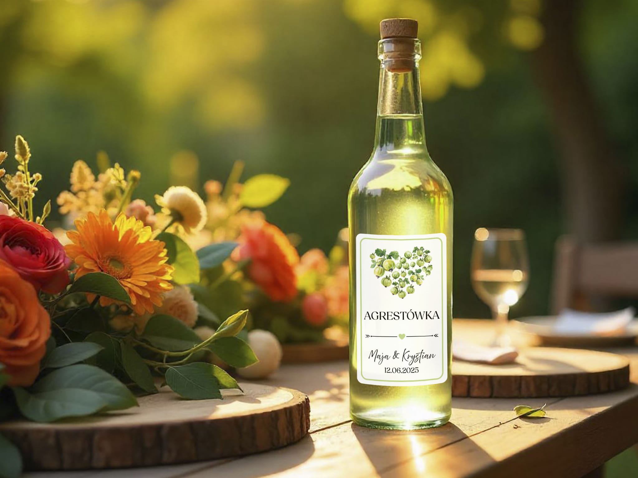 Naklejki na alkohol weselny- Agrestówka, Etykieta na Nalewkę