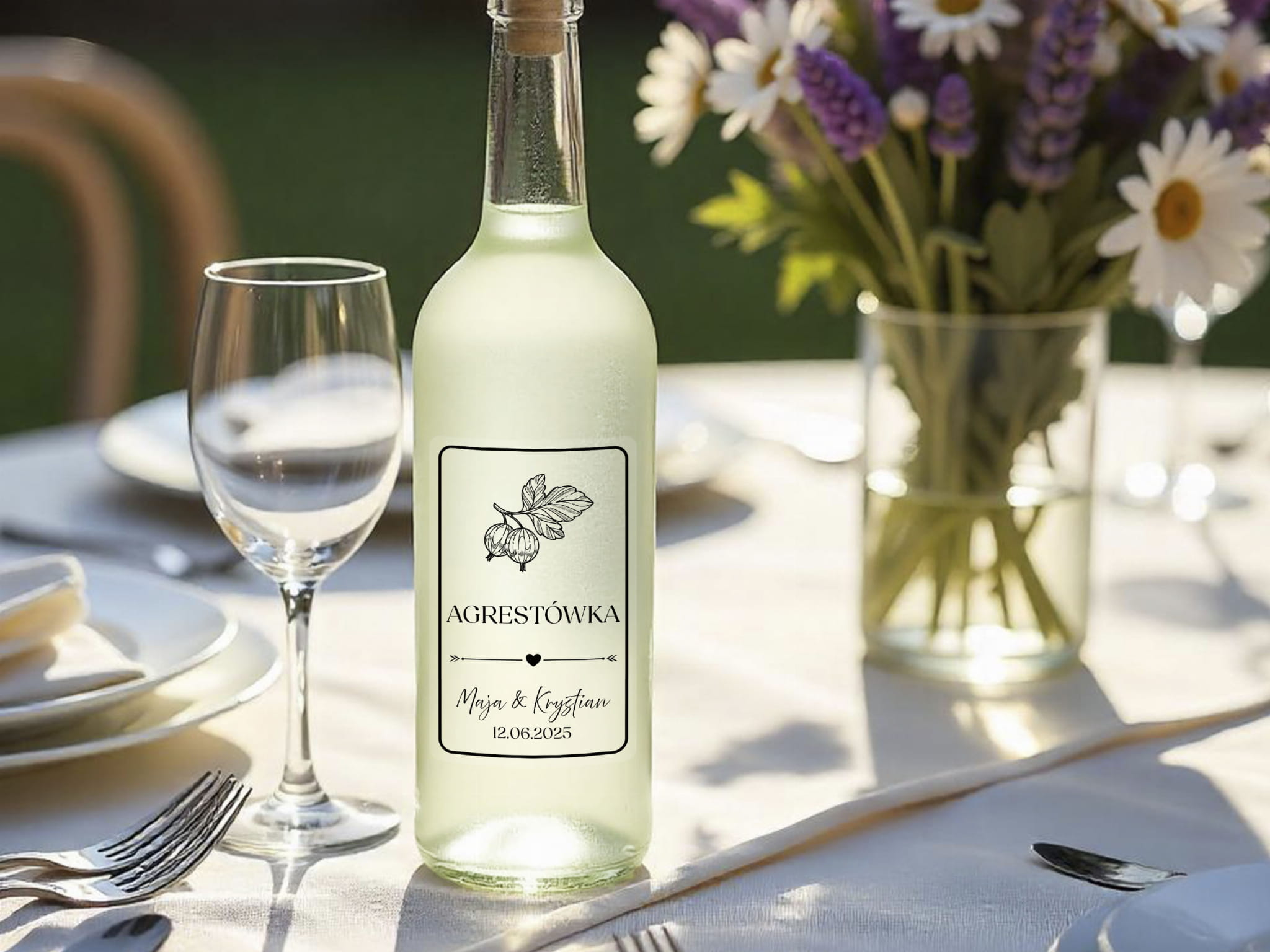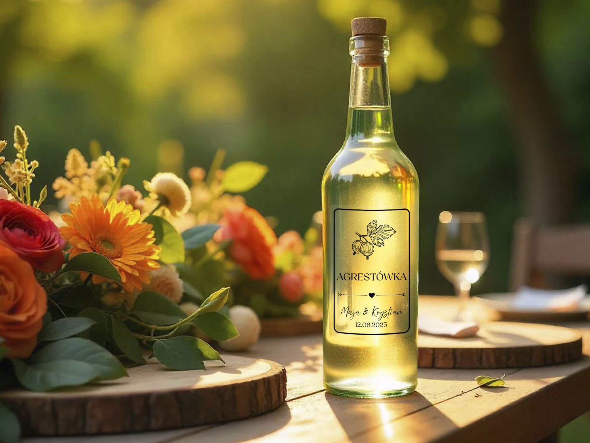 Naklejki na alkohol weselny- Agrestówka, Etykieta na Nalewkę