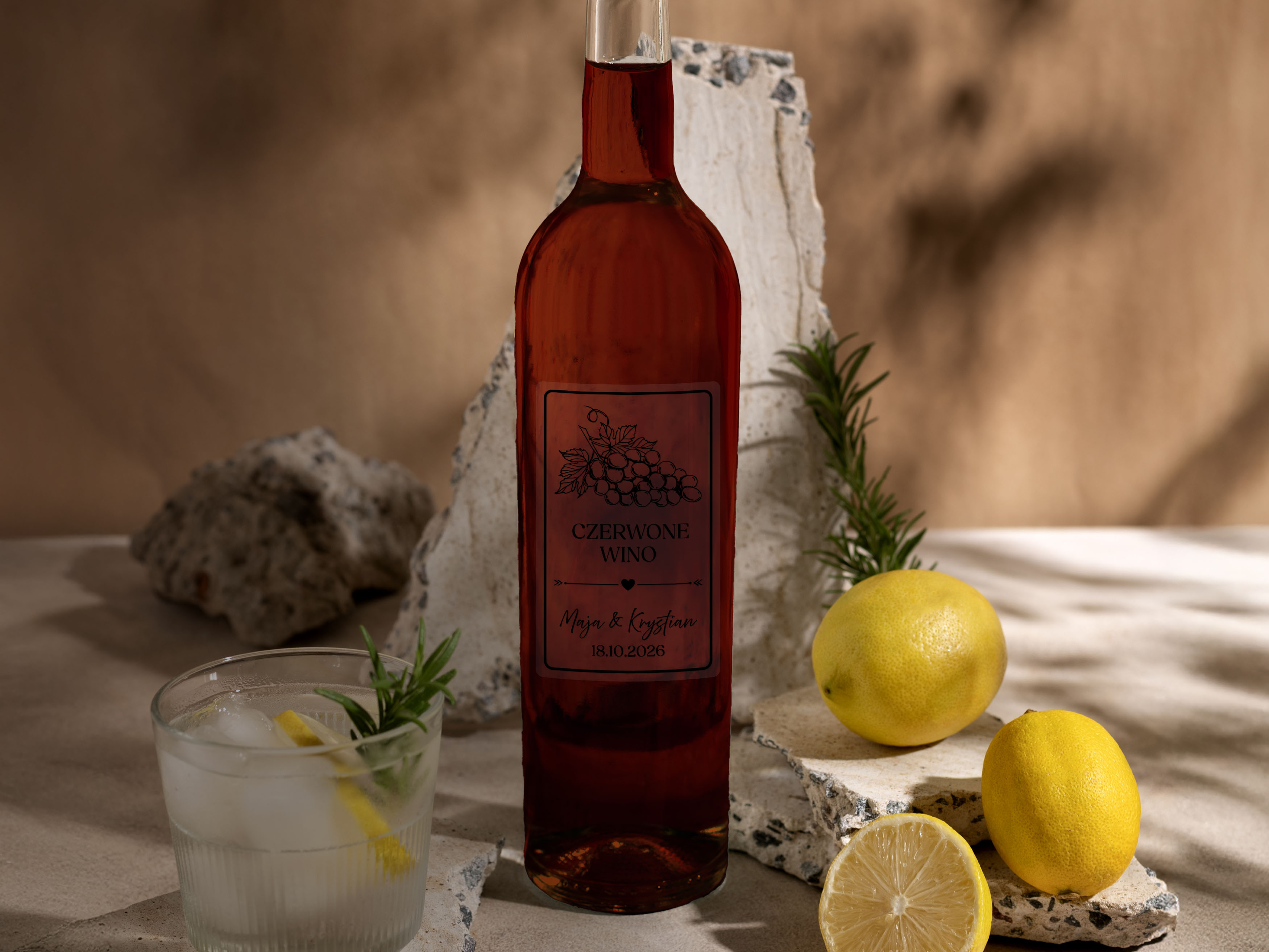 Naklejki na alkohol weselny- Czerwone Wino, Etykieta na Nalewkę