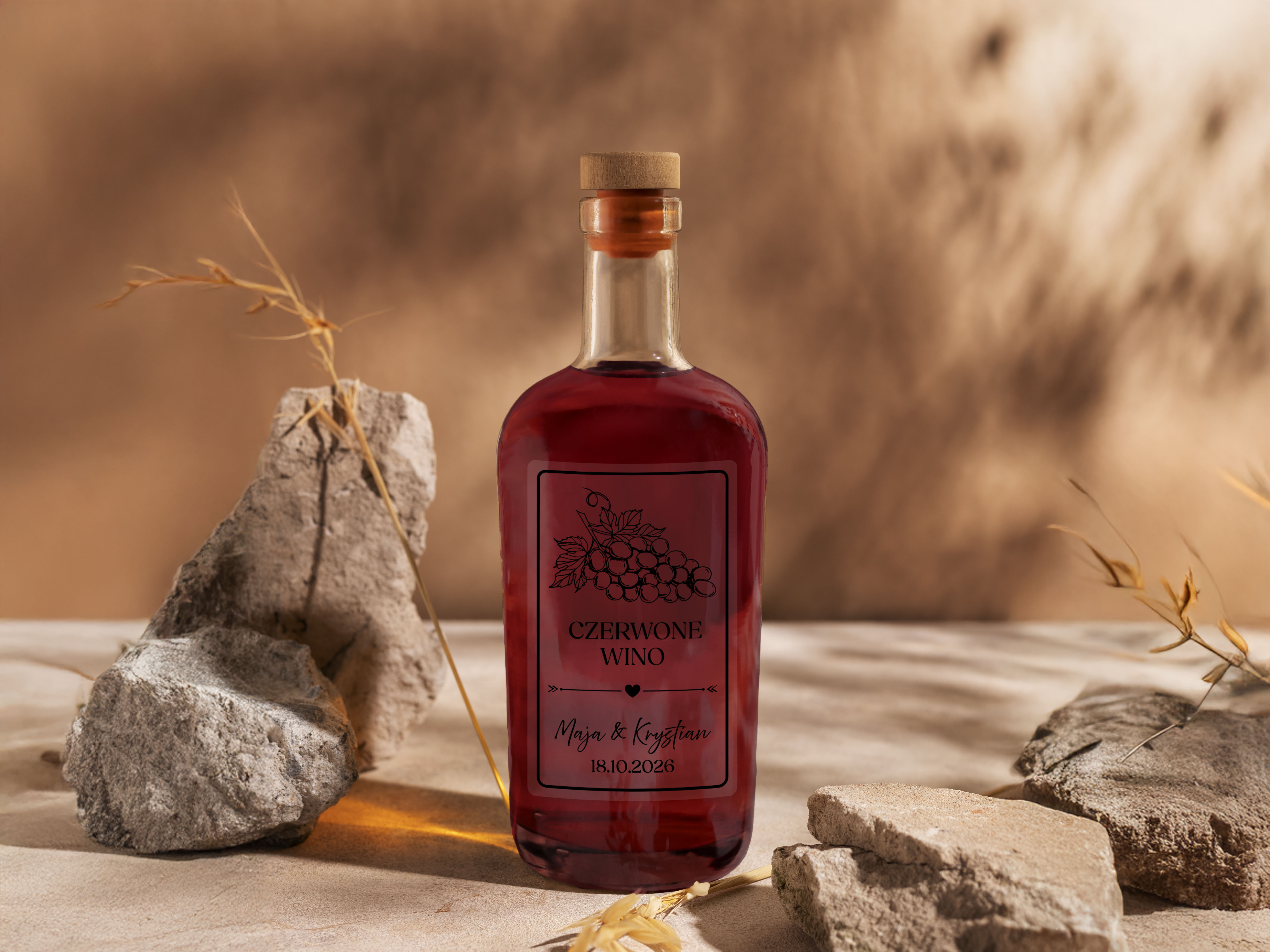 - Personalizacja: Dodaj imiona pary młodej, datę ślubu lub dowolny tekst, aby stworzyć niepowtarzalne naklejki na alkohol weselny.