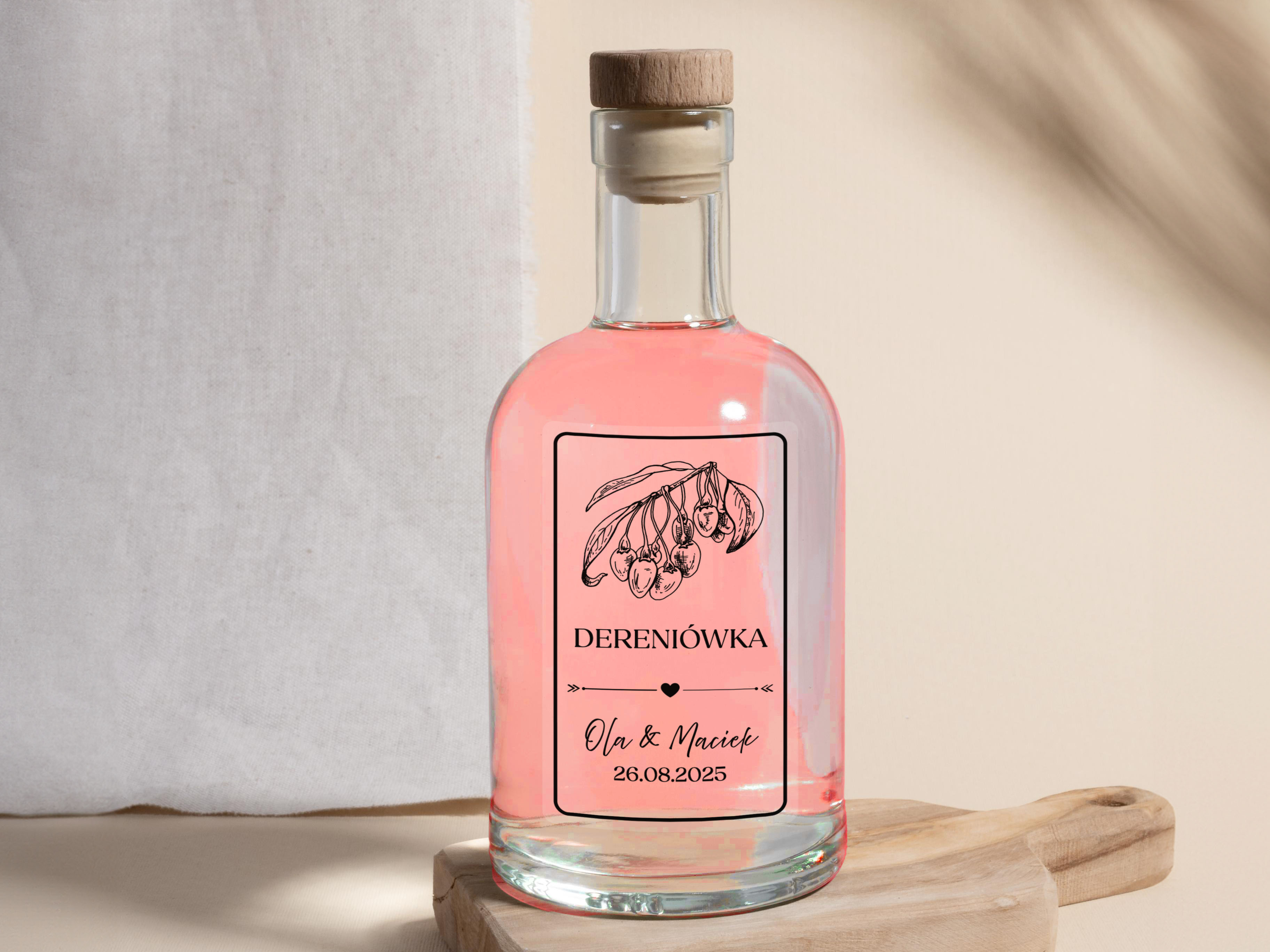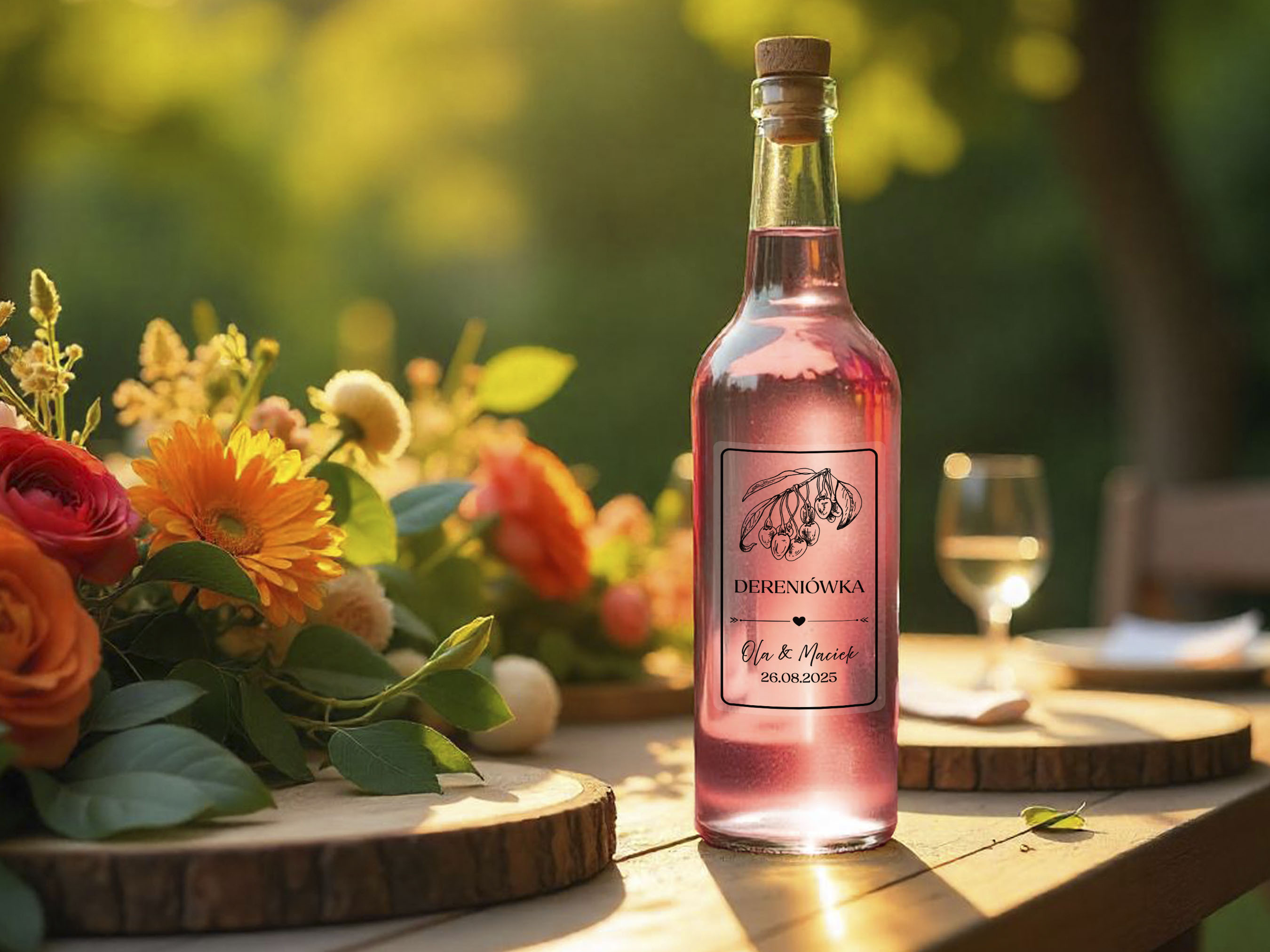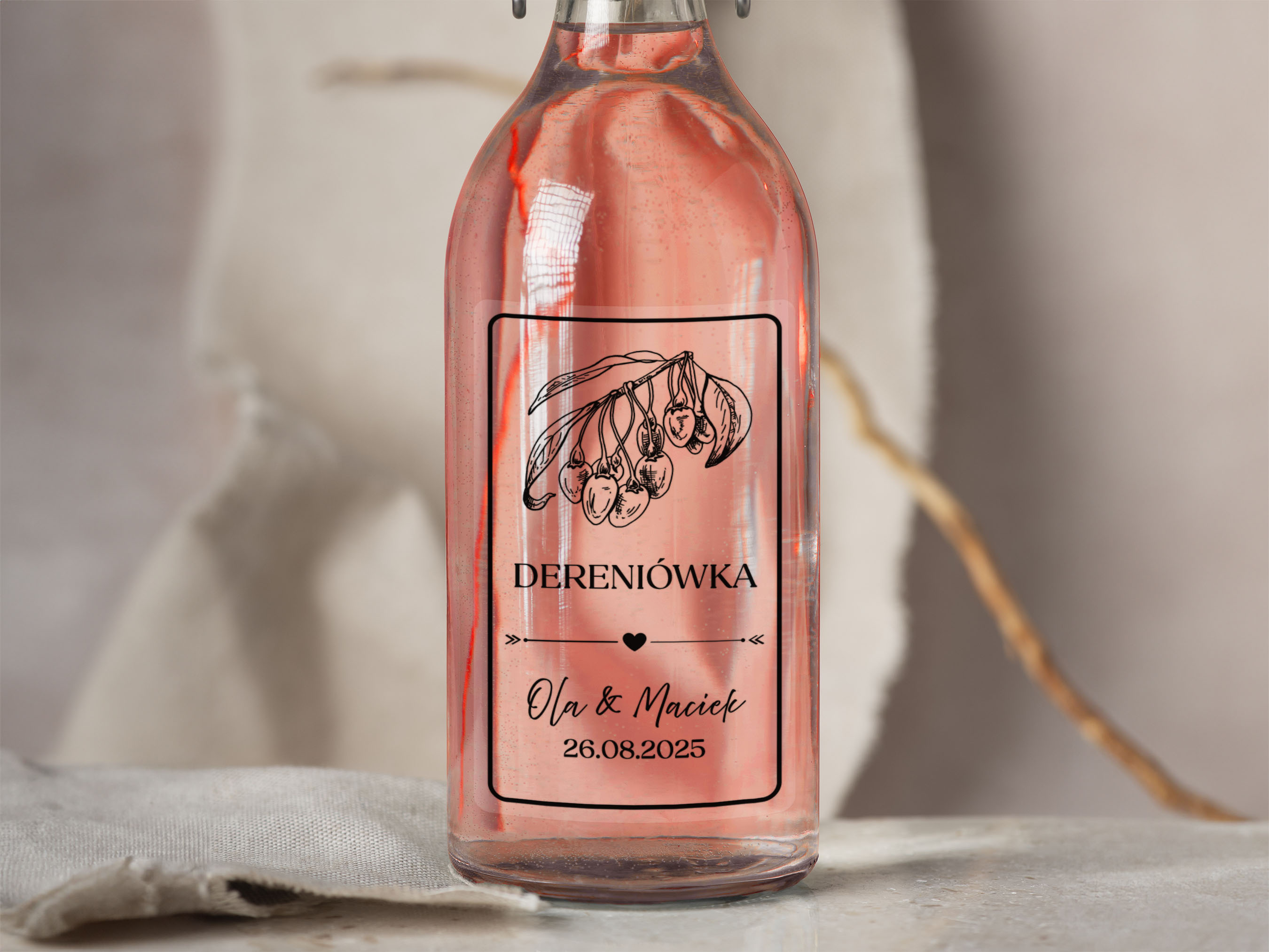 Naklejki na alkohol weselny- Dereniówka, Etykieta na Nalewkę
