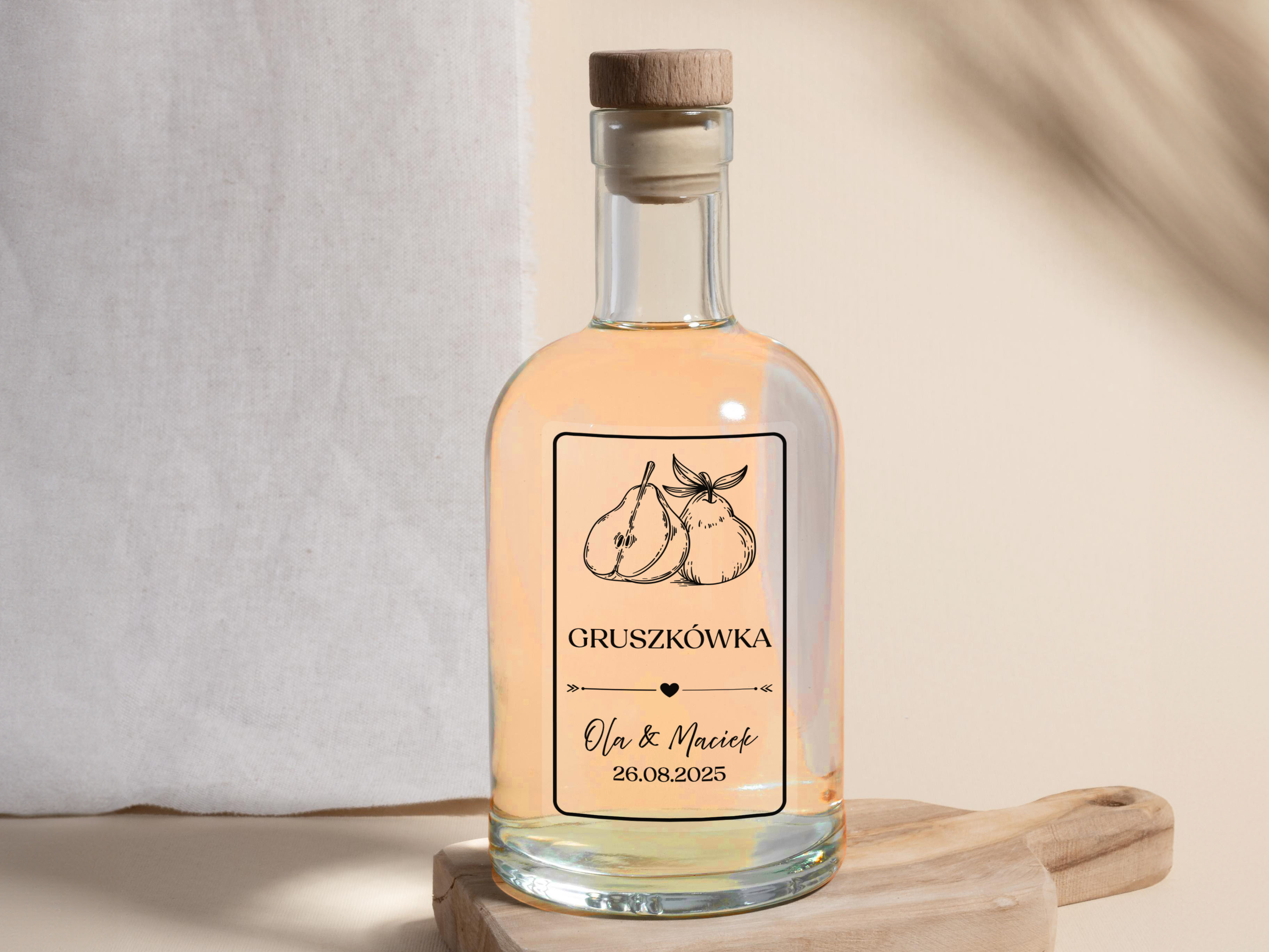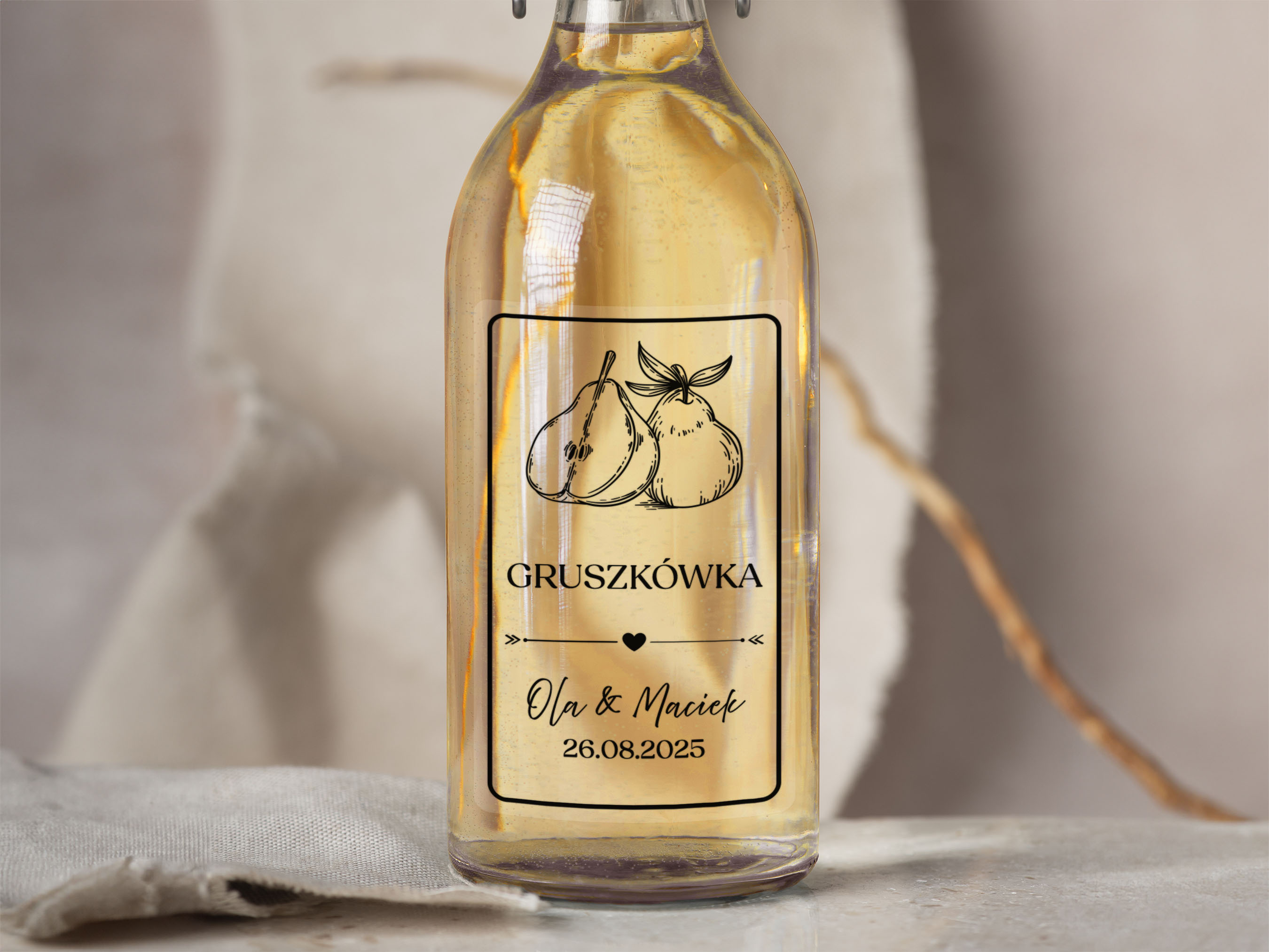 Naklejki na alkohol weselny- Gruszkówka, Gruszka. Etykieta na Nalewkę