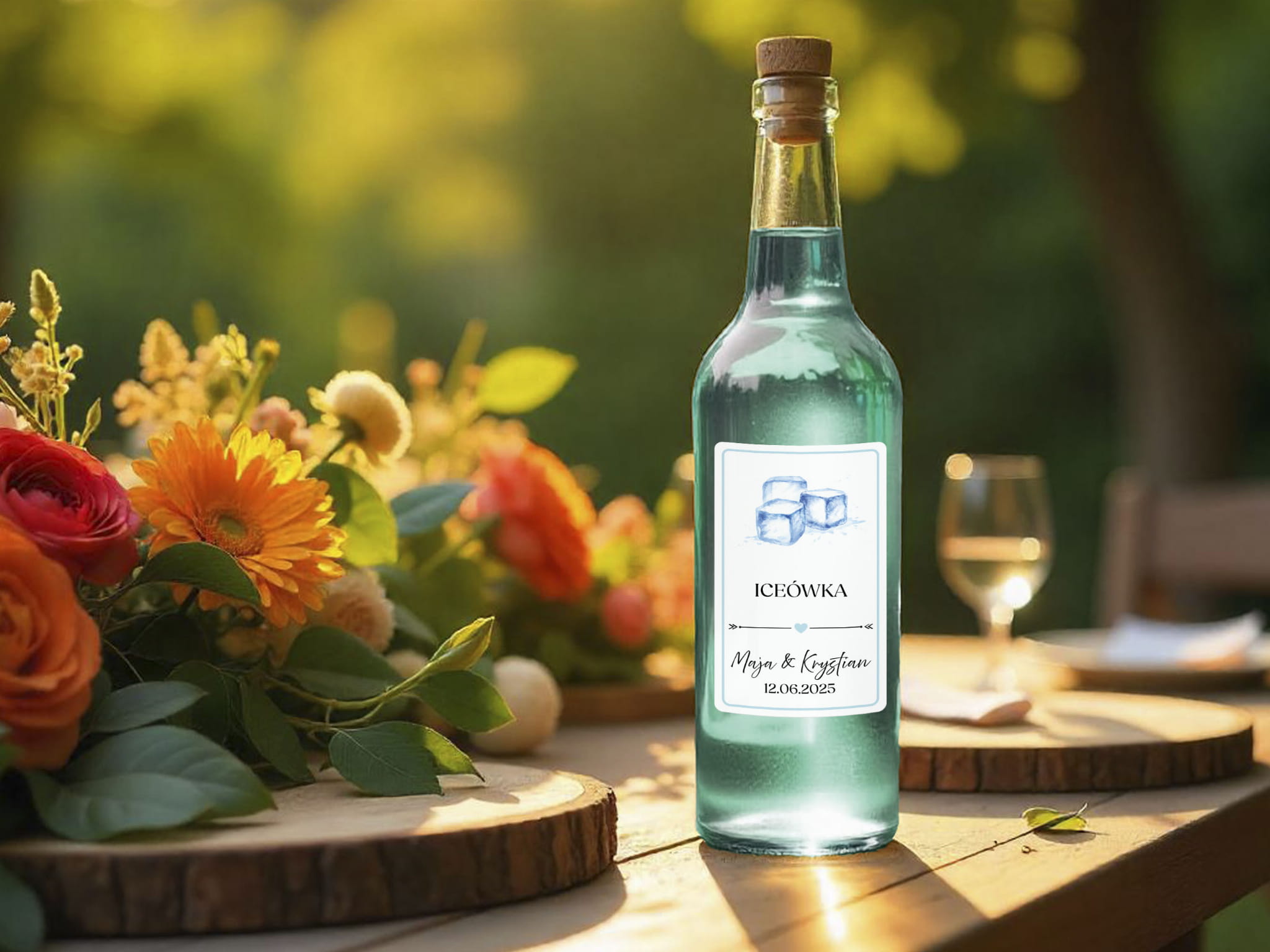 - Stylowy dodatek na stół weselny: Podkreśl elegancję swojej uroczystości, ozdabiając wódkę weselną etykietami dopasowanymi do Twojego motywu weselnego.