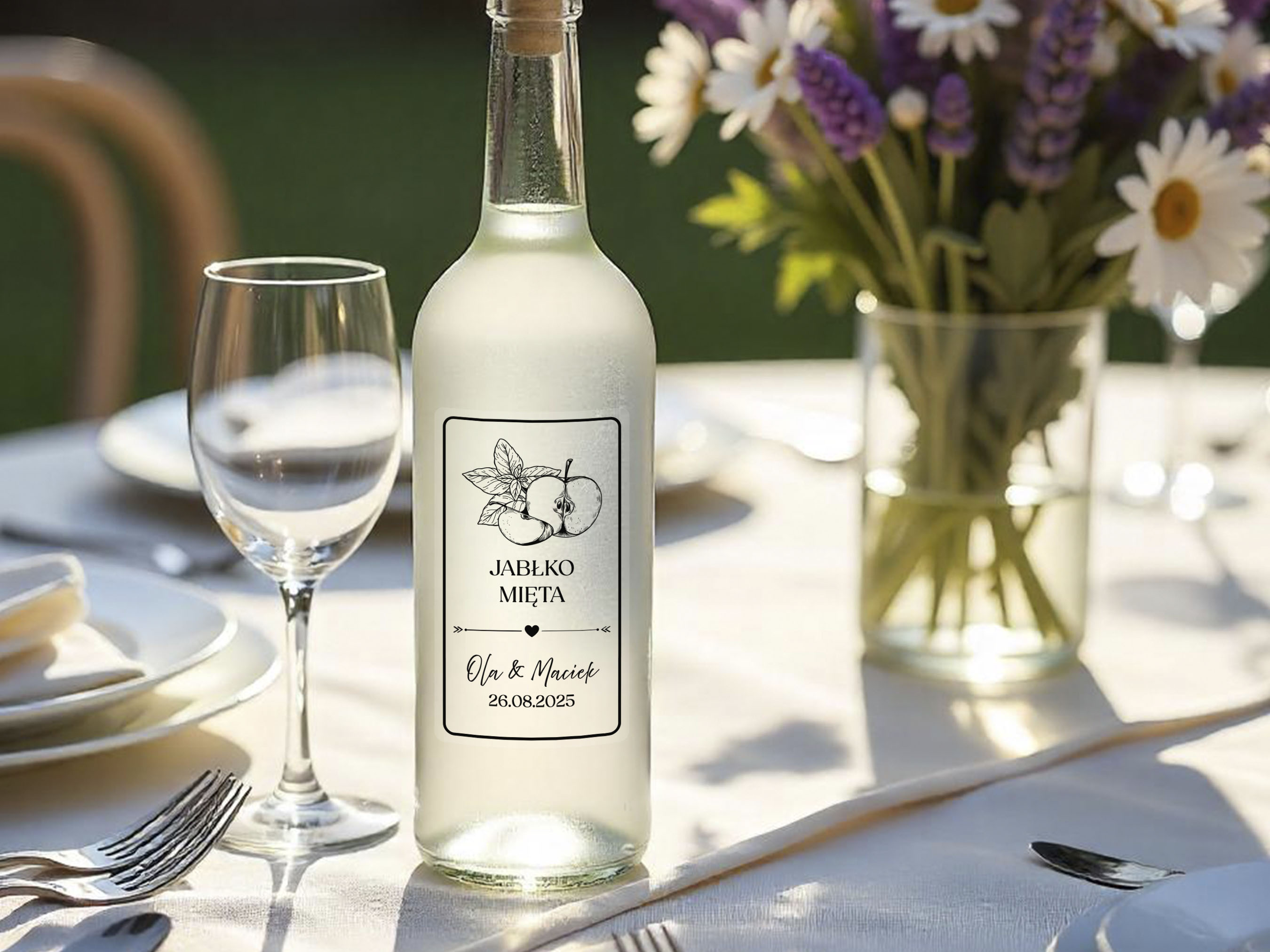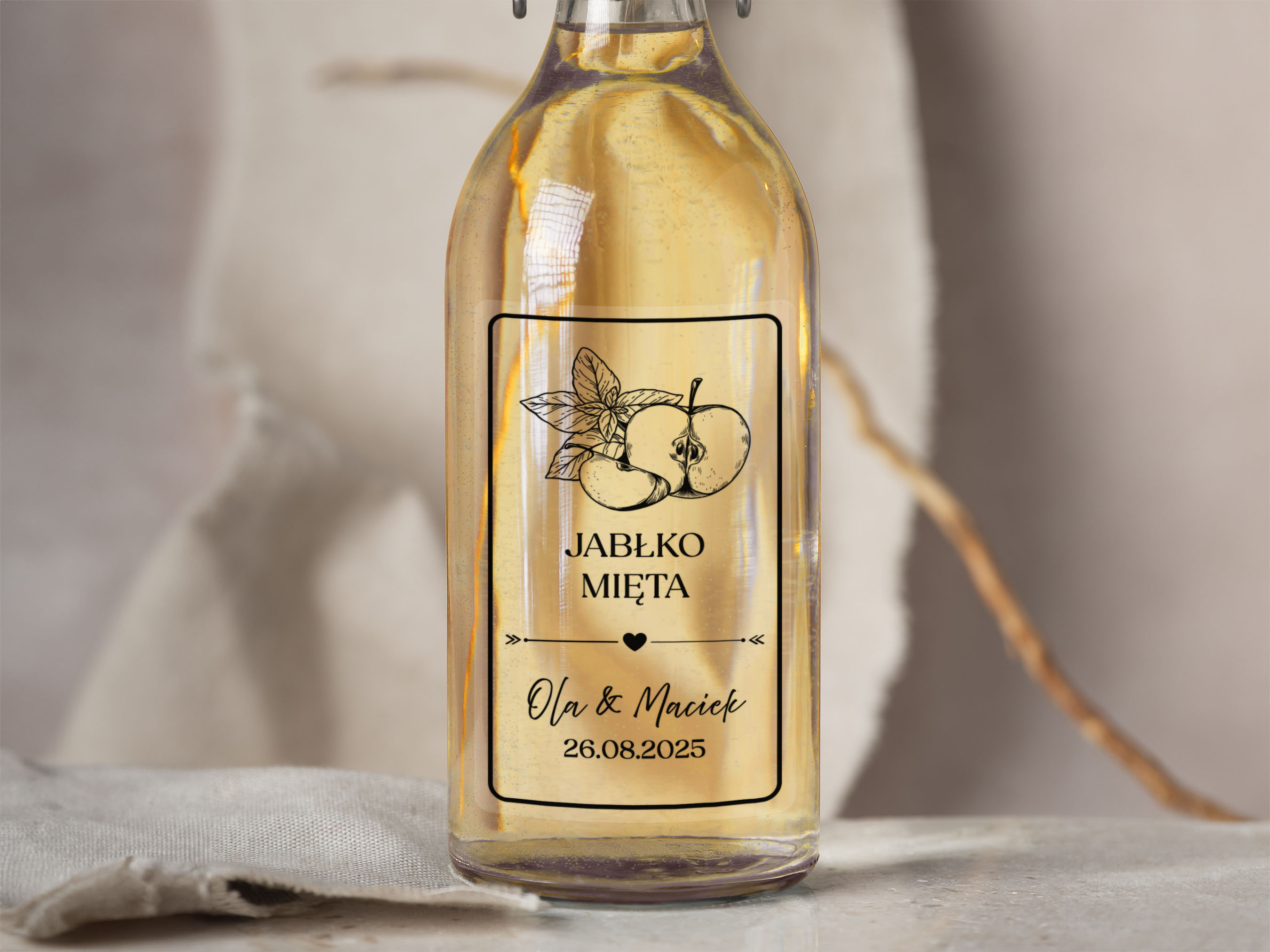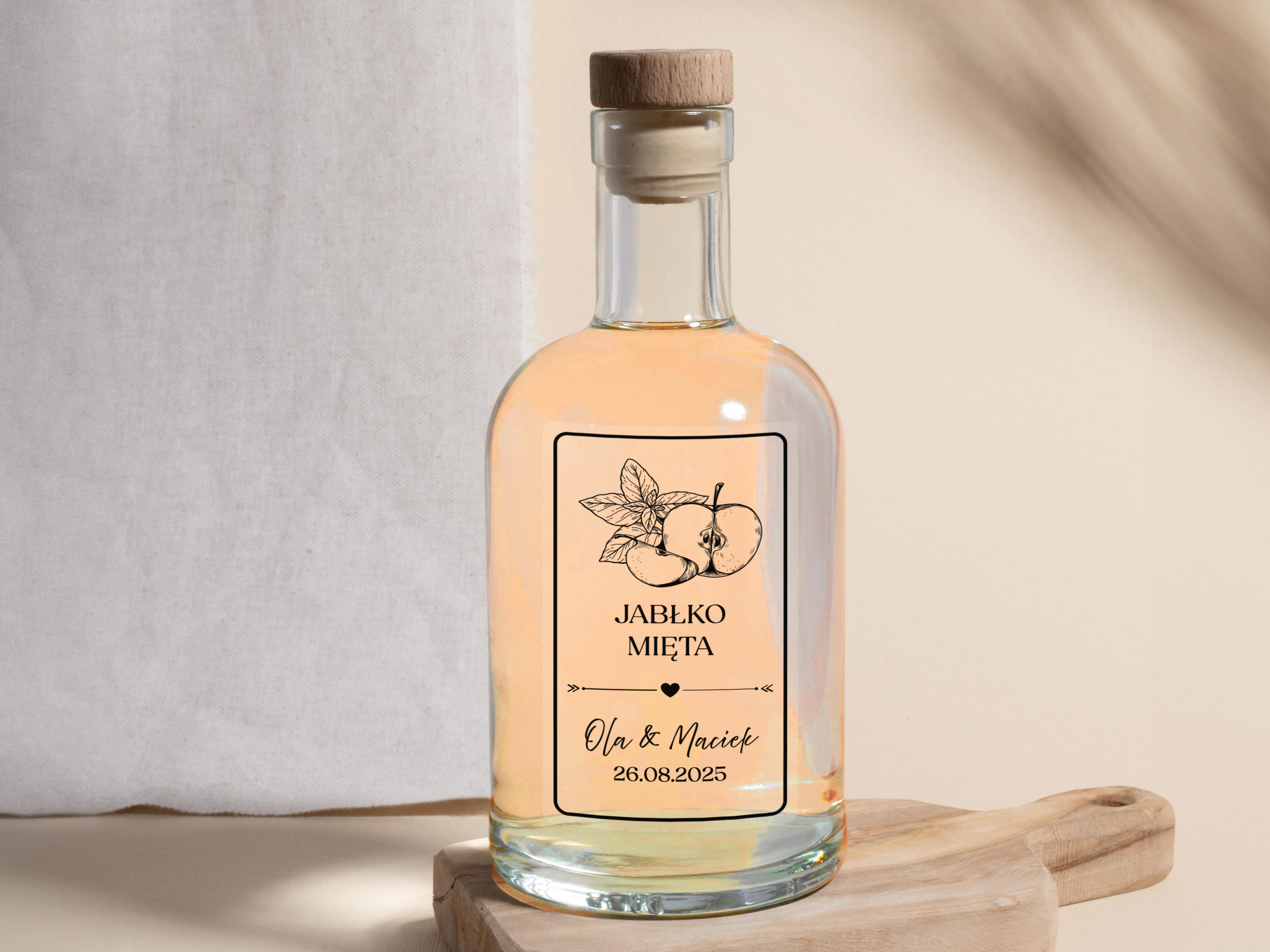 Naklejki na alkohol weselny- Jabłko Mięta, Etykieta na Nalewkę