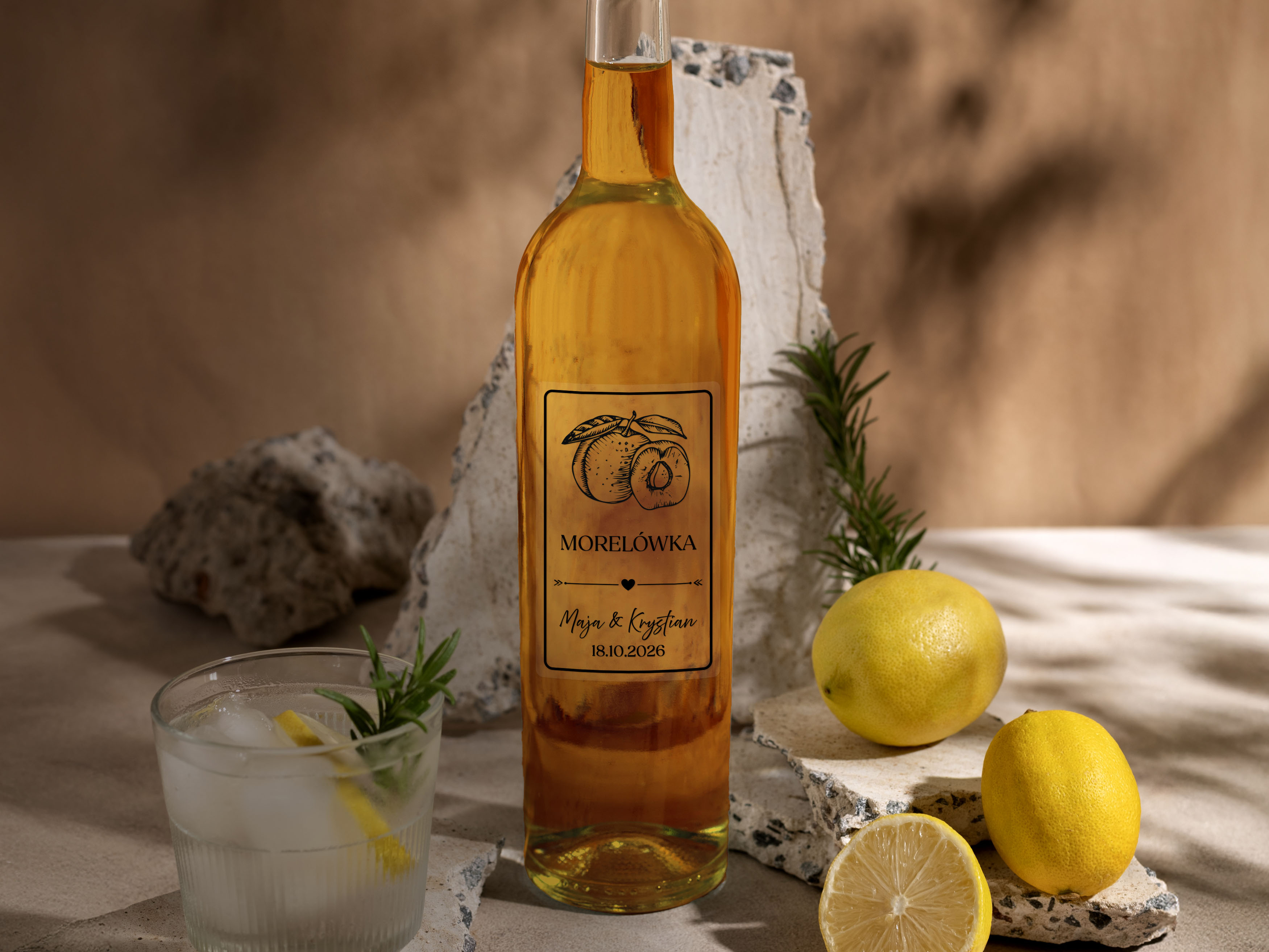 Naklejki na alkohol weselny- Morelówka, Etykieta na Nalewkę