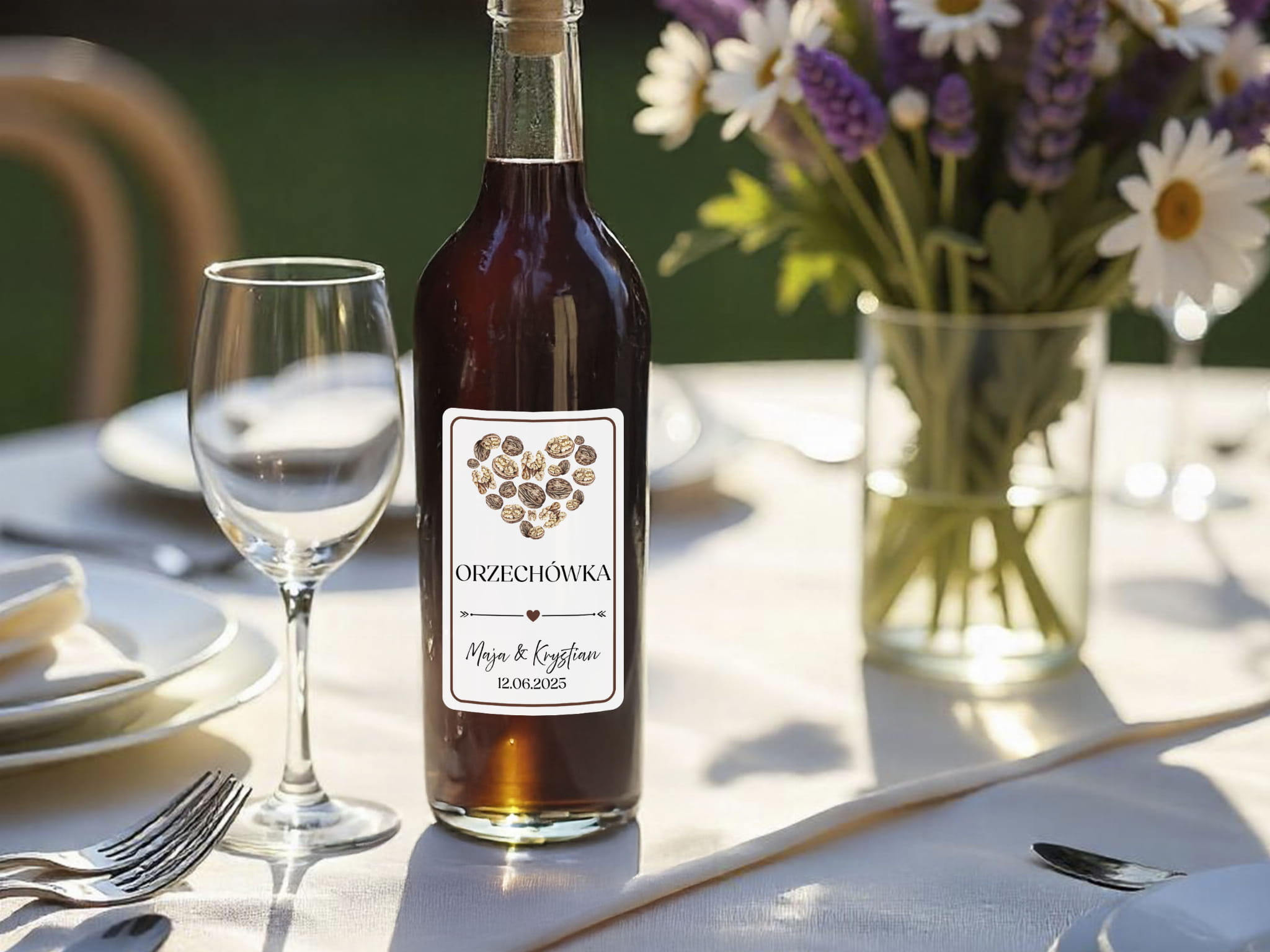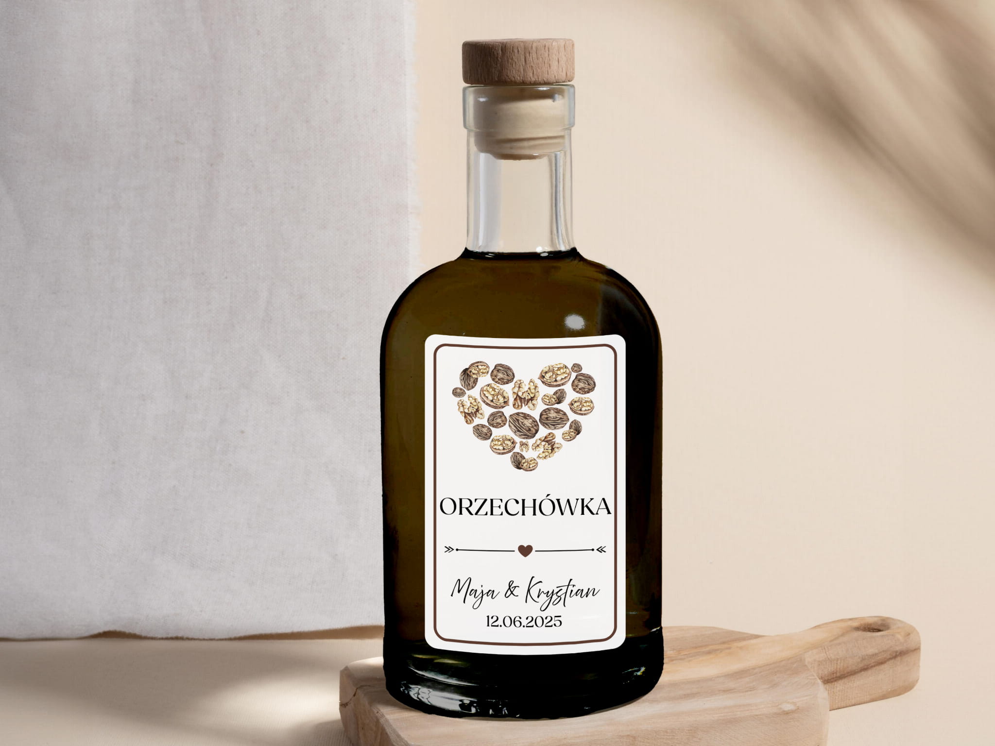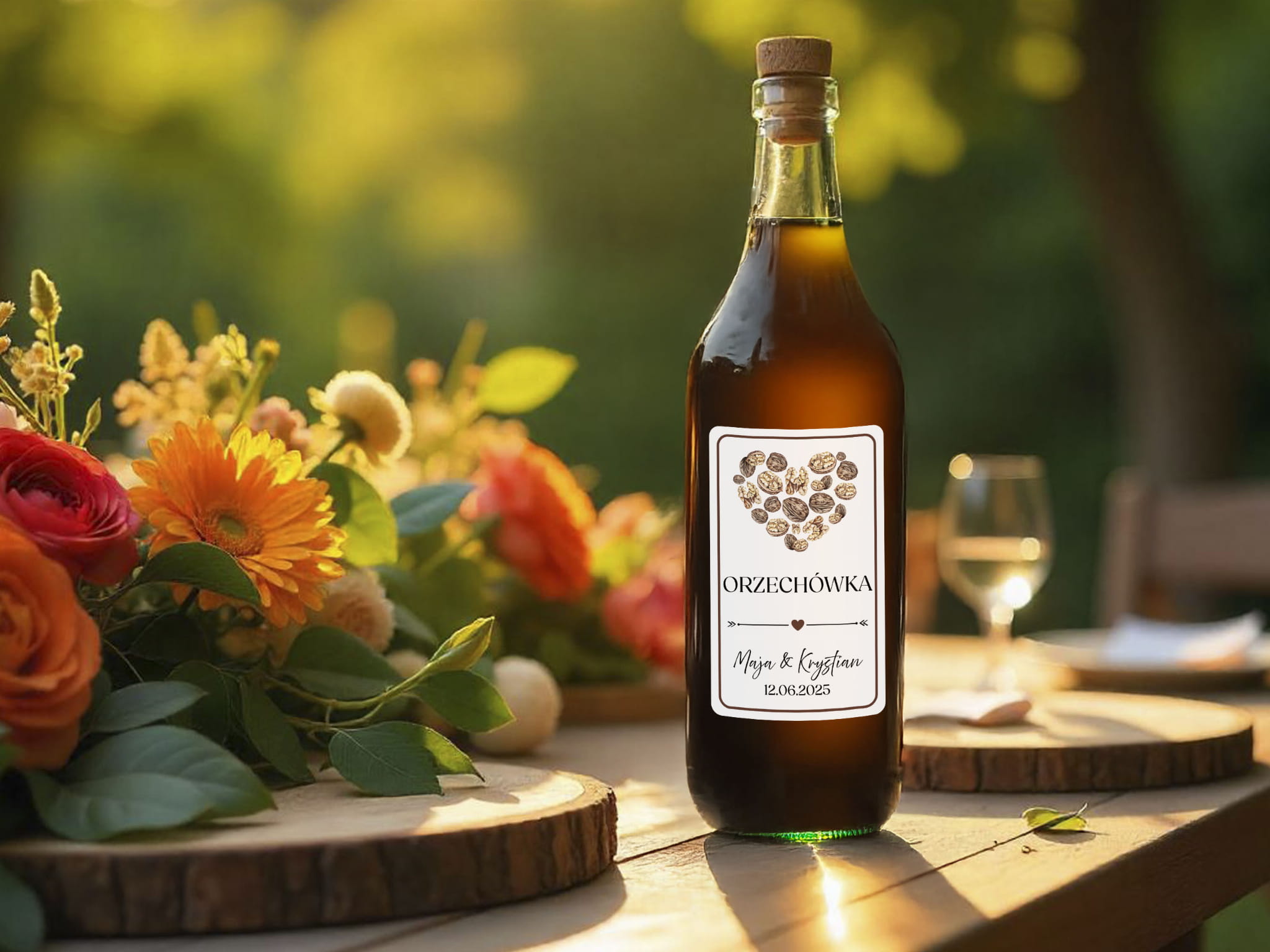 Naklejki na alkohol weselny- Orzechówka, Etykieta na Nalewkę