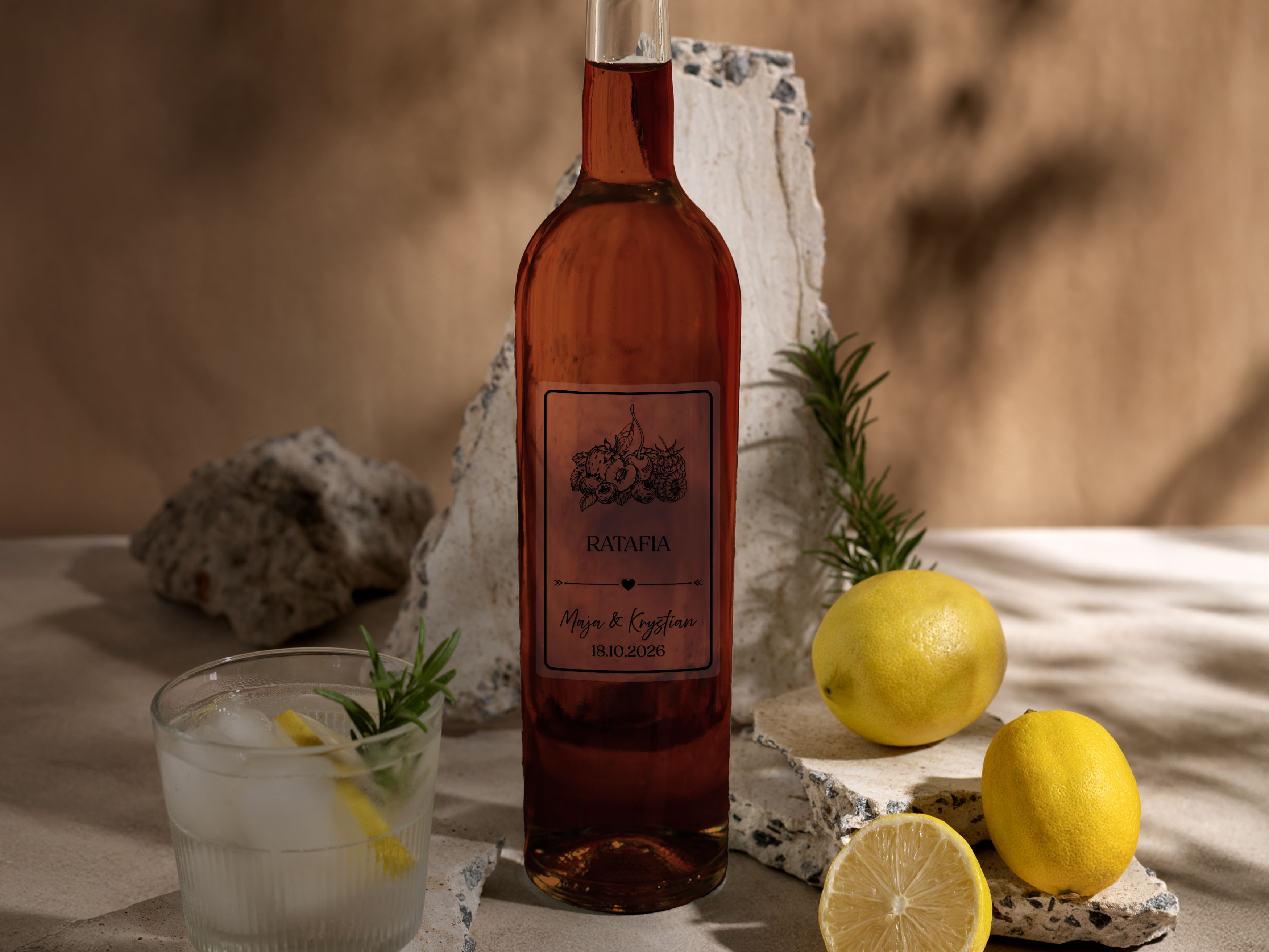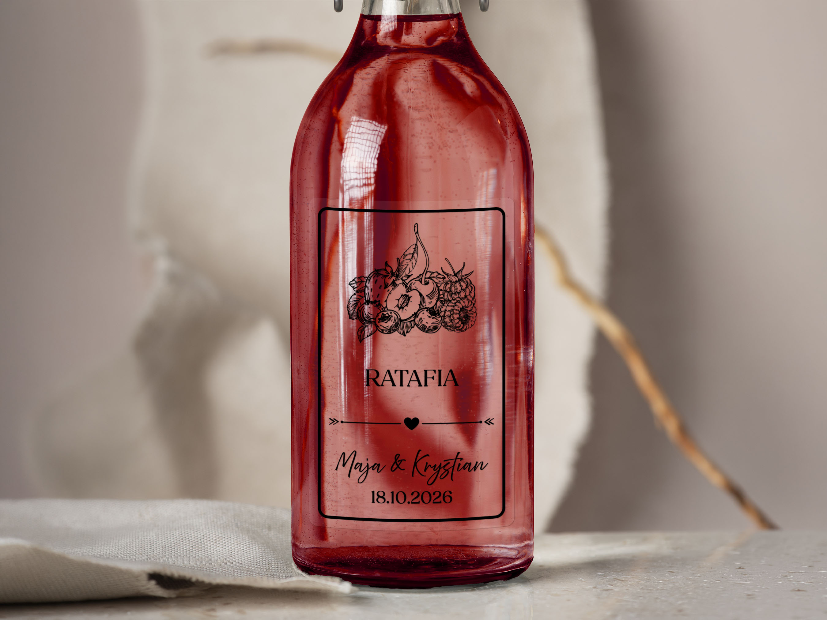 Naklejki na alkohol weselny- Ratafia, Etykieta na Nalewkę