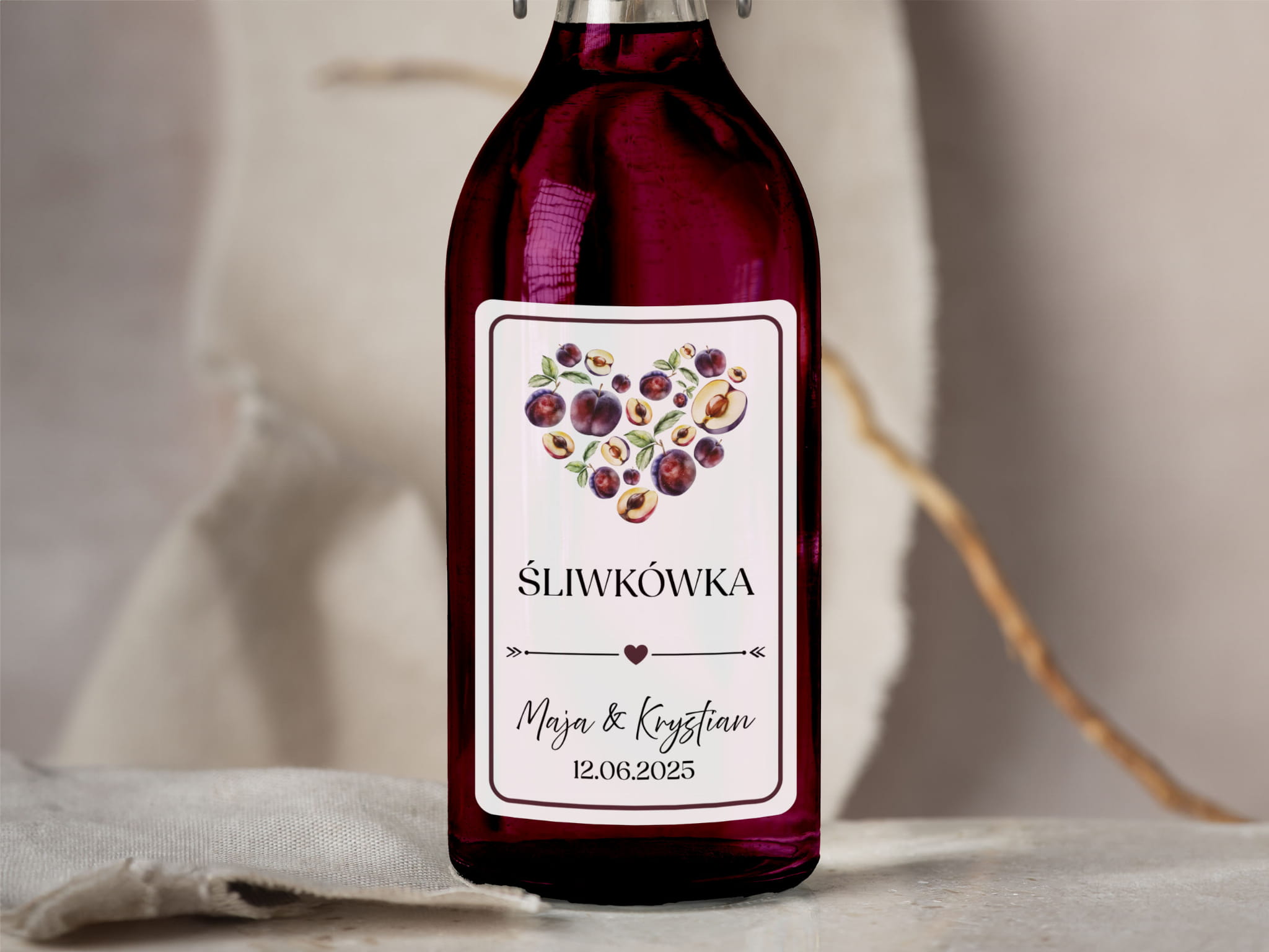 Naklejki na alkohol weselny- Śliwkówka, Etykieta na Nalewkę