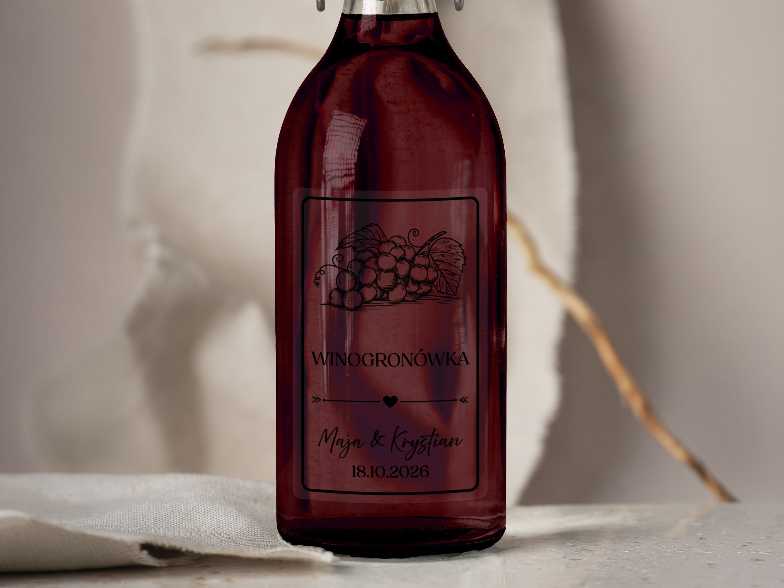 Naklejki na alkohol weselny- Winogronówka, Etykieta na Nalewkę