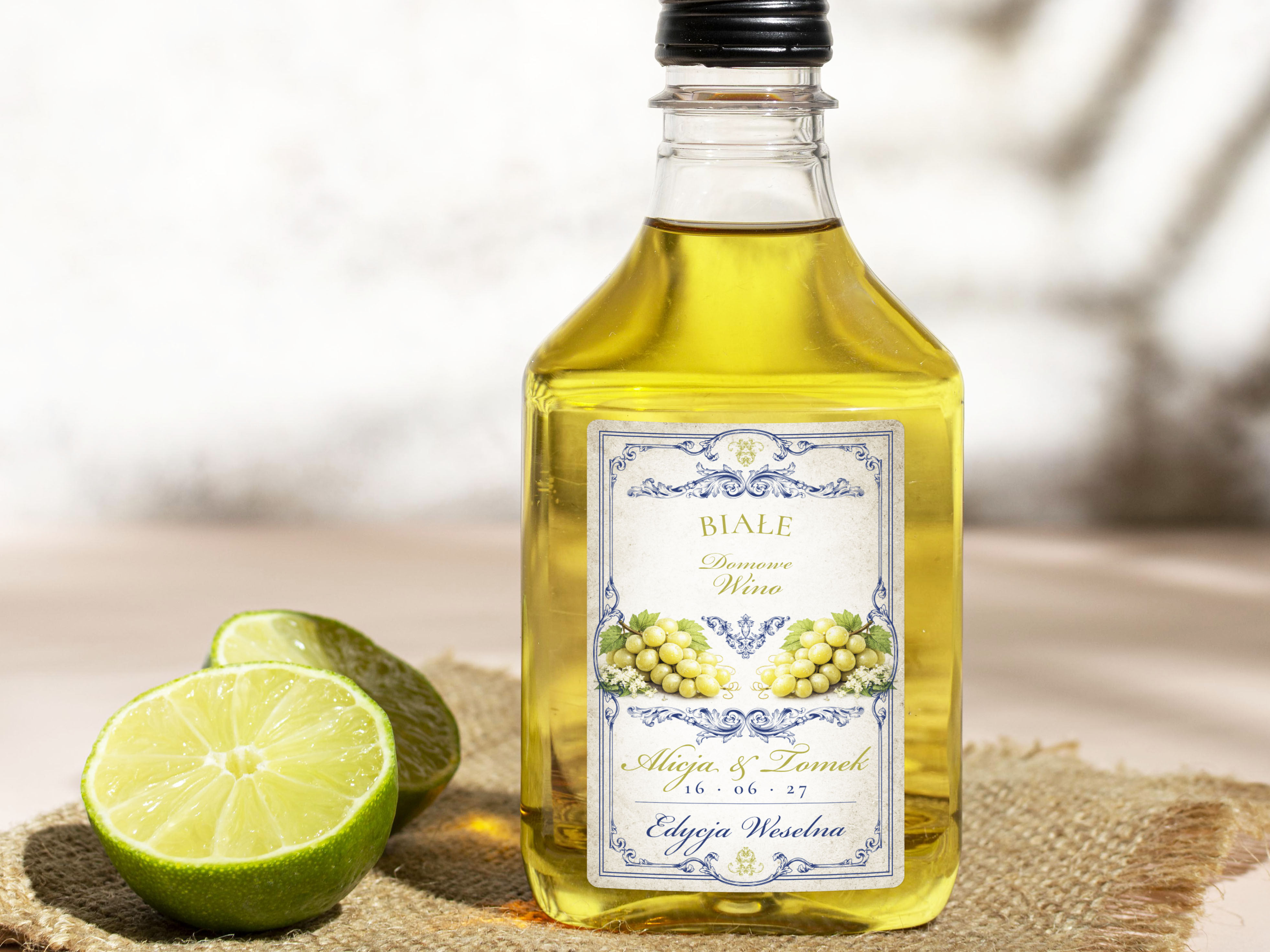 Naklejki na butelki 100 ml setki Białe Wino, na Białe Wino etykiety na wesele