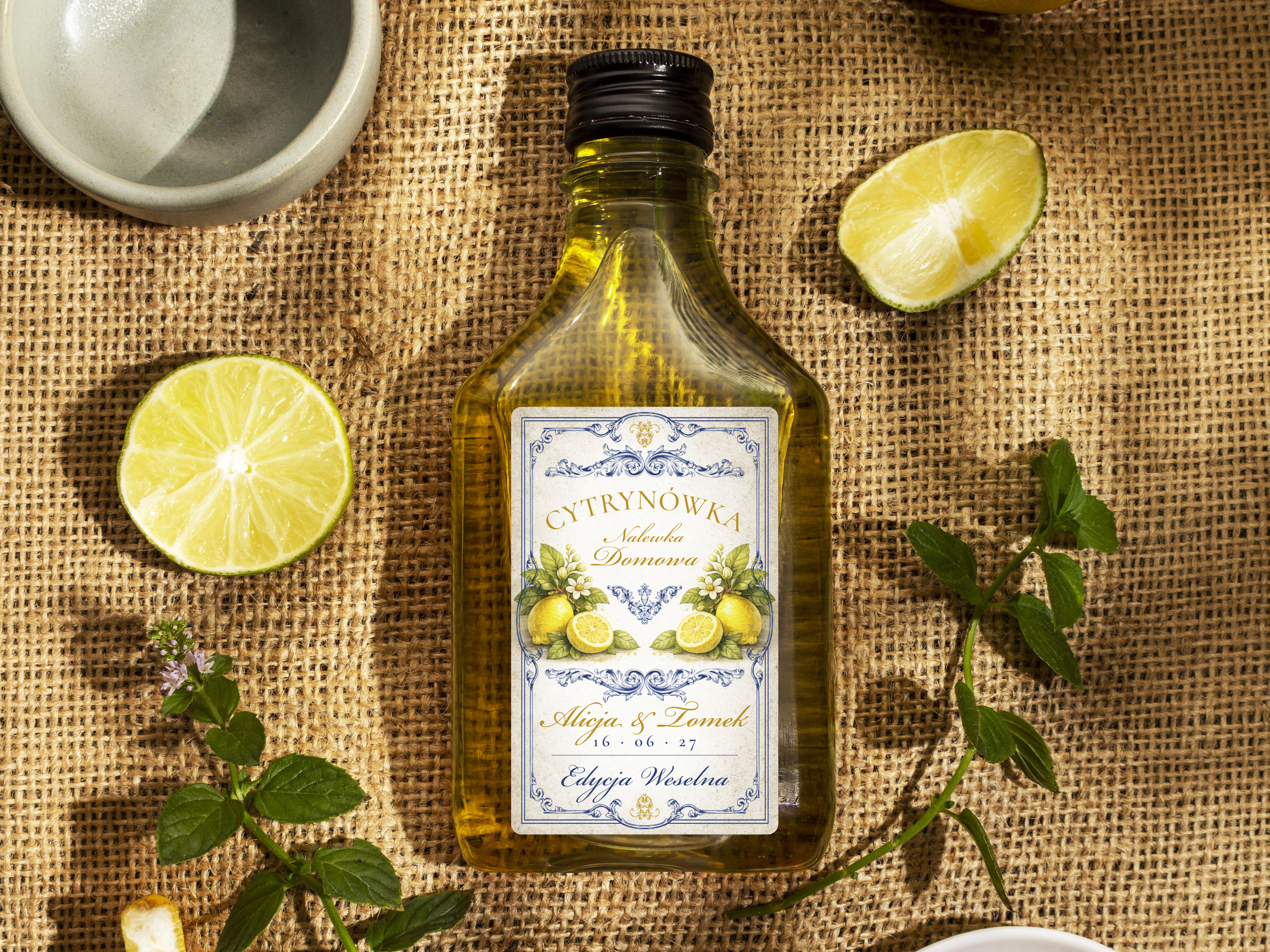 Naklejki na butelki 100 ml setki Cytrynówka. na Cytrynówkę personalizowane etykiety na wesele