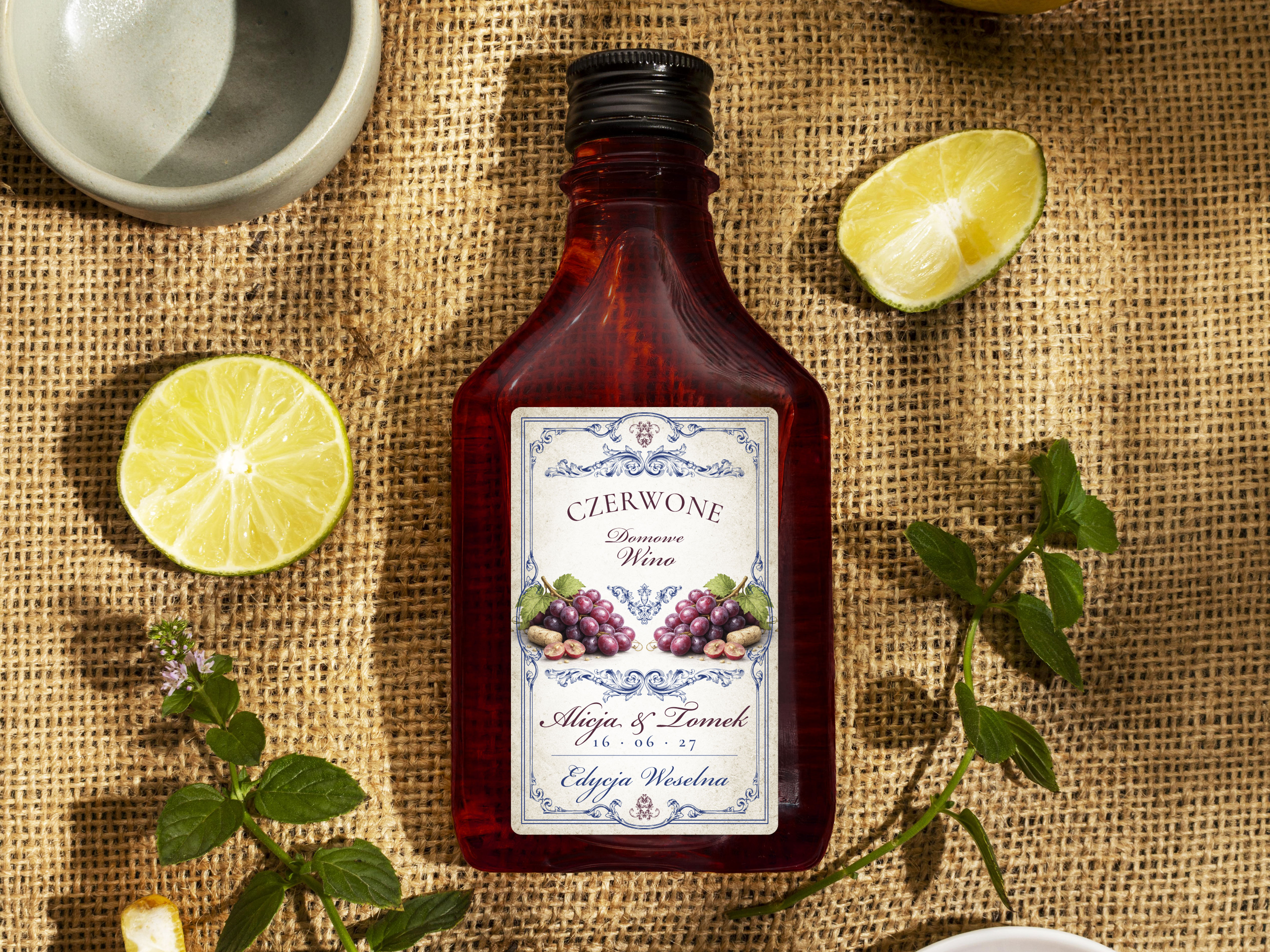 Małe butelki 100 ml potrafią zrobić świetny efekt na stołach i przy upominkach dla gości, ale dopiero etykieta „spina” całość i sprawia, że wygląda to jak jedna, dopracowana seria. Te personalizowane naklejki w stylu vintage są przygotowane z myślą o setkach 100 ml i mają miejsce na Wasze imiona, datę oraz wybrany tekst.