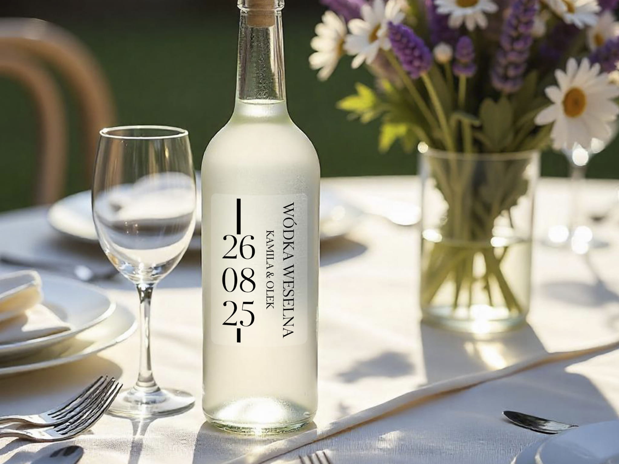 - Stylowy dodatek na stół weselny: Podkreśl elegancję swojej uroczystości, ozdabiając wódkę weselną etykietami dopasowanymi do Twojego motywu weselnego.