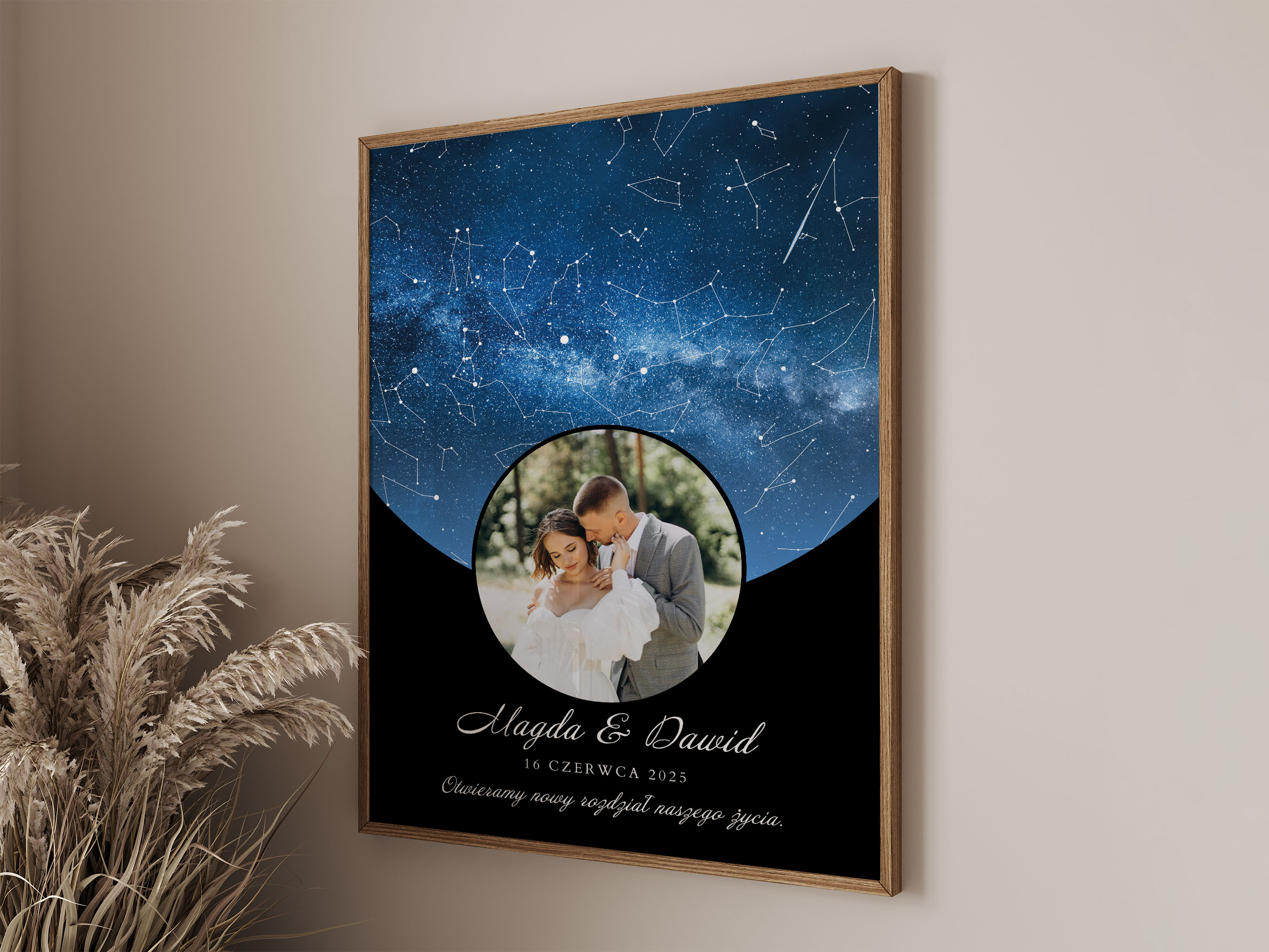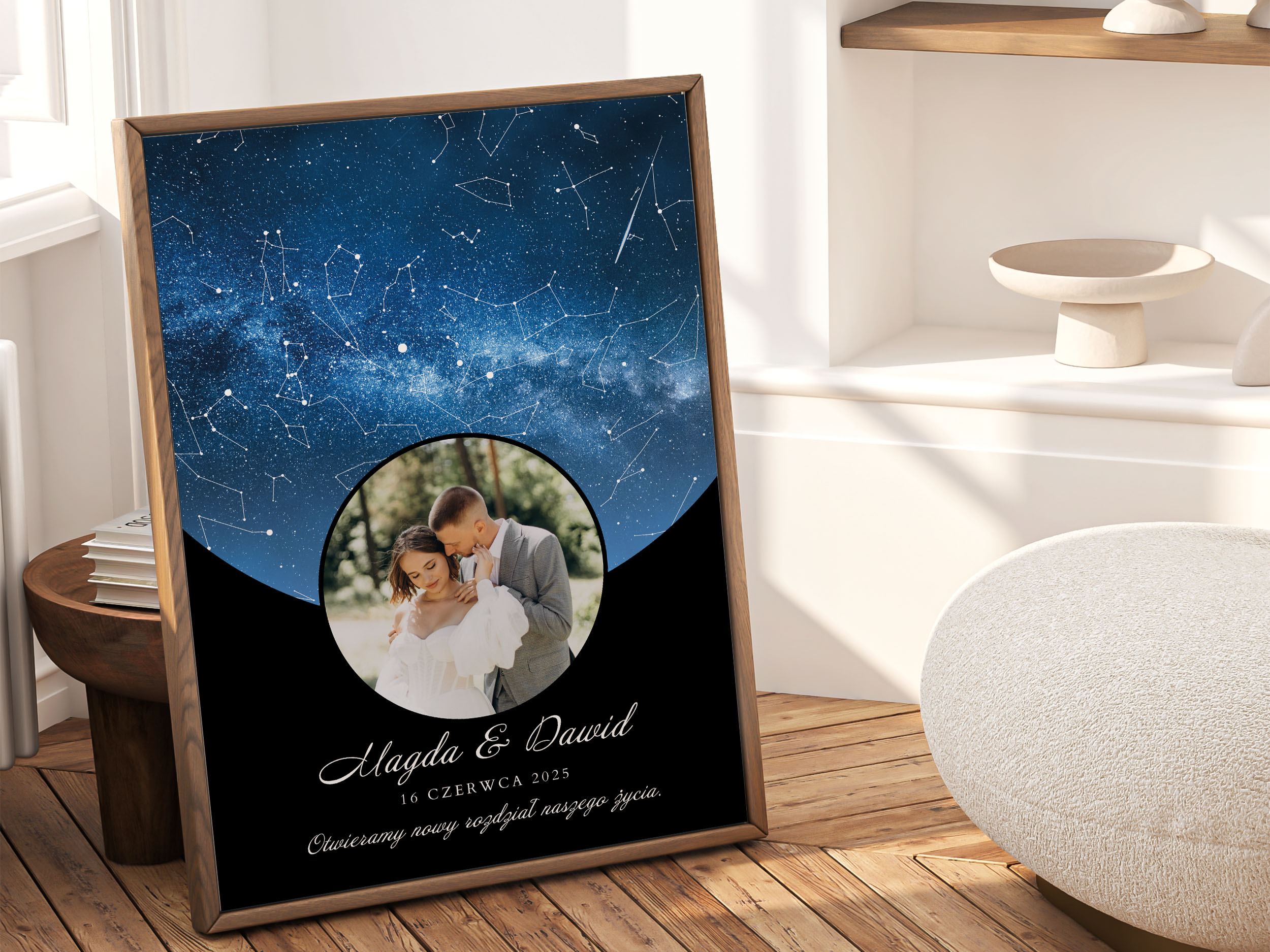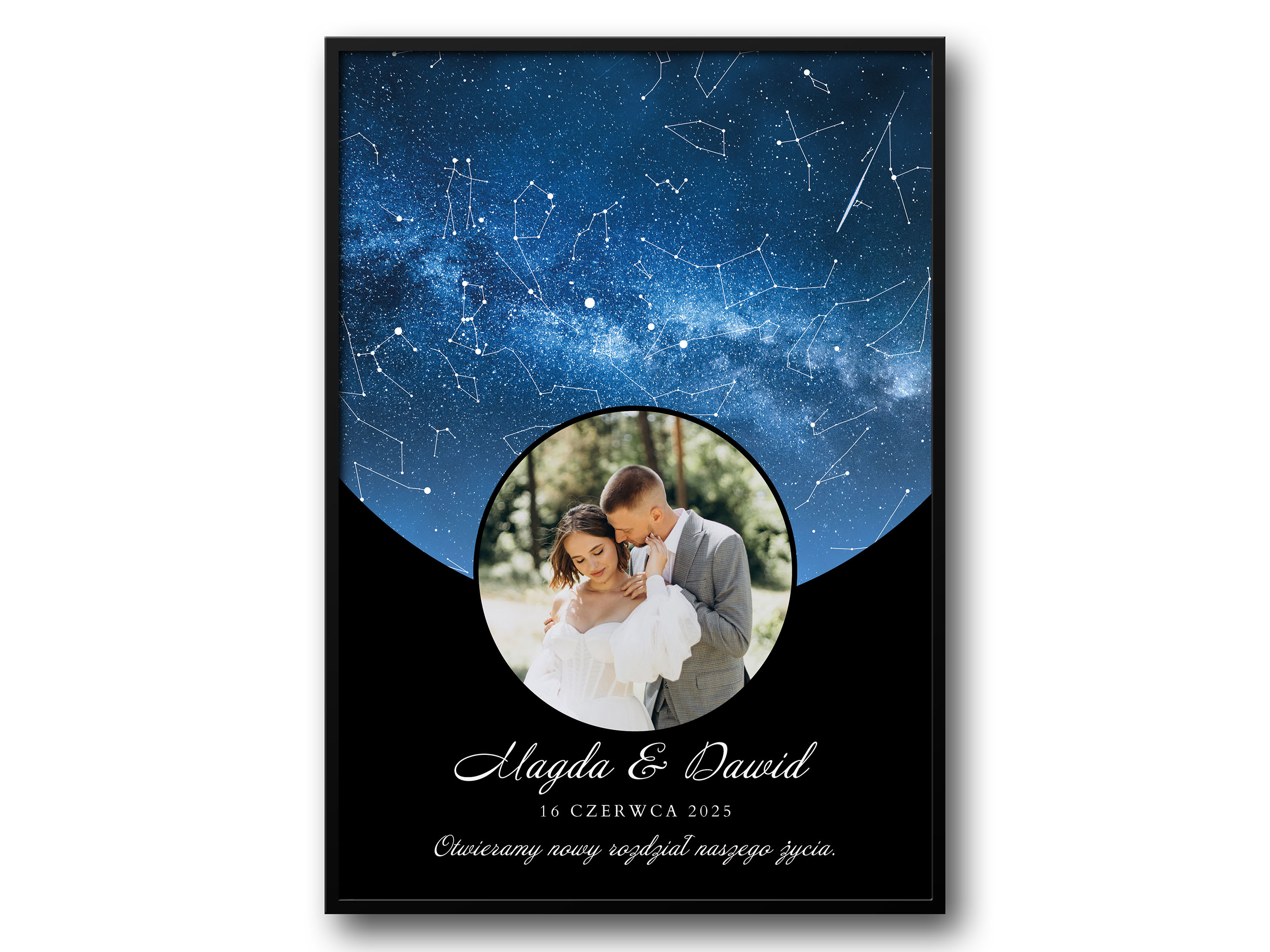 To połączenie emocji i estetyki – personalizowany plakat z mapą gwiazd przypomina, że każda historia miłości ma swój moment zapisany w gwiazdach.
