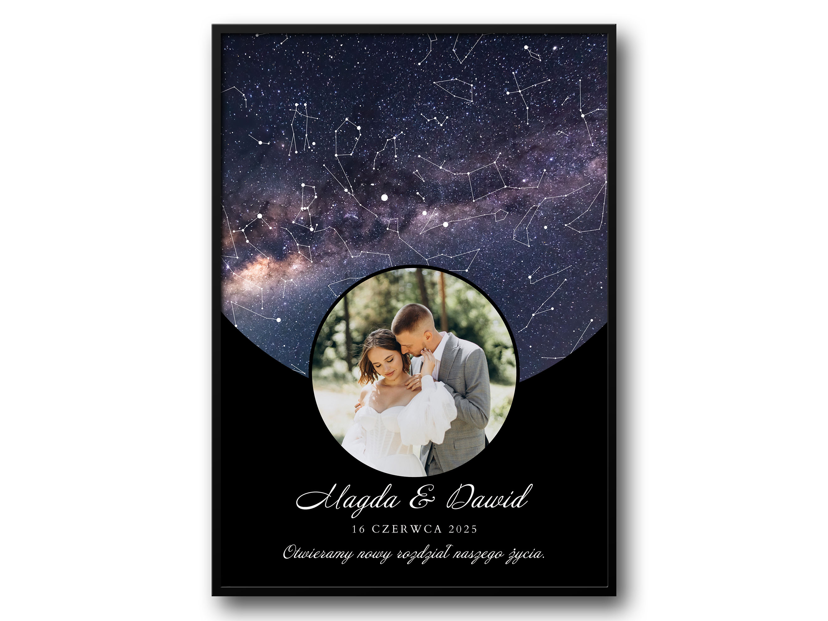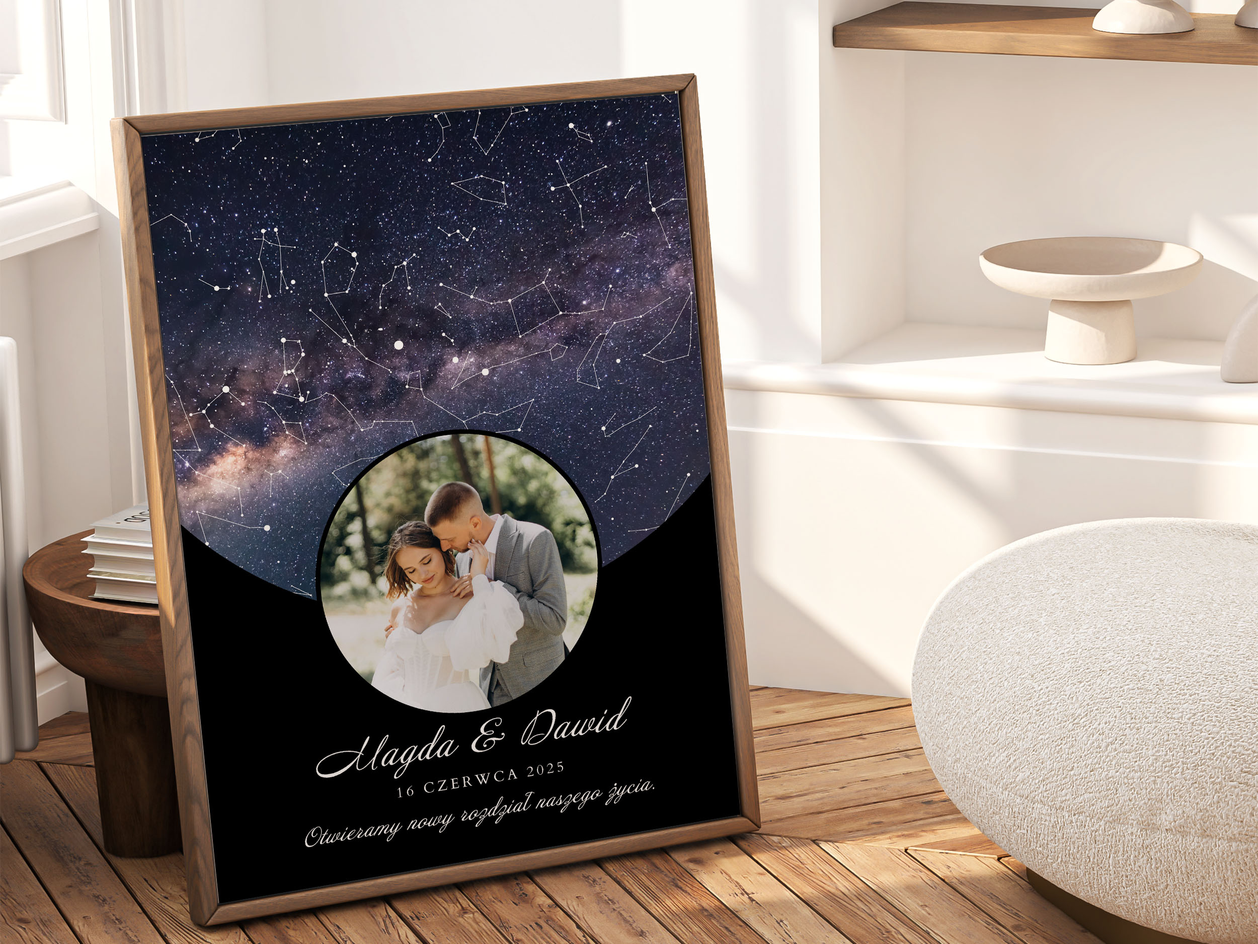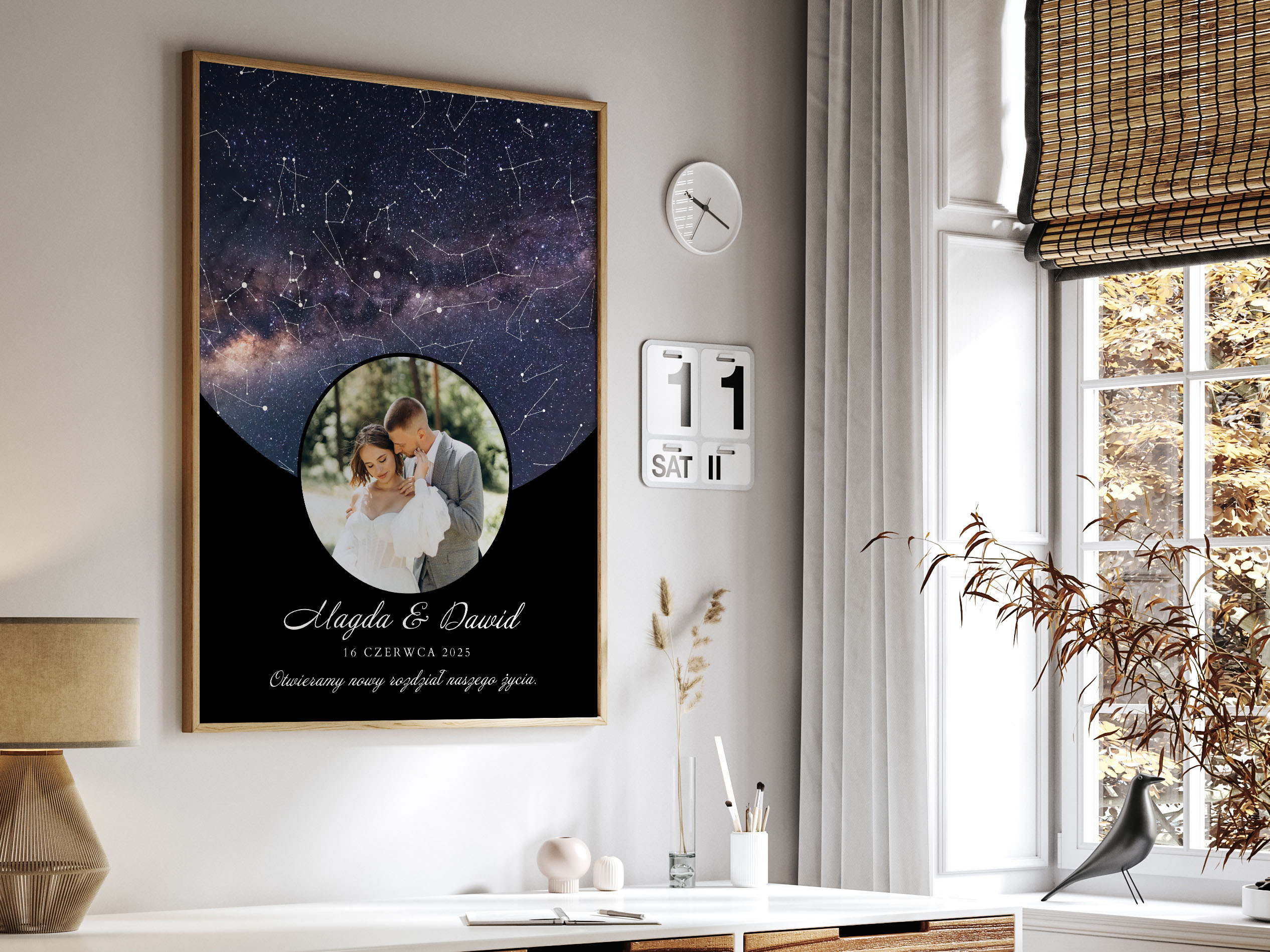 Personalizowany plakat z mapą nieba – romantyczny prezent dla pary i pamiątka wyjątkowego dnia.