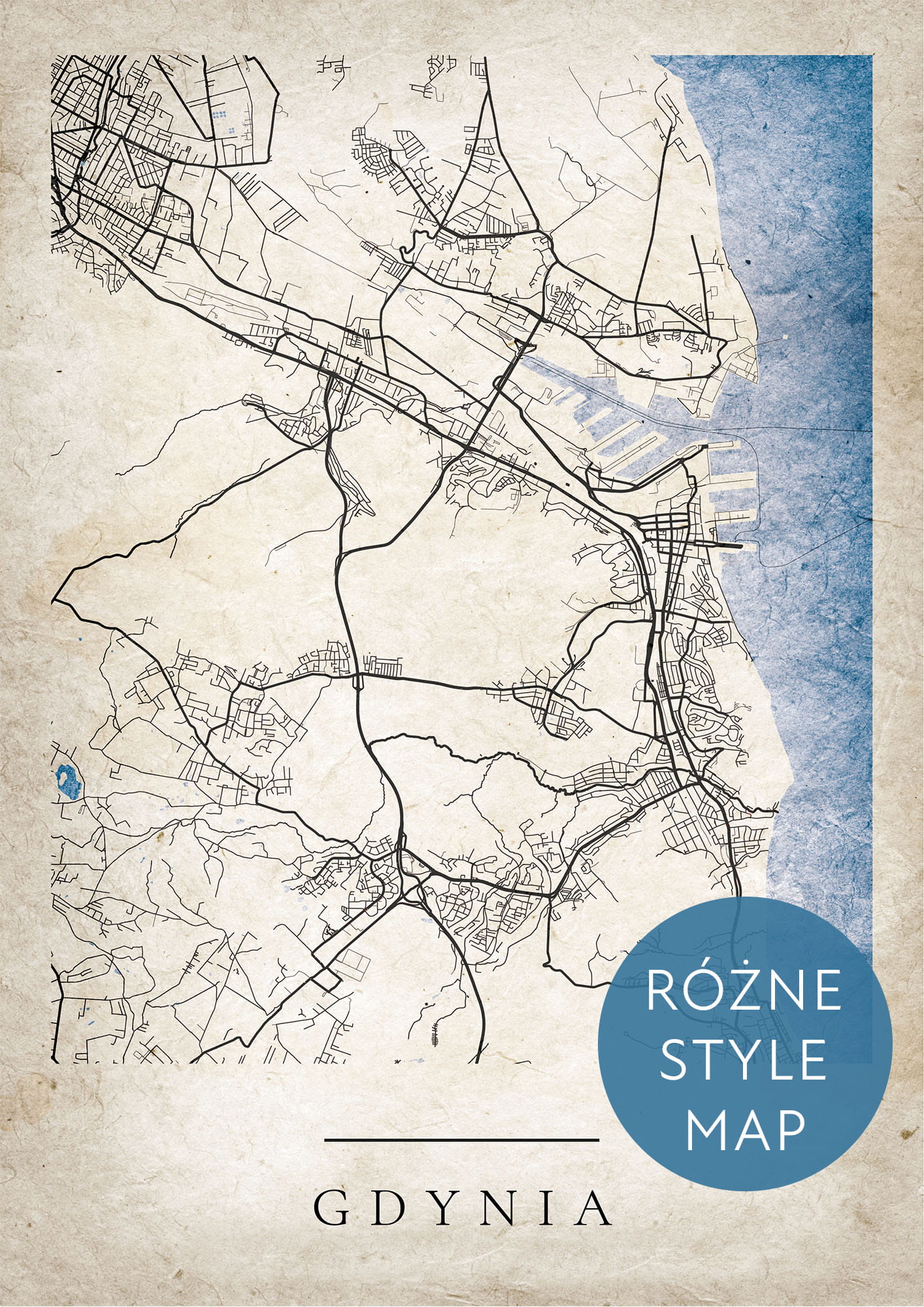 Plakat Mapa Miasta Gdynia w 12 wariantach stylu do wyboru