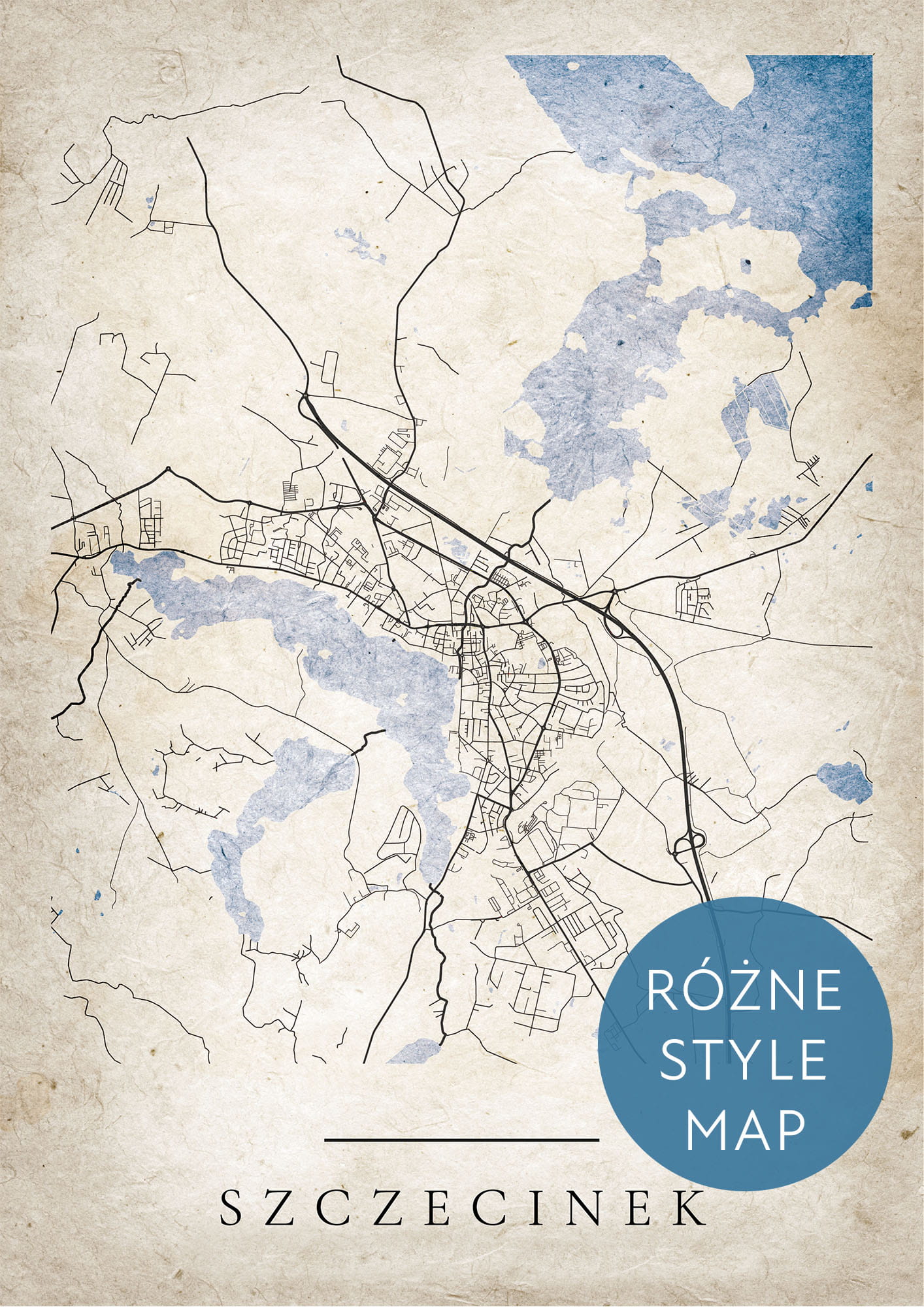 Plakat Mapa Miasta Szczecinek w 12 wariantach stylu
