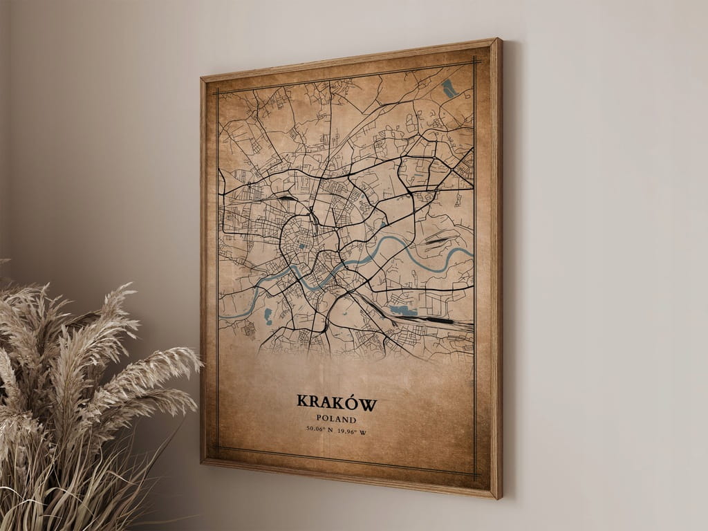 Plakat mapa miasta w stylu vintage. Plakat NIE zawiera ramy.