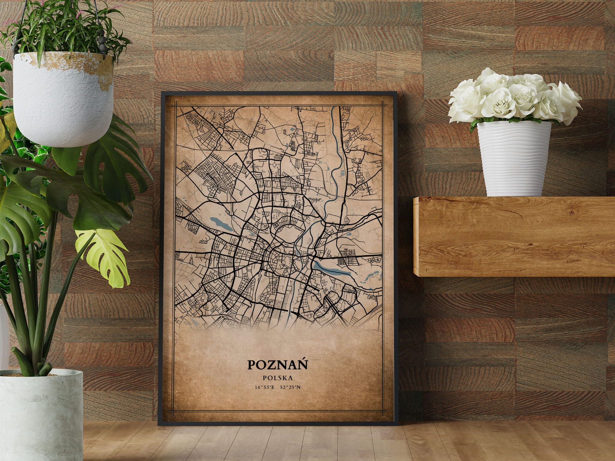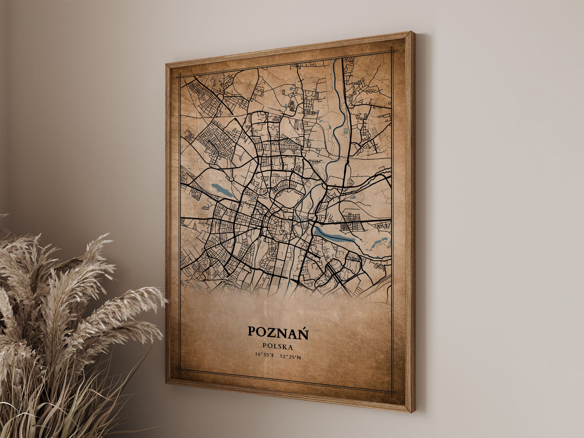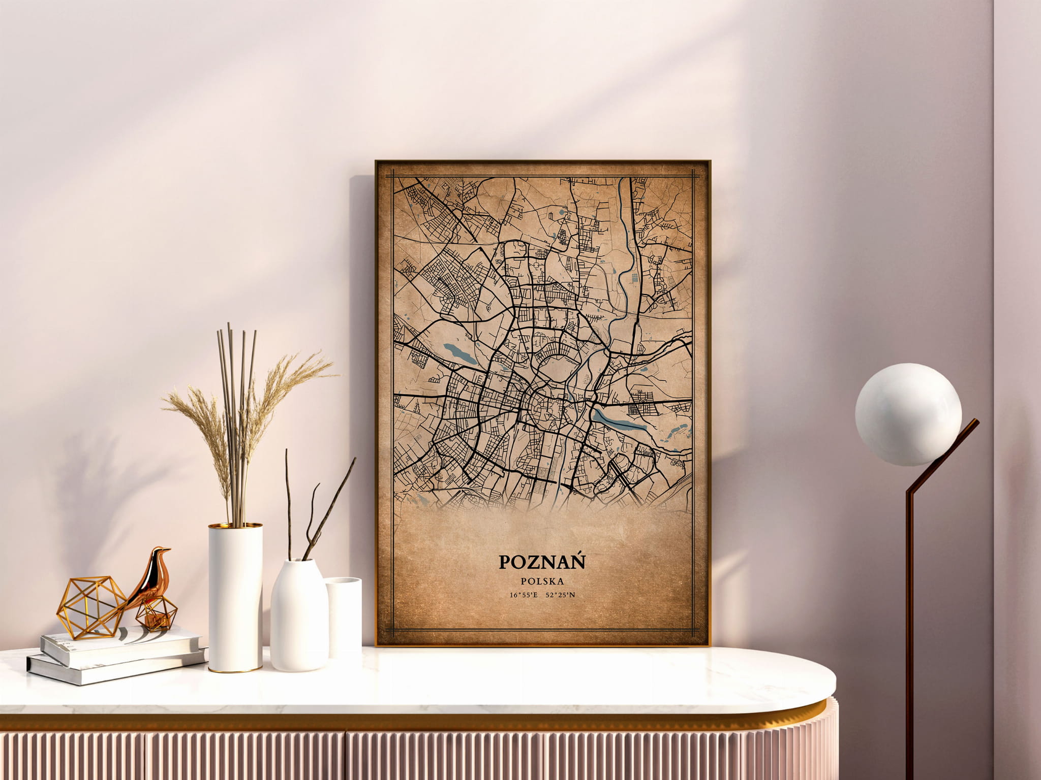 Plakat mapa miasta w stylu vintage. Plakat NIE zawiera ramy.