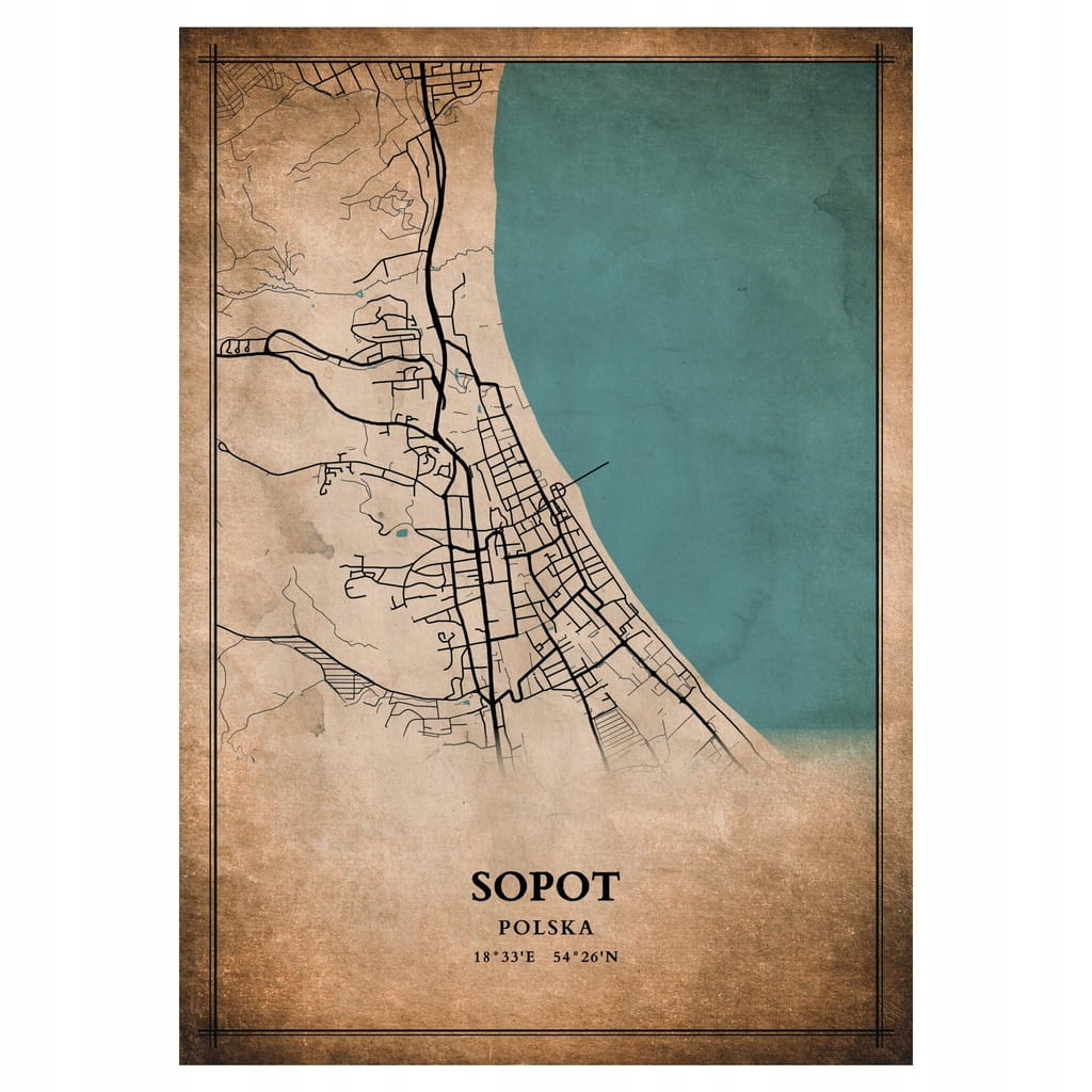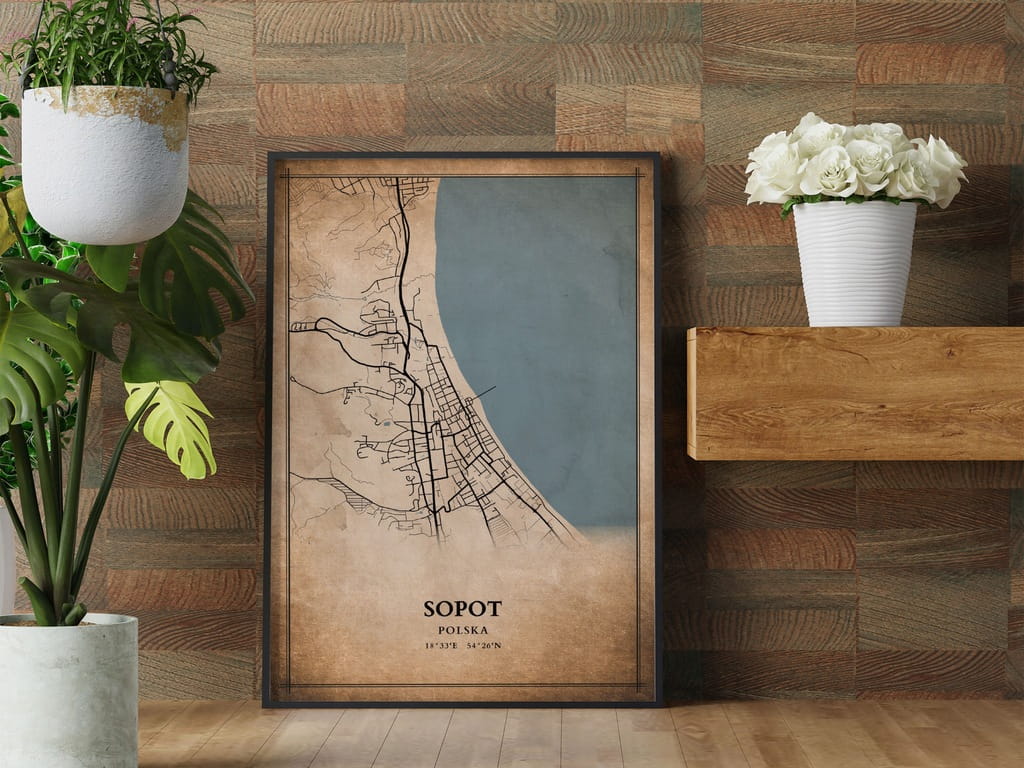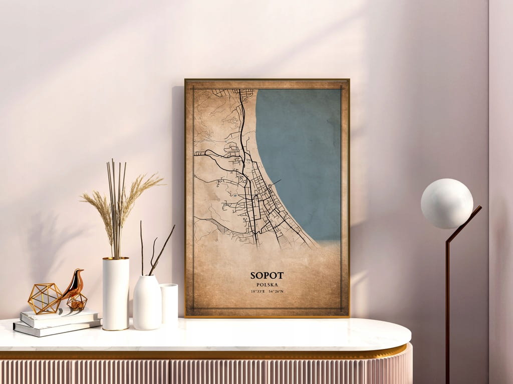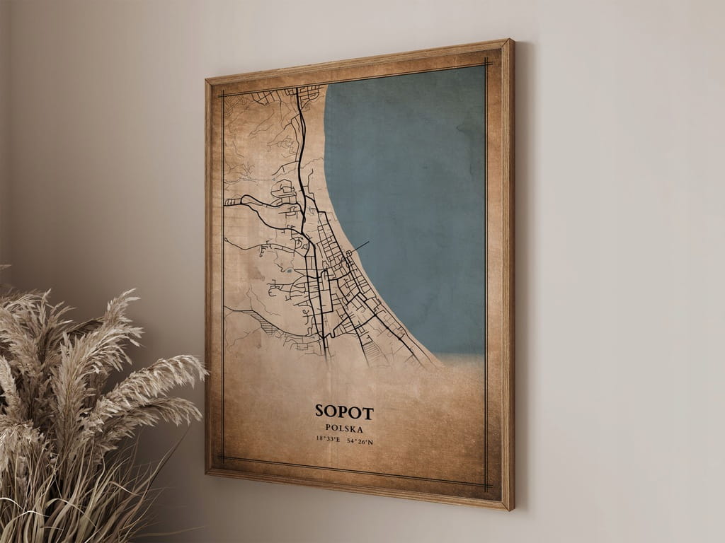 Plakat Mapa miasta vintage Sopot