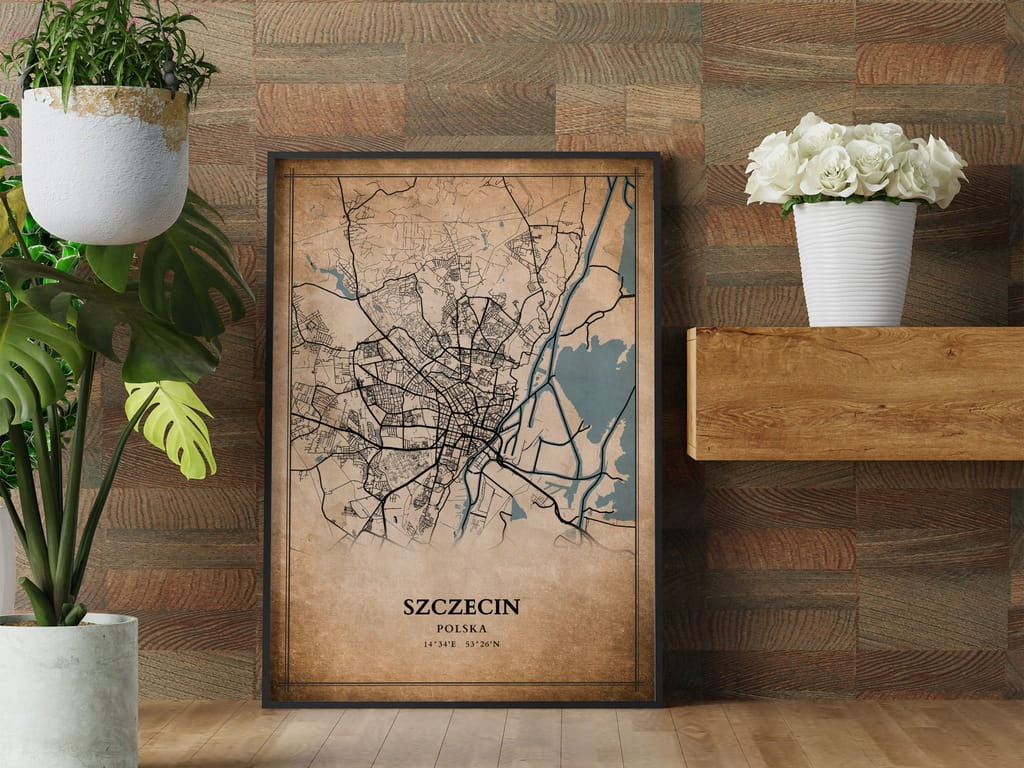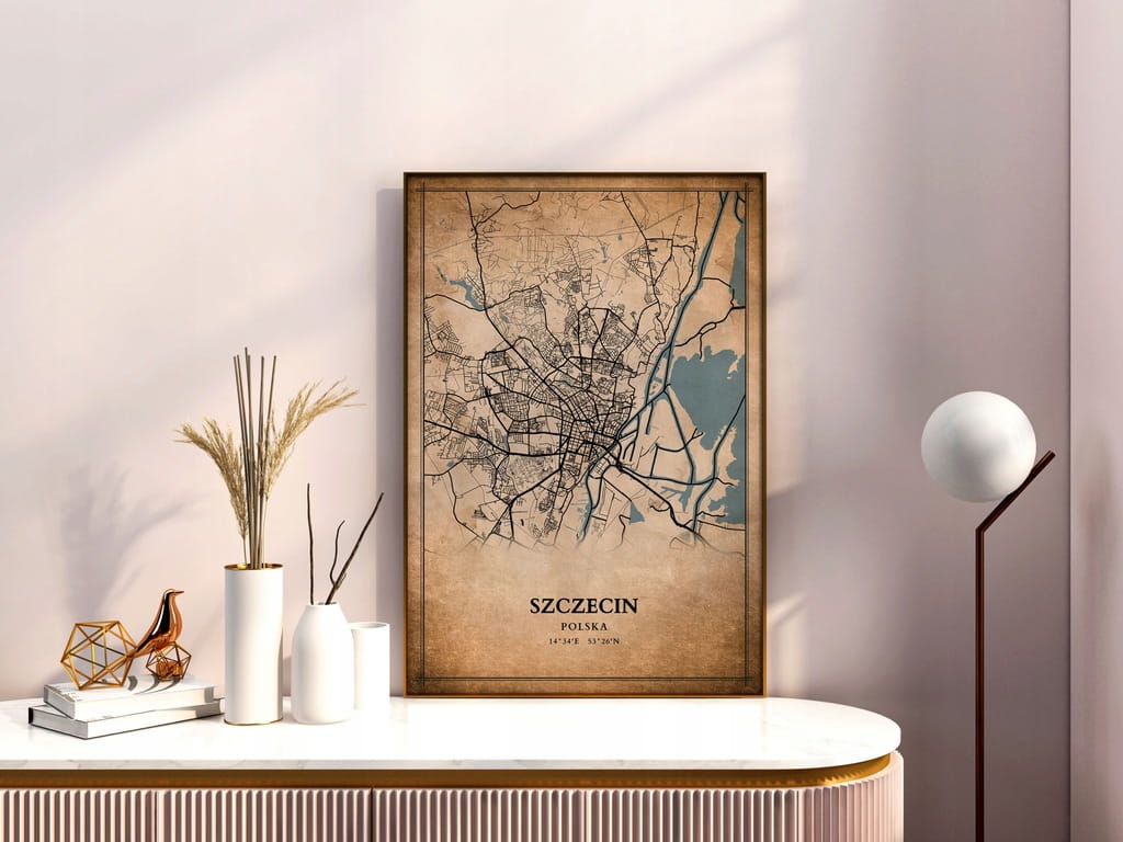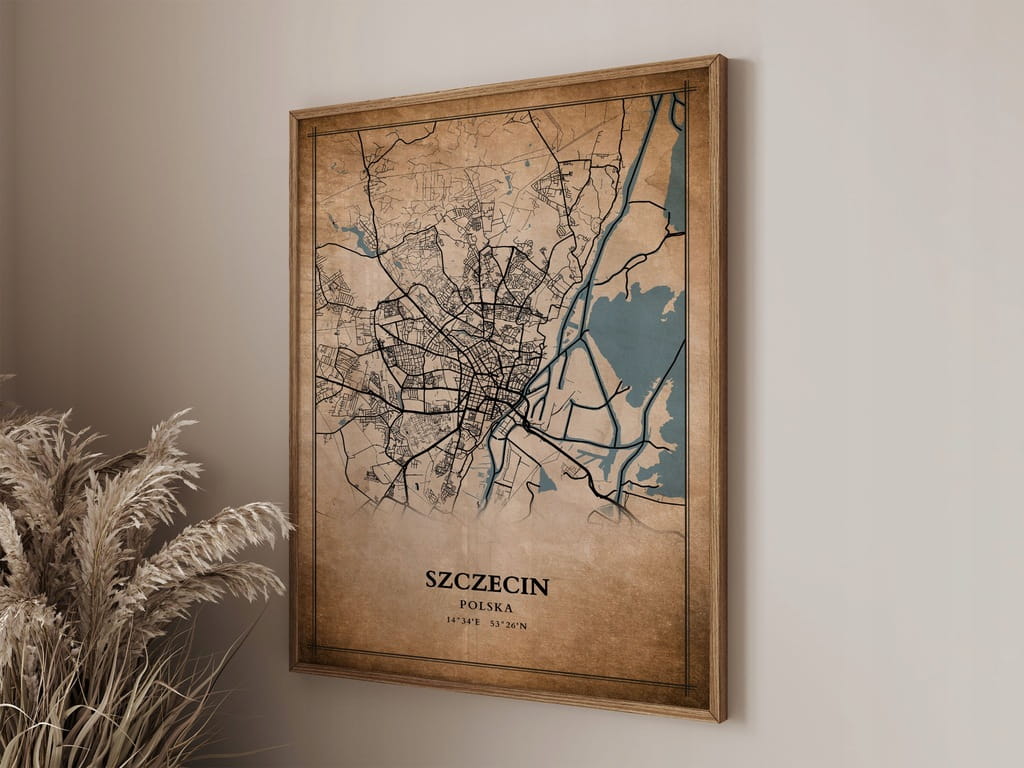 Plakat Mapa miasta vintage Szczecin