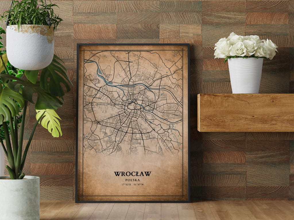 Plakat mapa miasta w stylu vintage. Plakat NIE zawiera ramy.