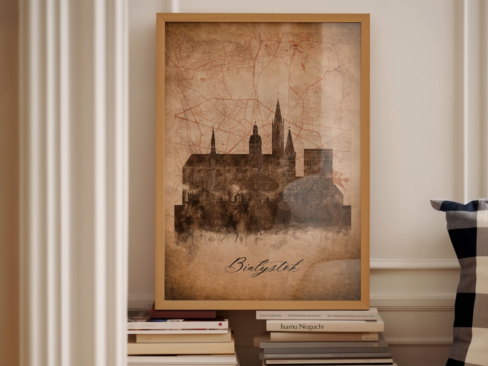 Plakat Skylines Białystok w stylu Vintage- Pionowy, Styl akwarelowy