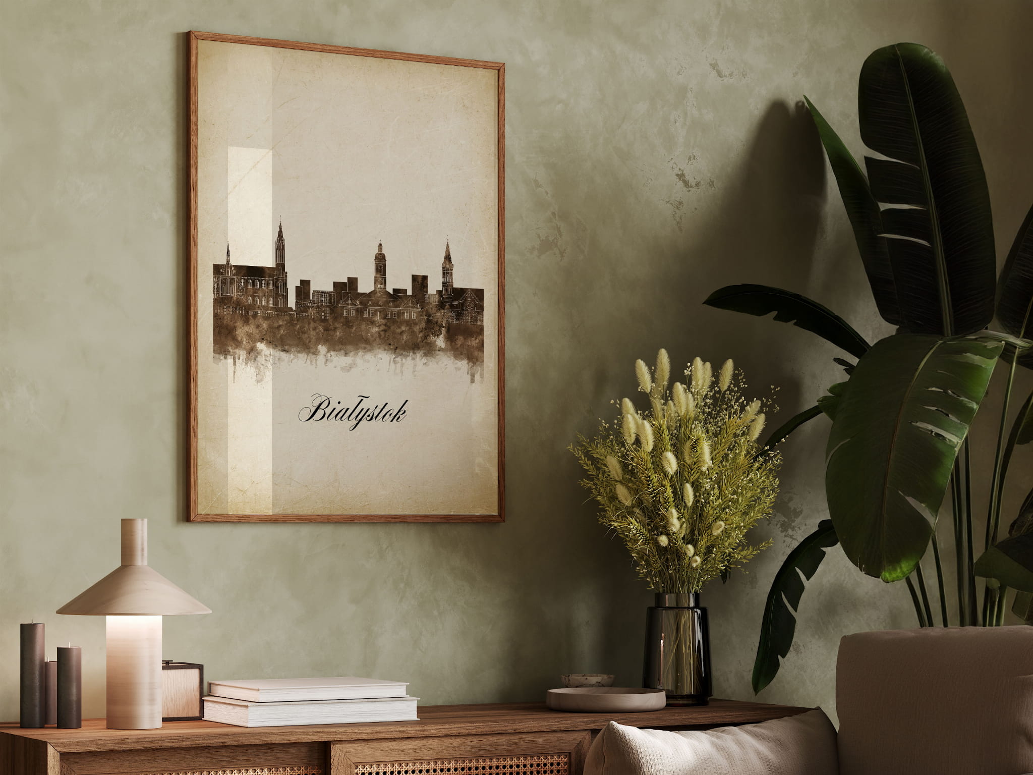 Plakaty skyline w stylu vintage to nowoczesne dzieła sztuki, które nawiązują do estetyki minionych dekad. Przedstawiają miejskie krajobrazy w retro kolorystyce, z wyblakłymi barwami i z delikatną patyną czasu. Kontury są często zmiękczone, a szczegóły budynków lekko stylizowane, co dodaje im nostalgicznego uroku. Tła plakatów utrzymane są w odcieniach przypominających stary papier, z subtelnymi teksturami i ciepłymi, przygaszonymi tonami. Całość tworzy elegancki i przytulny klimat, idealny do wnętrz, które łączą nowoczesność z klasycznym wdziękiem.