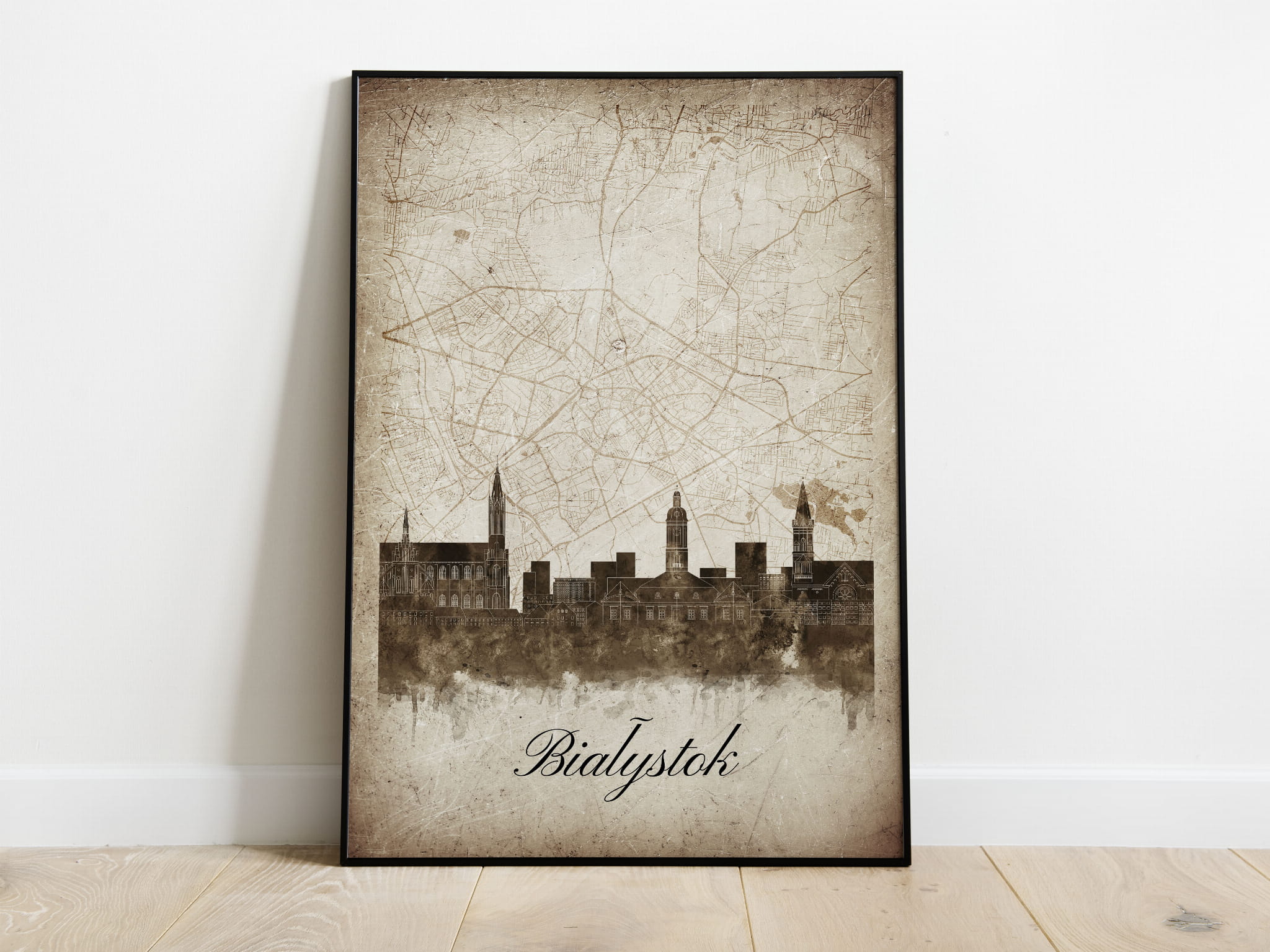 Plakat Skylines Białystok w stylu Vintage- Pionowy